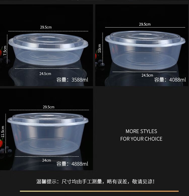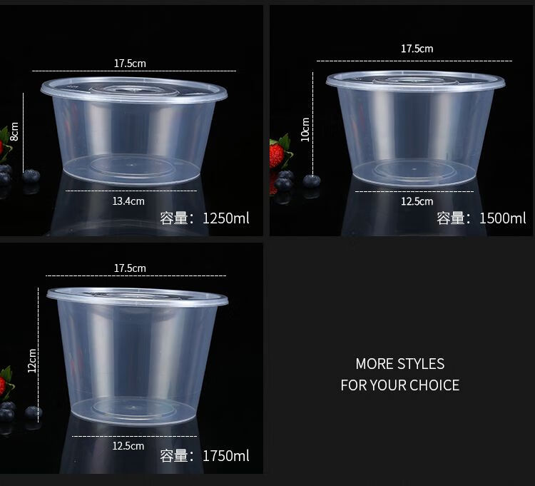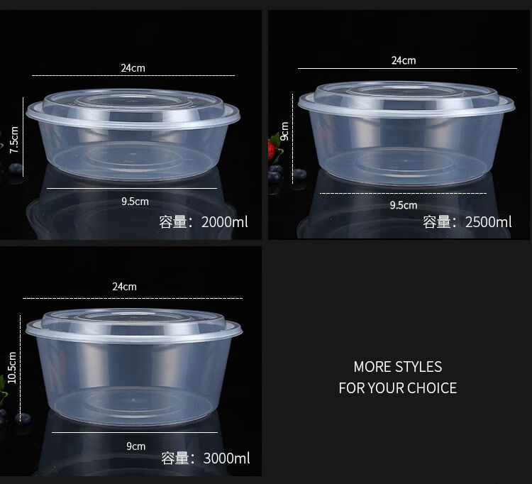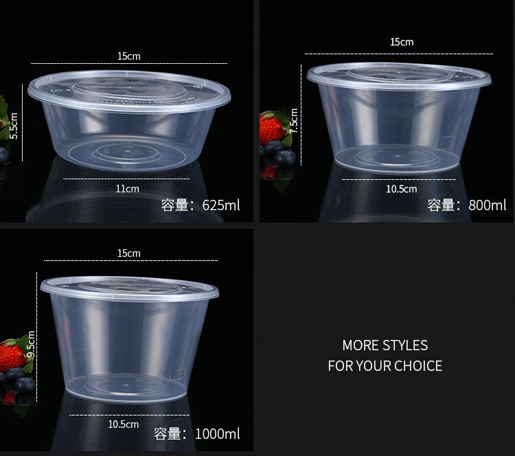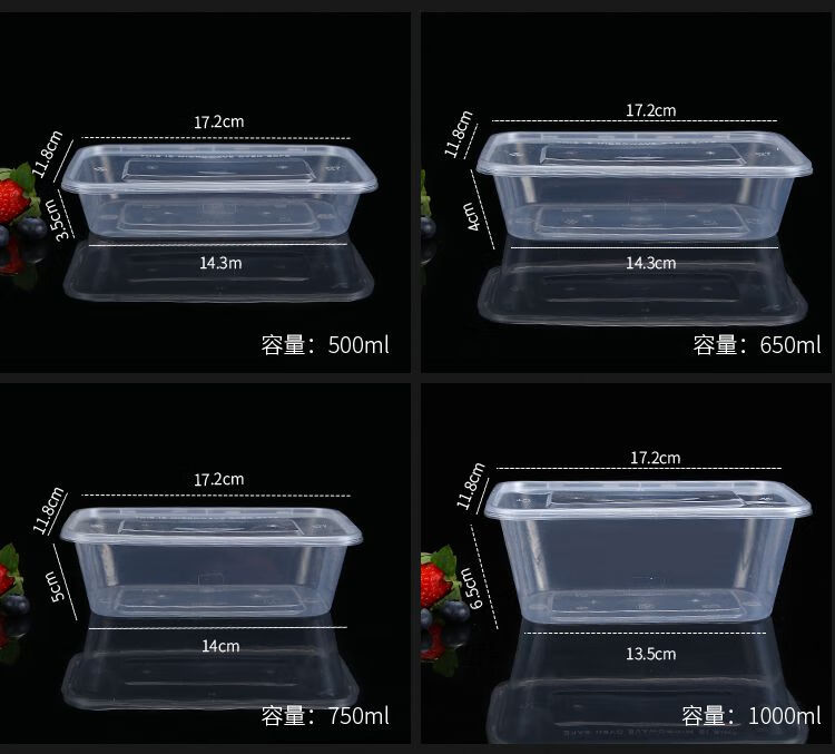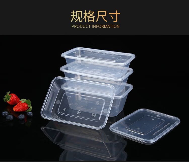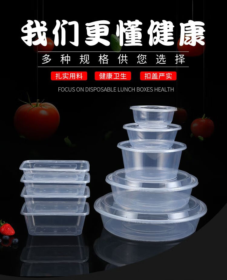 DEATKN一次性饭盒长方形圆形塑料水果外卖快餐便当打包盒保鲜加厚带盖 方形1000ml(10套带盖体验装)