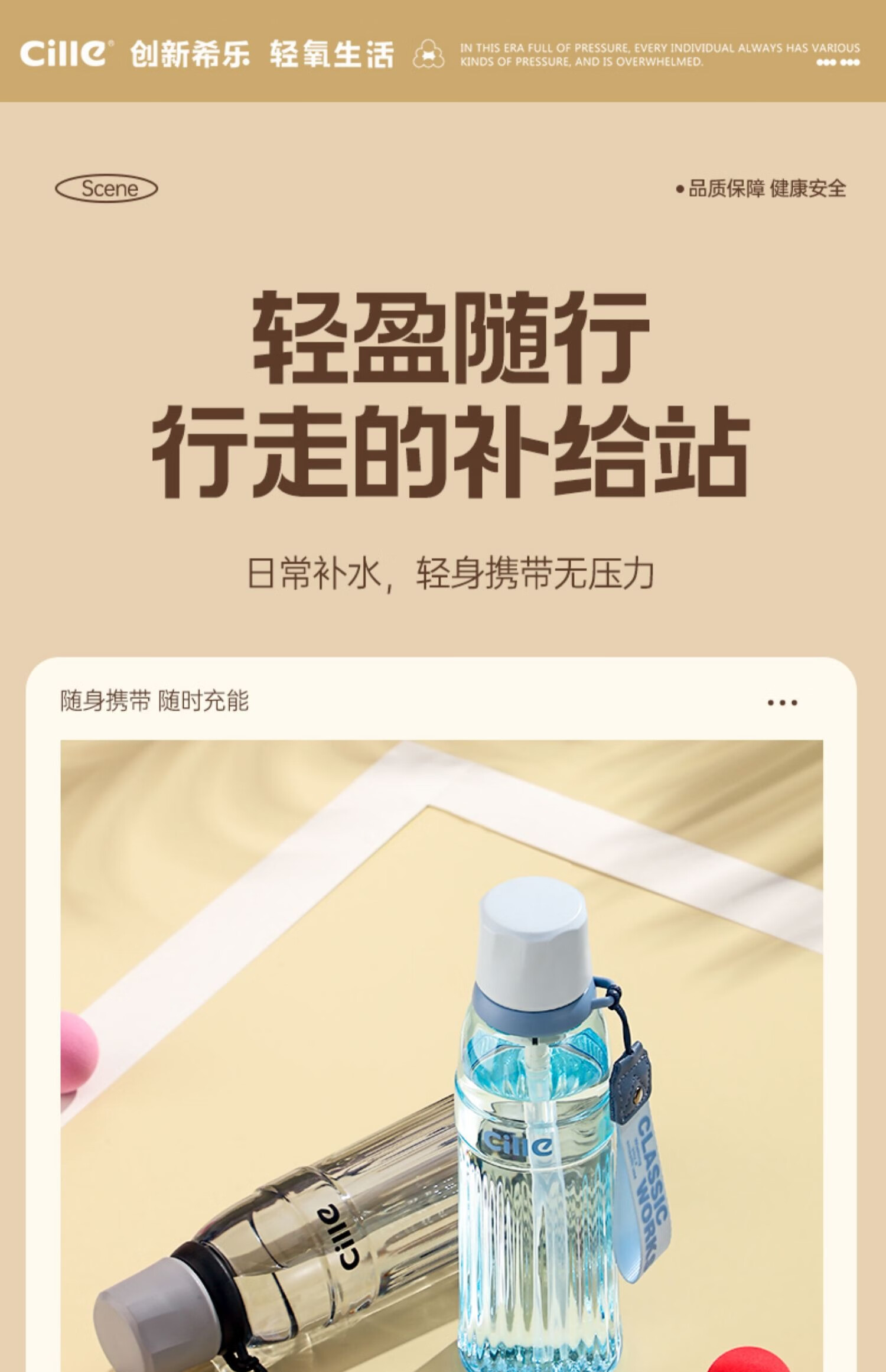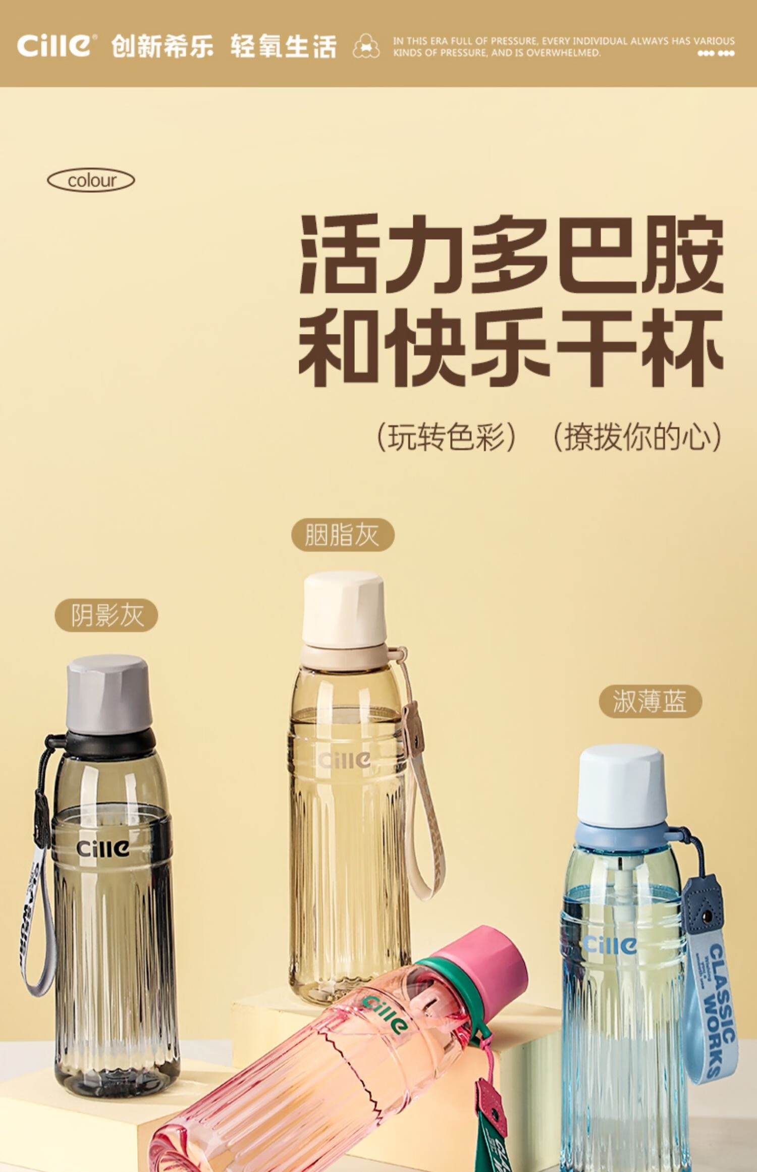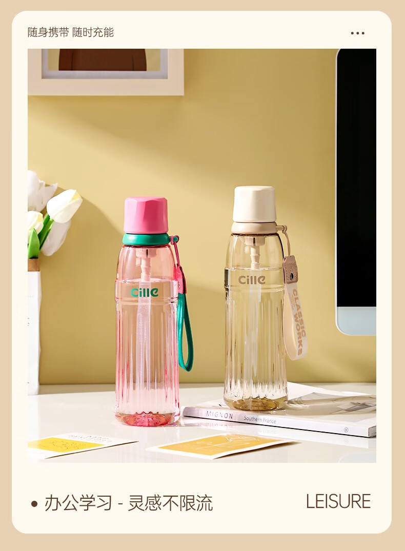 希乐塑料杯男女士tritan运动水杯夏季便携吸管杯大容量学生儿童杯子