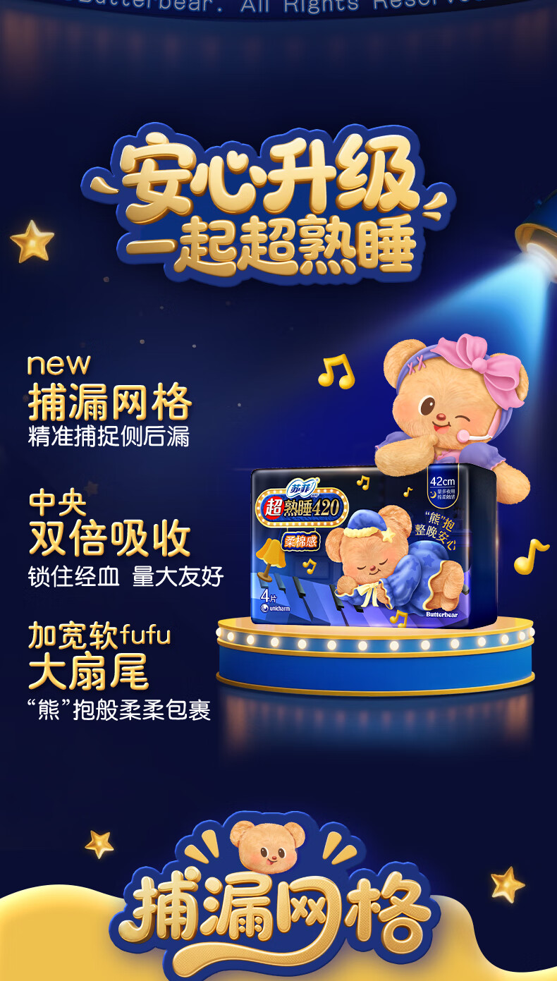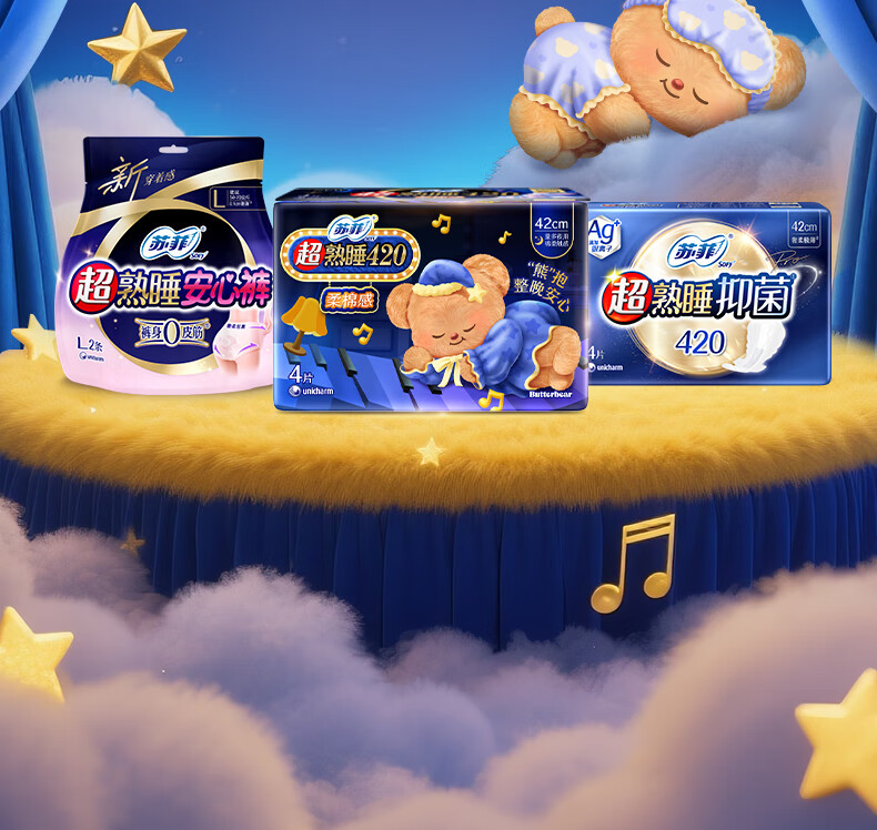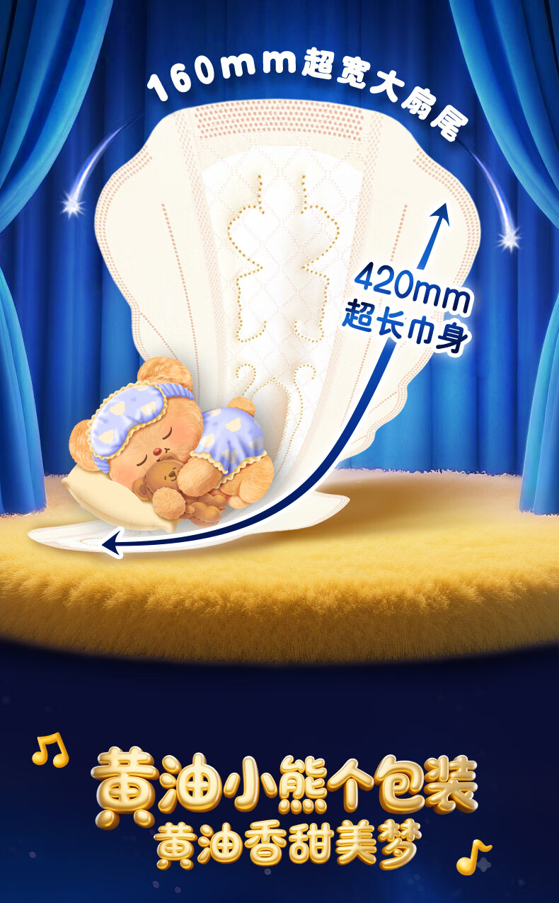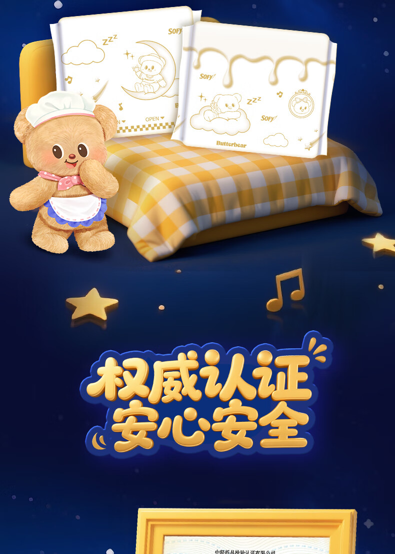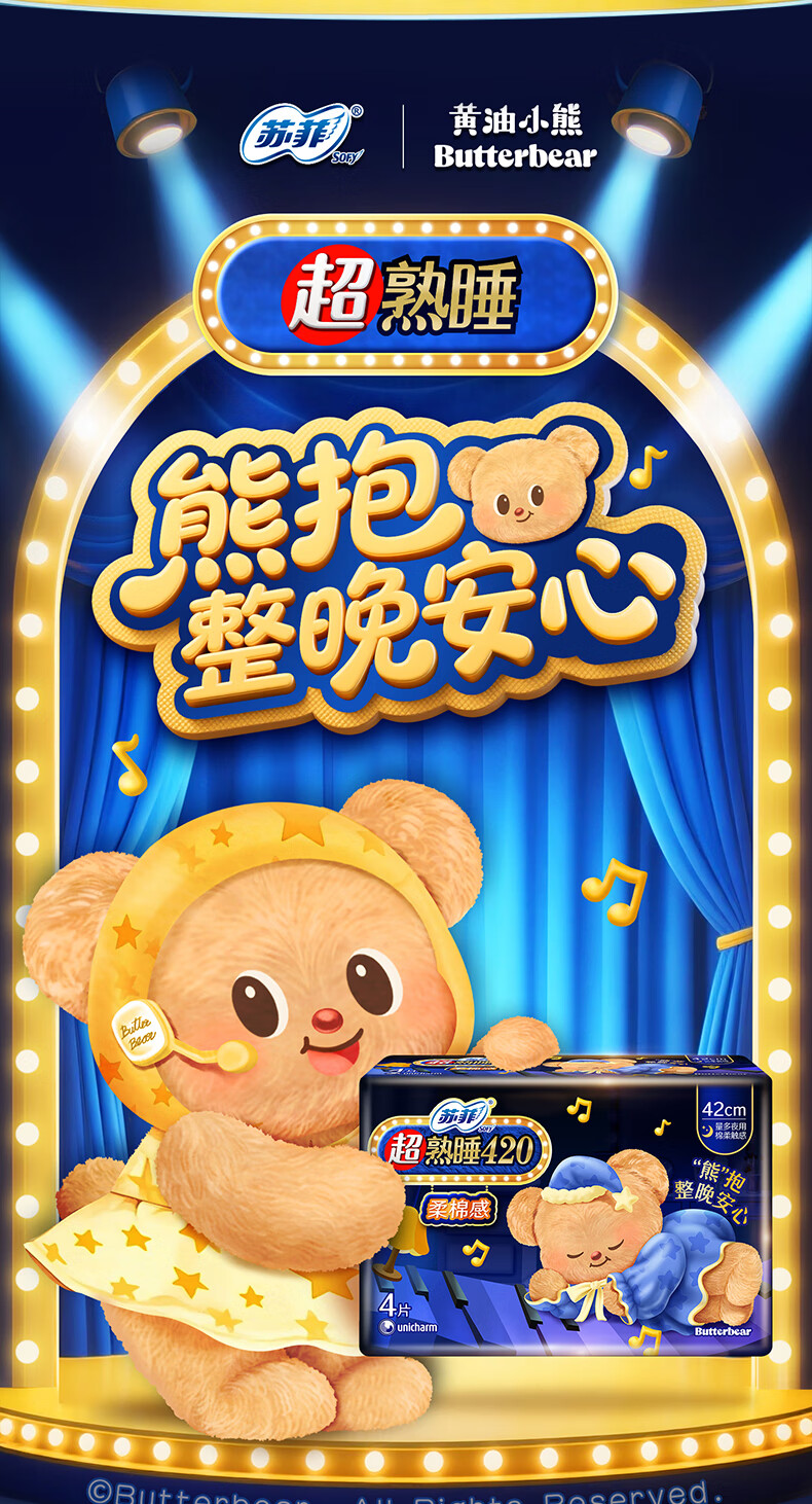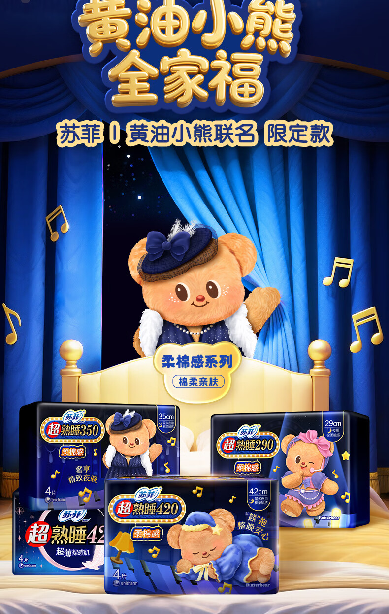 苏菲【黄油小熊联名】卫生巾夜用超熟睡420柔棉感量大姨妈巾旗舰店 黄油小熊 290mm 20片 【爆款】