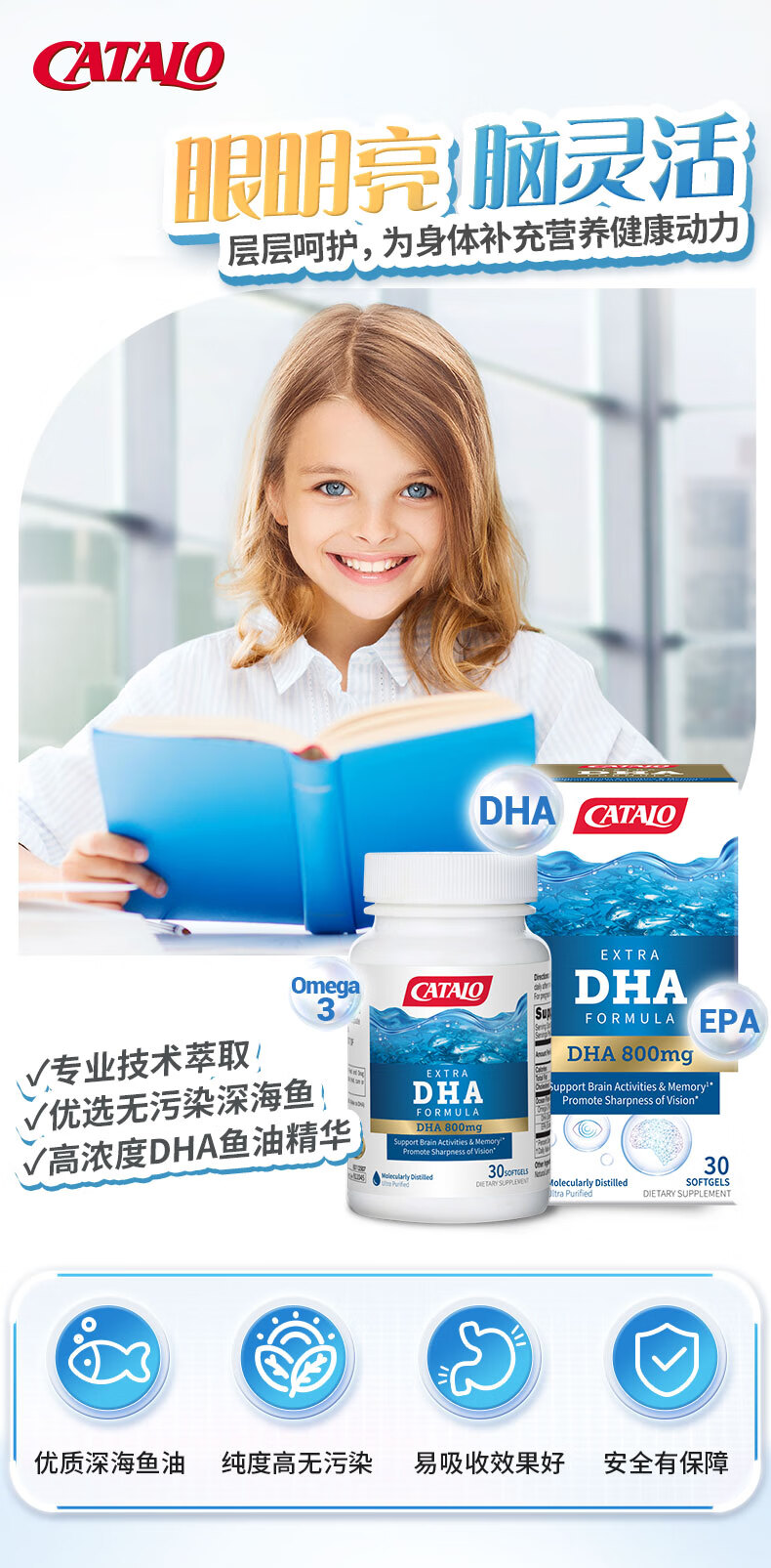 CATALO家得路特强DHA深海鱼油进口成人学生适用30粒新包装