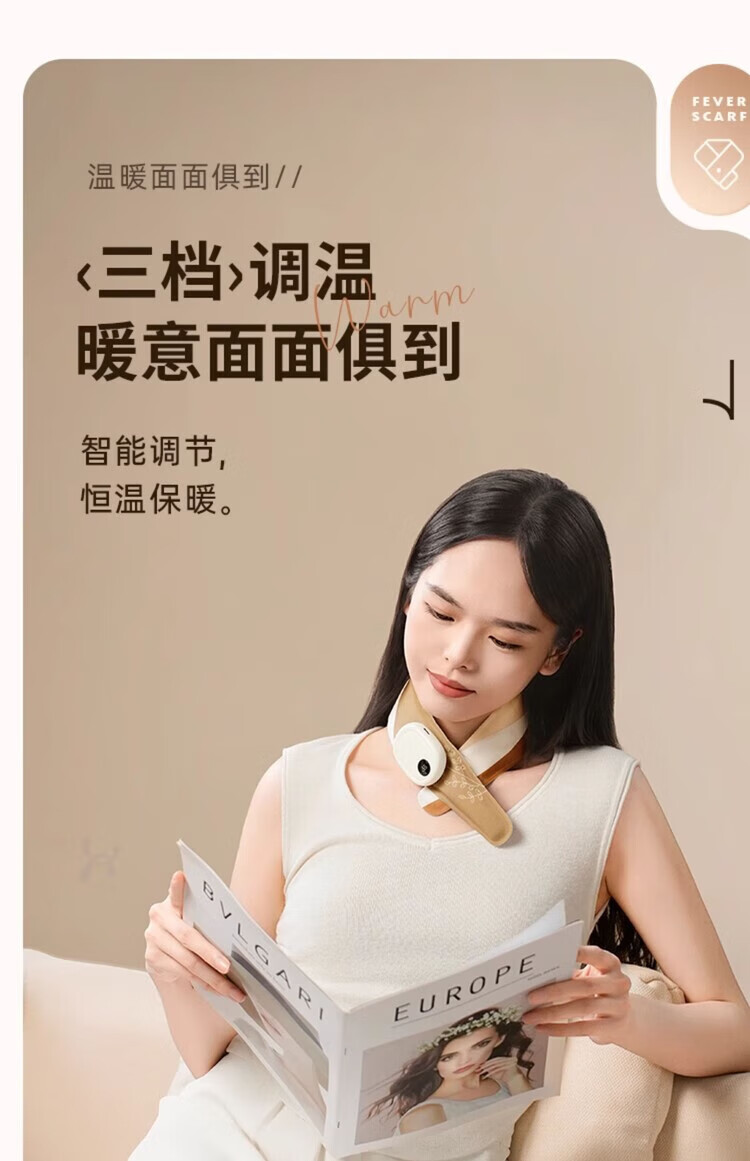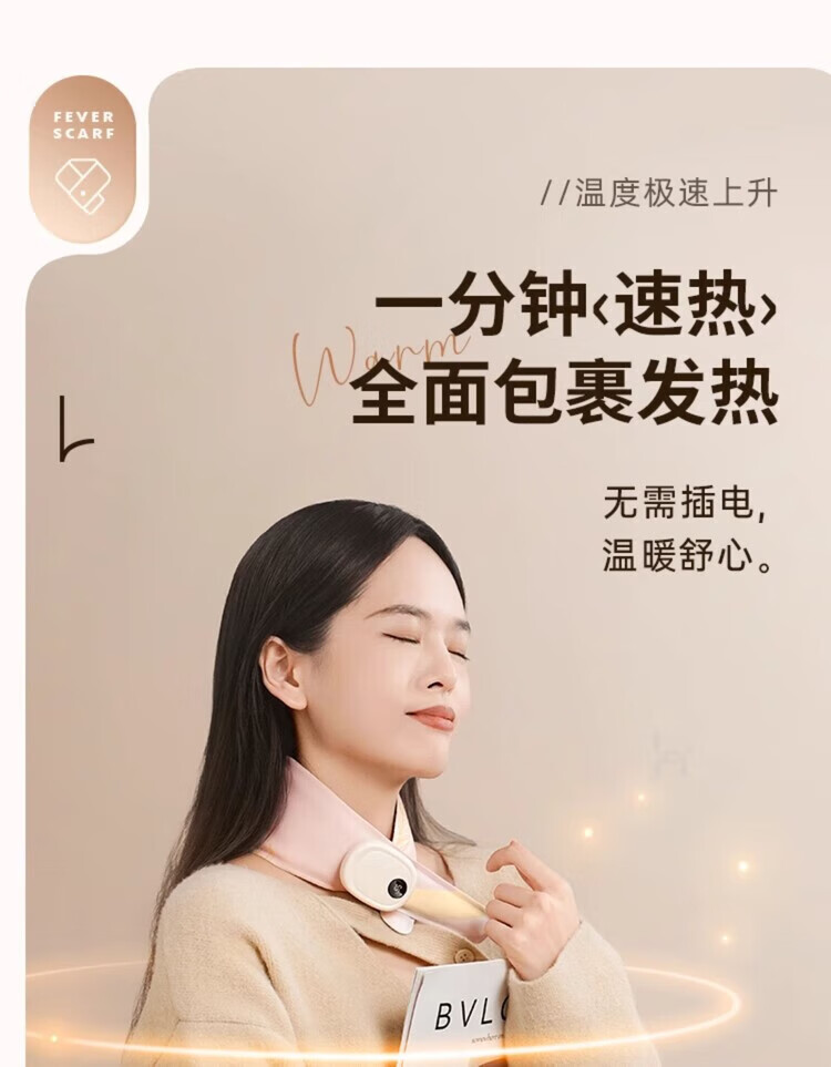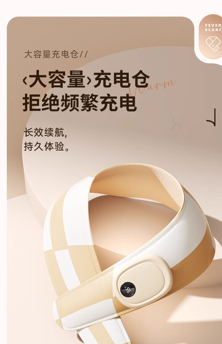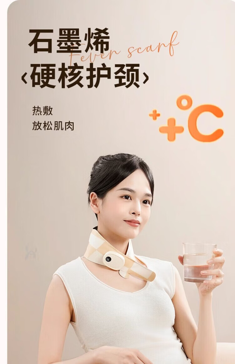 户璃德国暖颈贴发热舒缓颈椎热敷专用充电保暖石墨烯自发热围脖护肩颈脖子办公室妈妈生日礼物女高级感 升级数显充电款-弥粉【石墨烯发热 三档调节亲肤质感