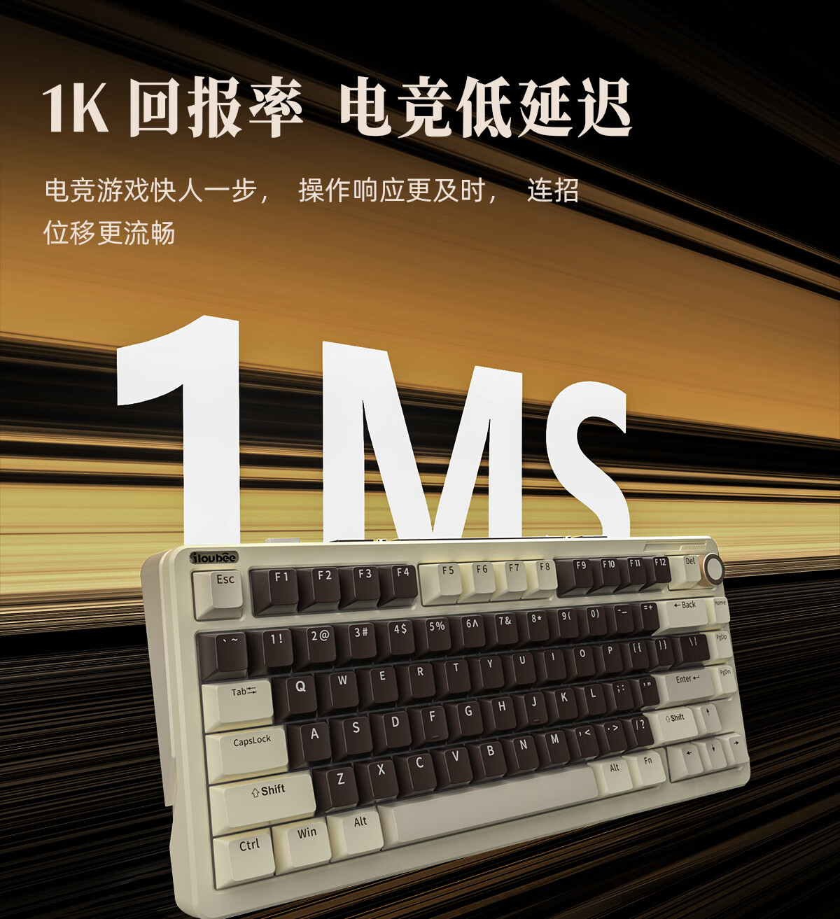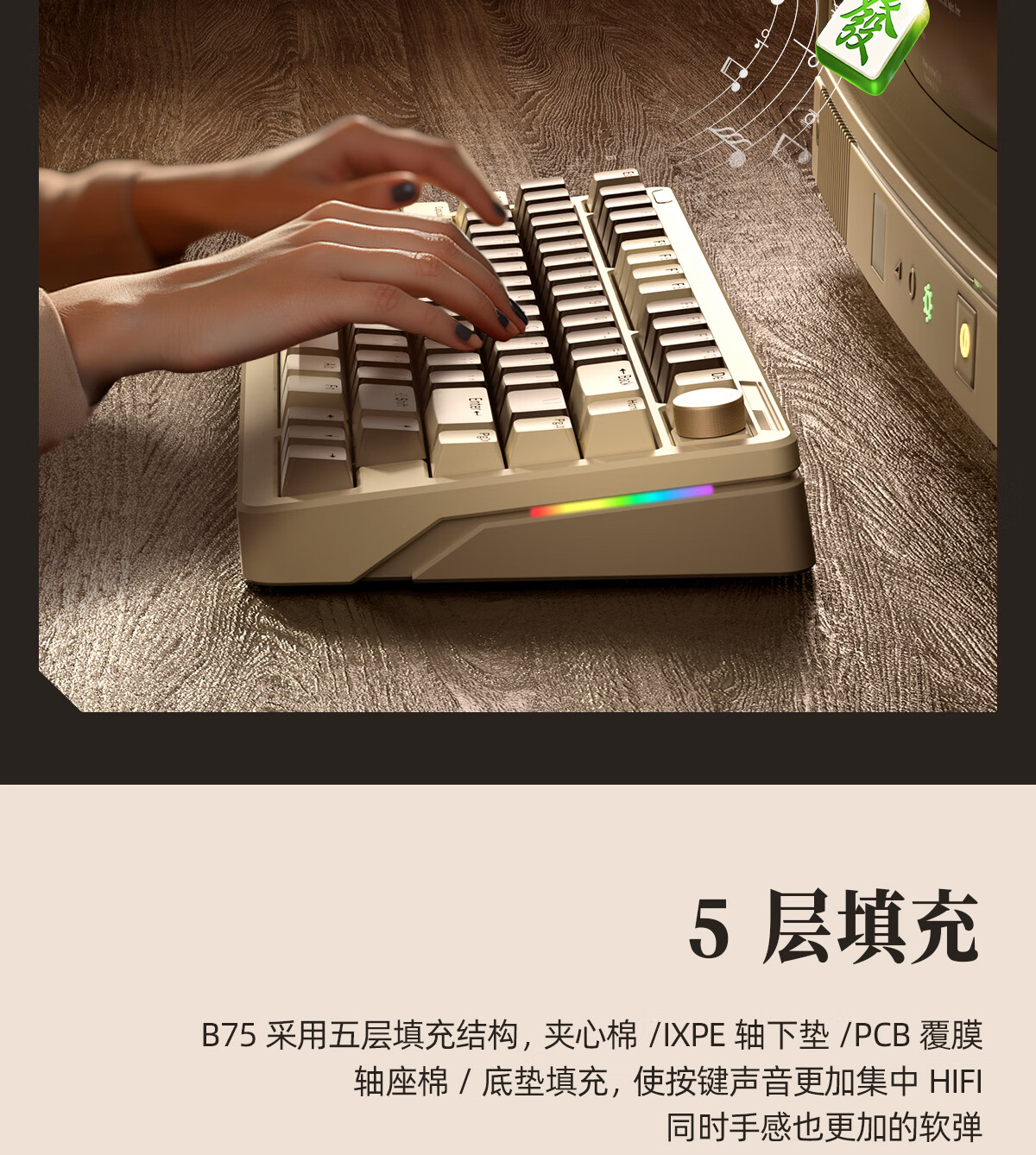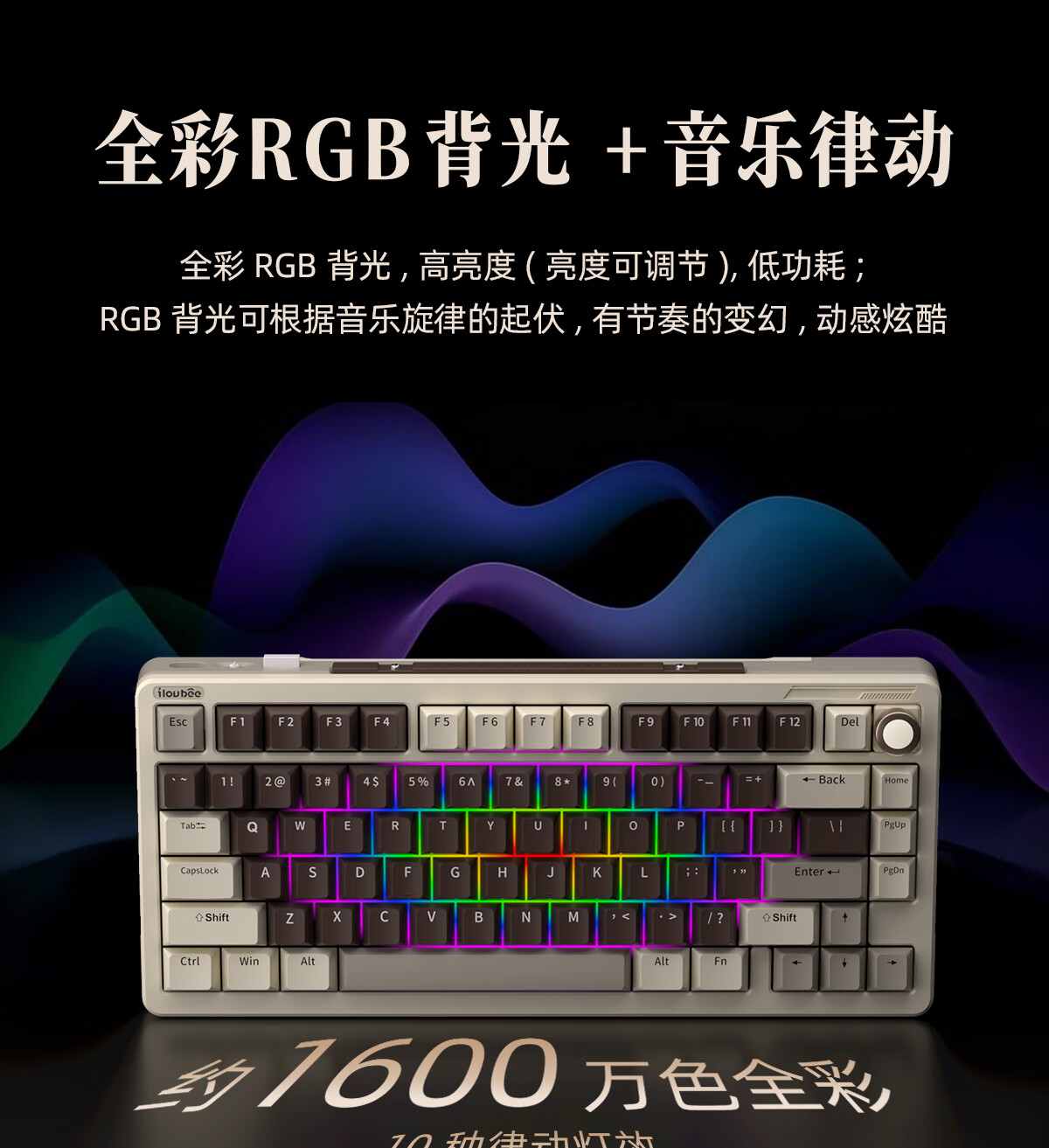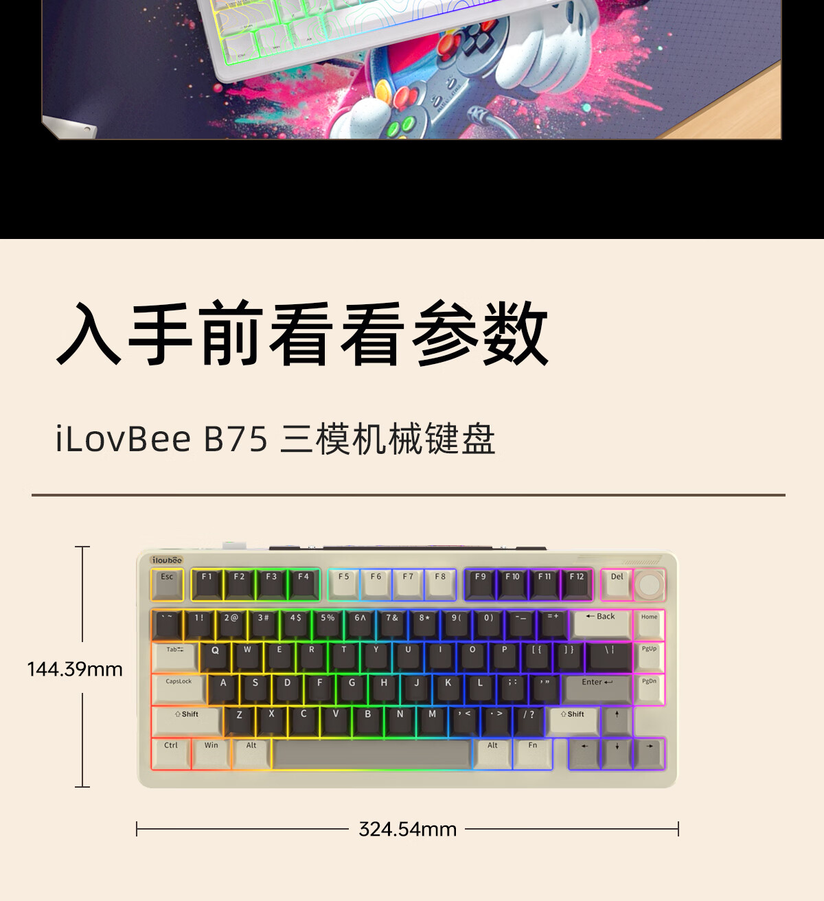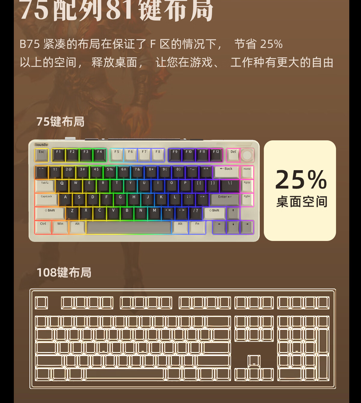 ILOVBEE B75机械游戏键盘麻将音金属旋钮低延迟无线蓝牙有线三模电竞客制化男81键RGB热插拔gasket 蜂焰-剑兰轴