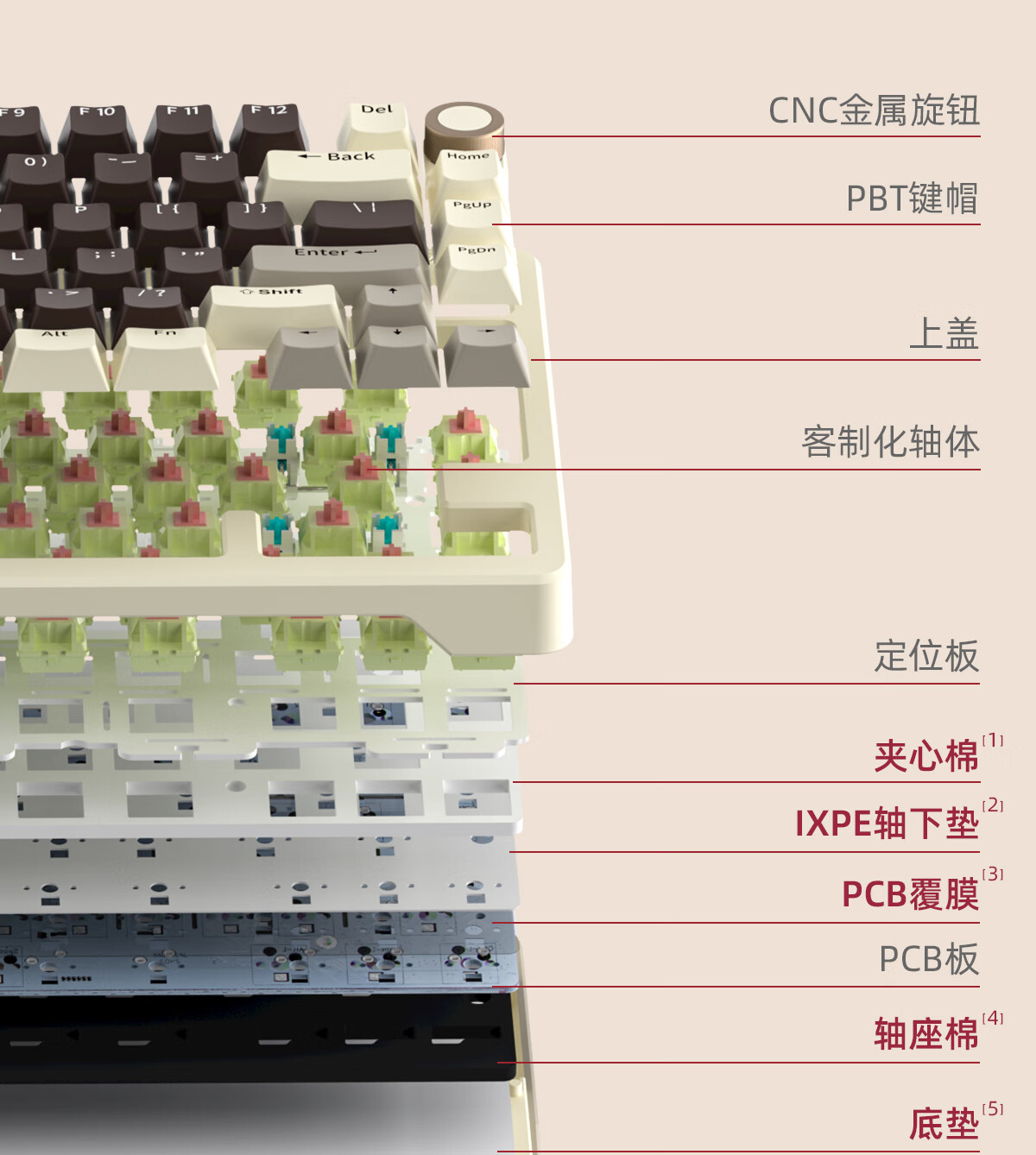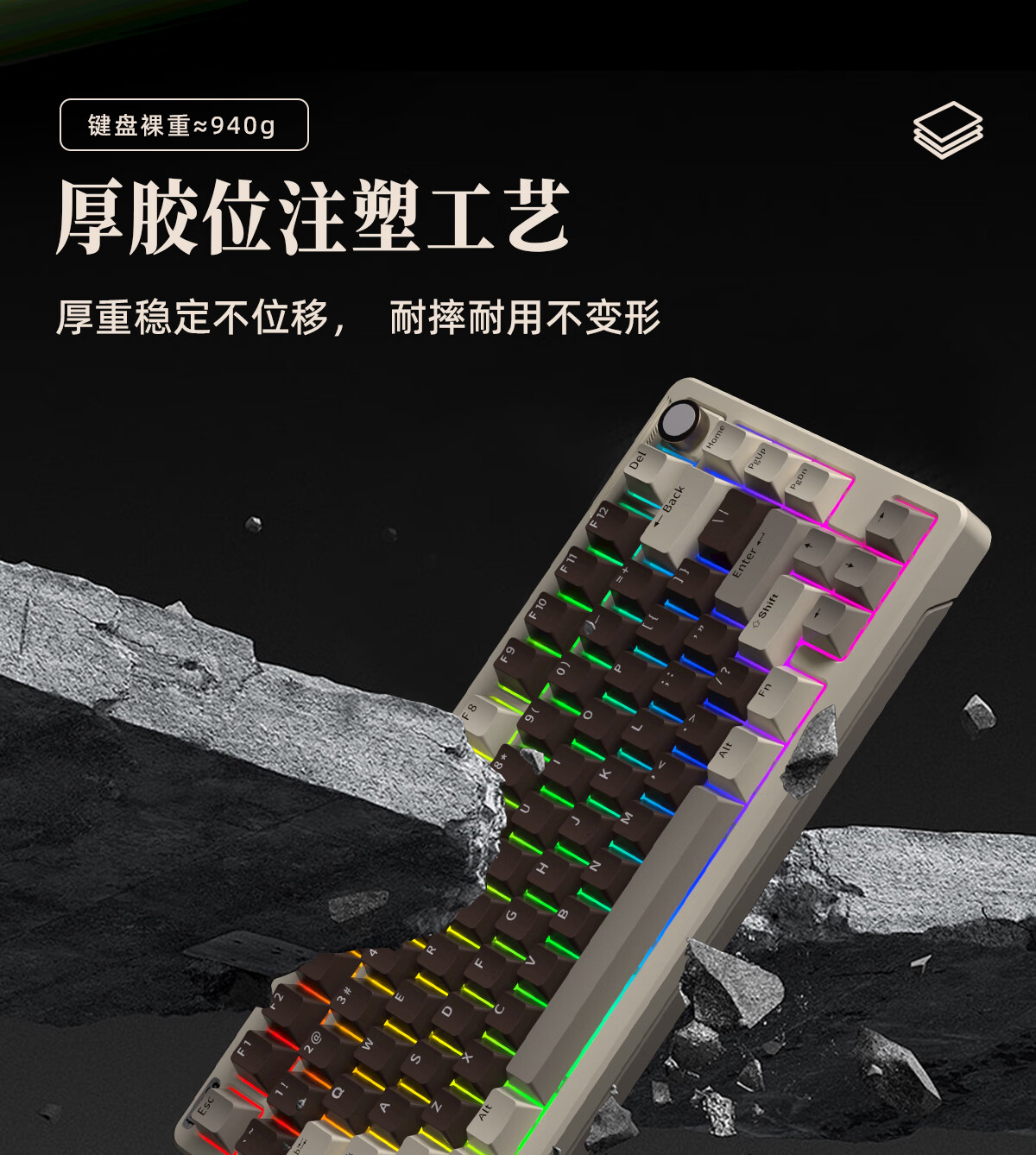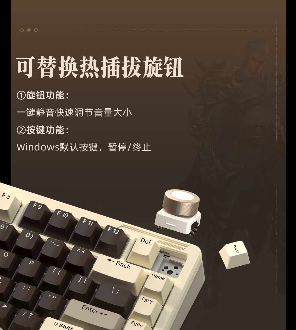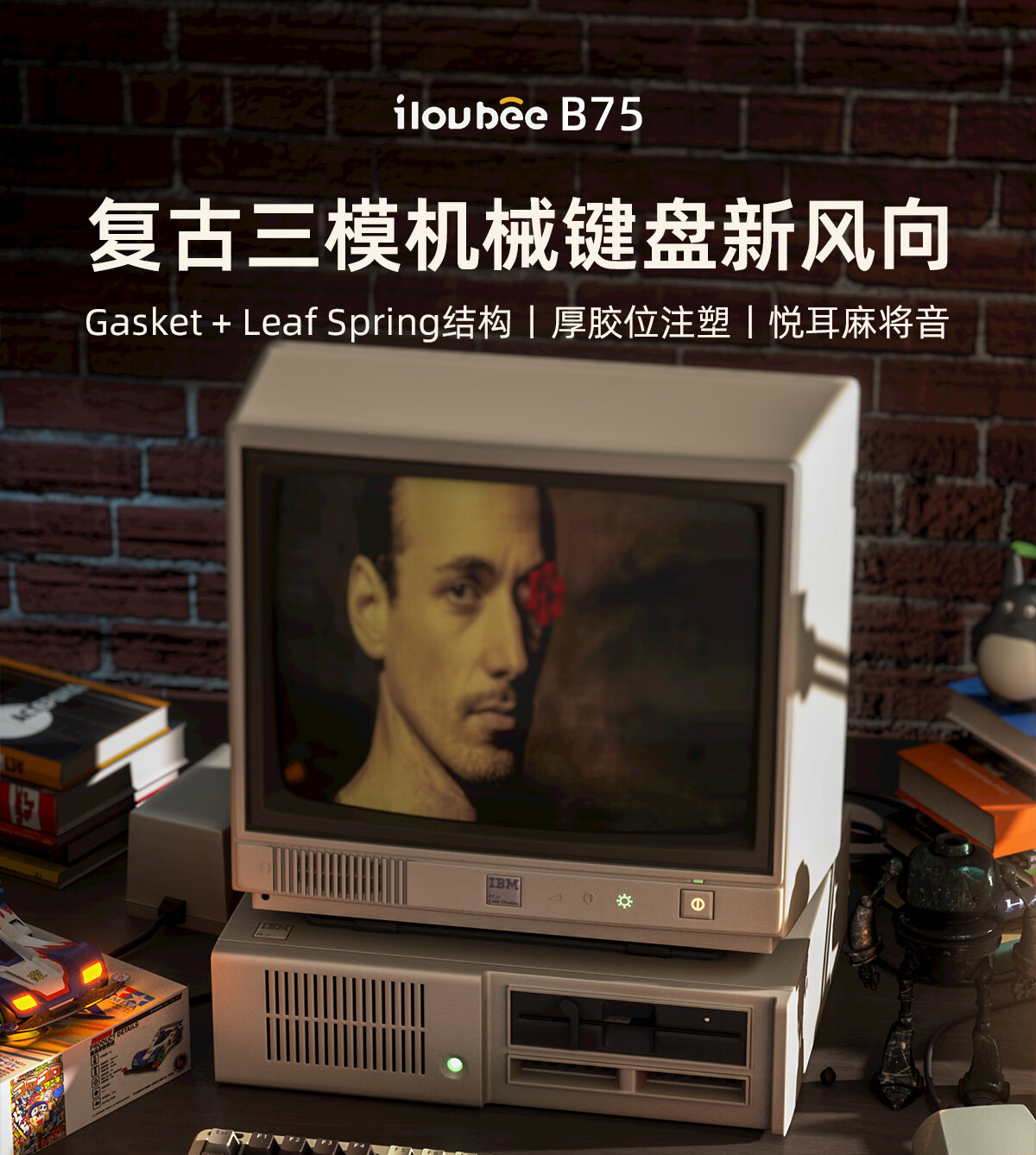 ILOVBEE B75机械游戏键盘麻将音金属旋钮低延迟无线蓝牙有线三模电竞客制化男81键RGB热插拔gasket 蜂焰-剑兰轴
