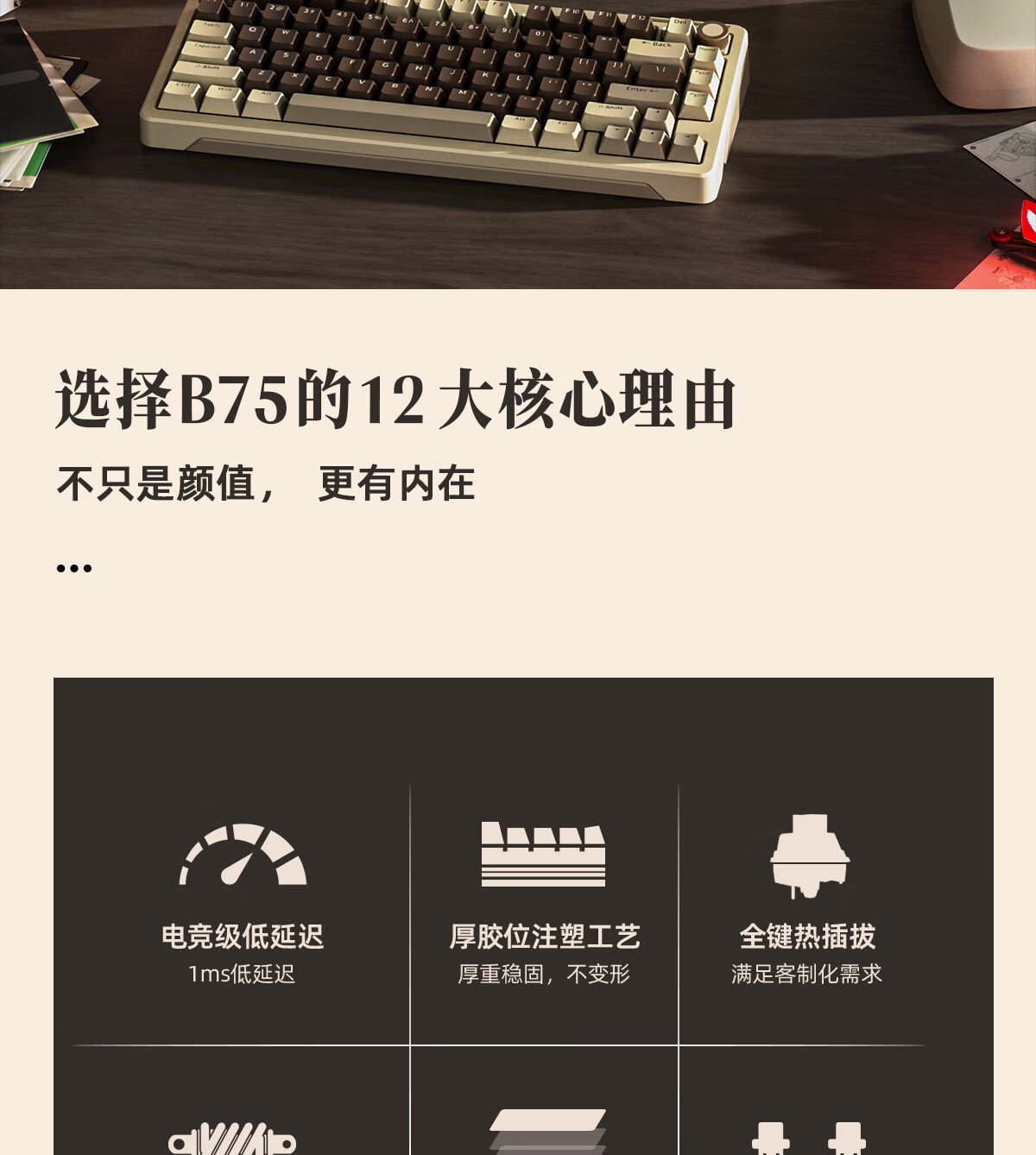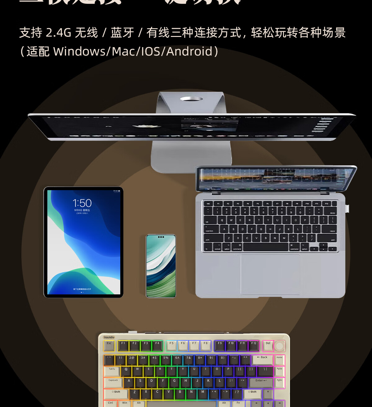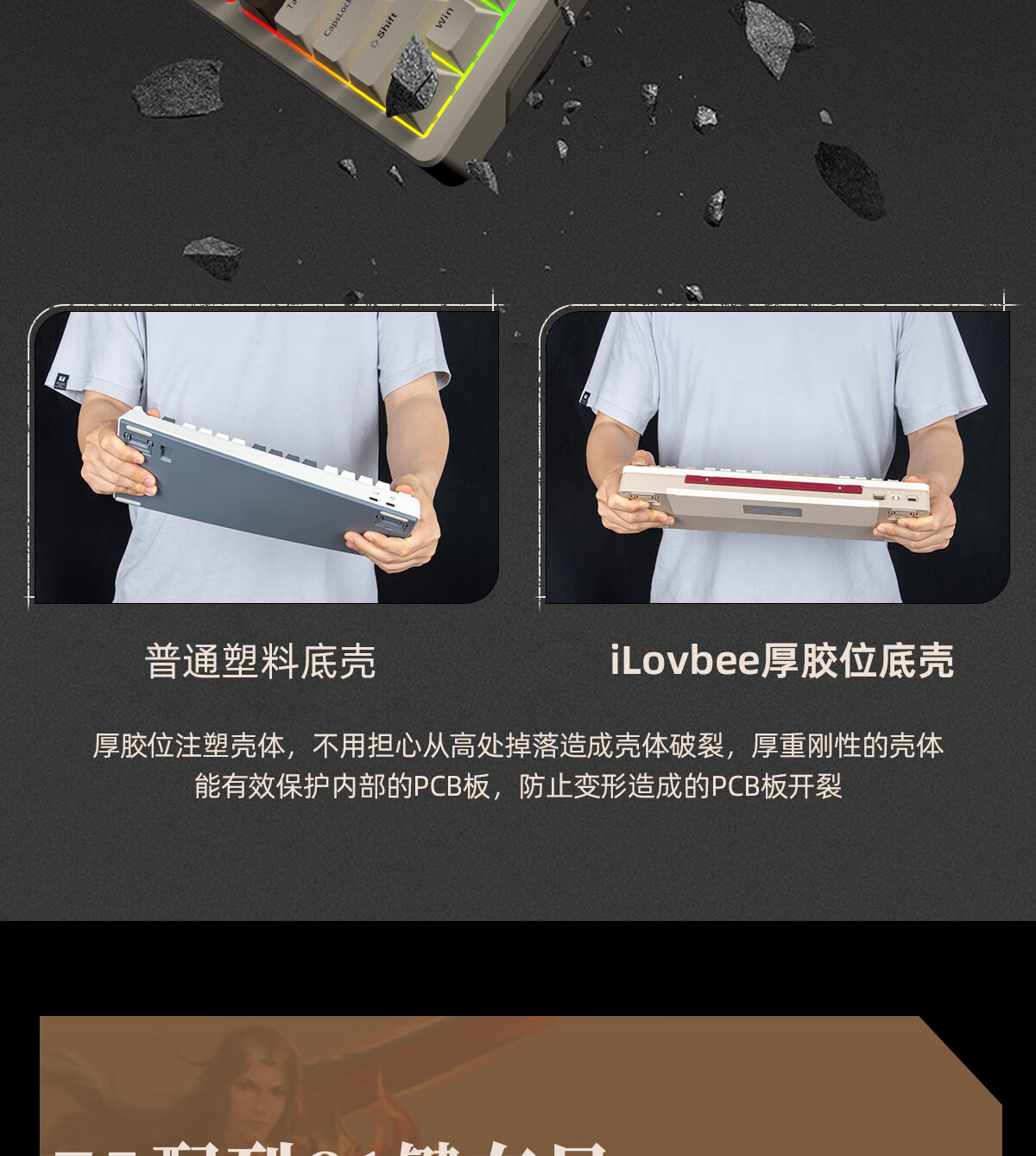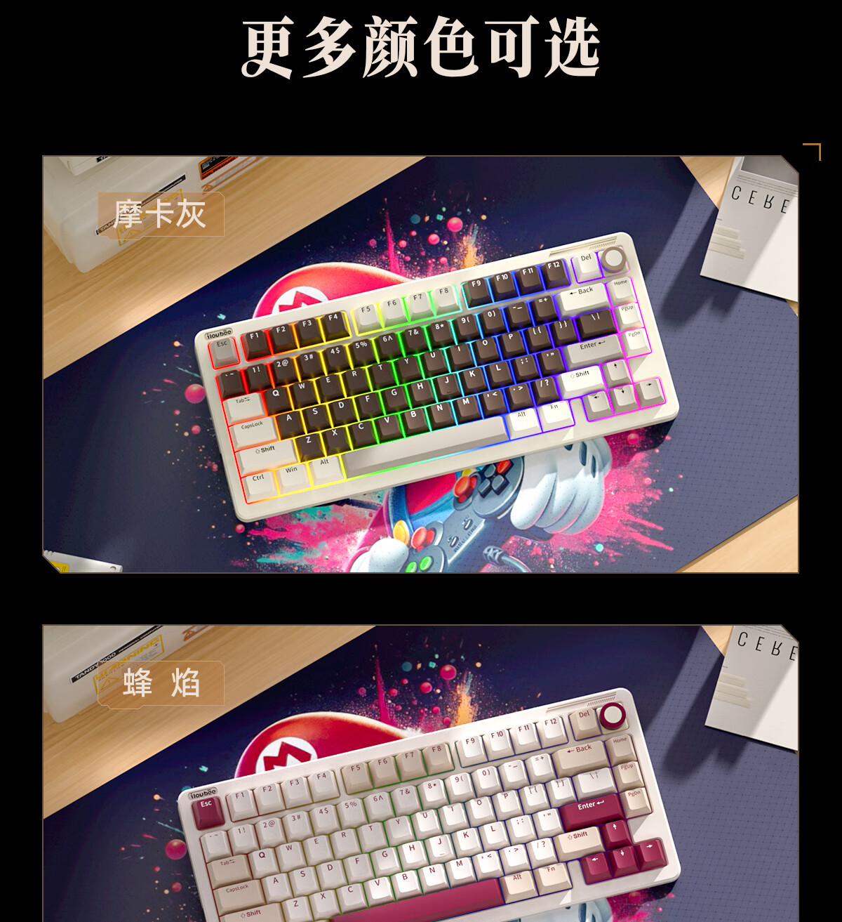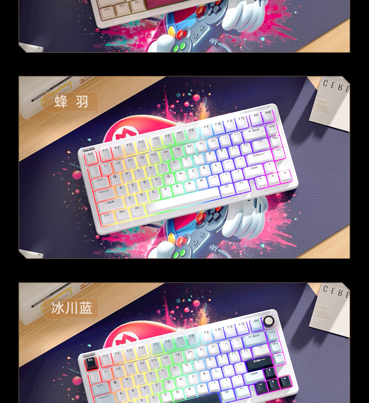 ILOVBEE B75机械游戏键盘麻将音金属旋钮低延迟无线蓝牙有线三模电竞客制化男81键RGB热插拔gasket 蜂焰-剑兰轴