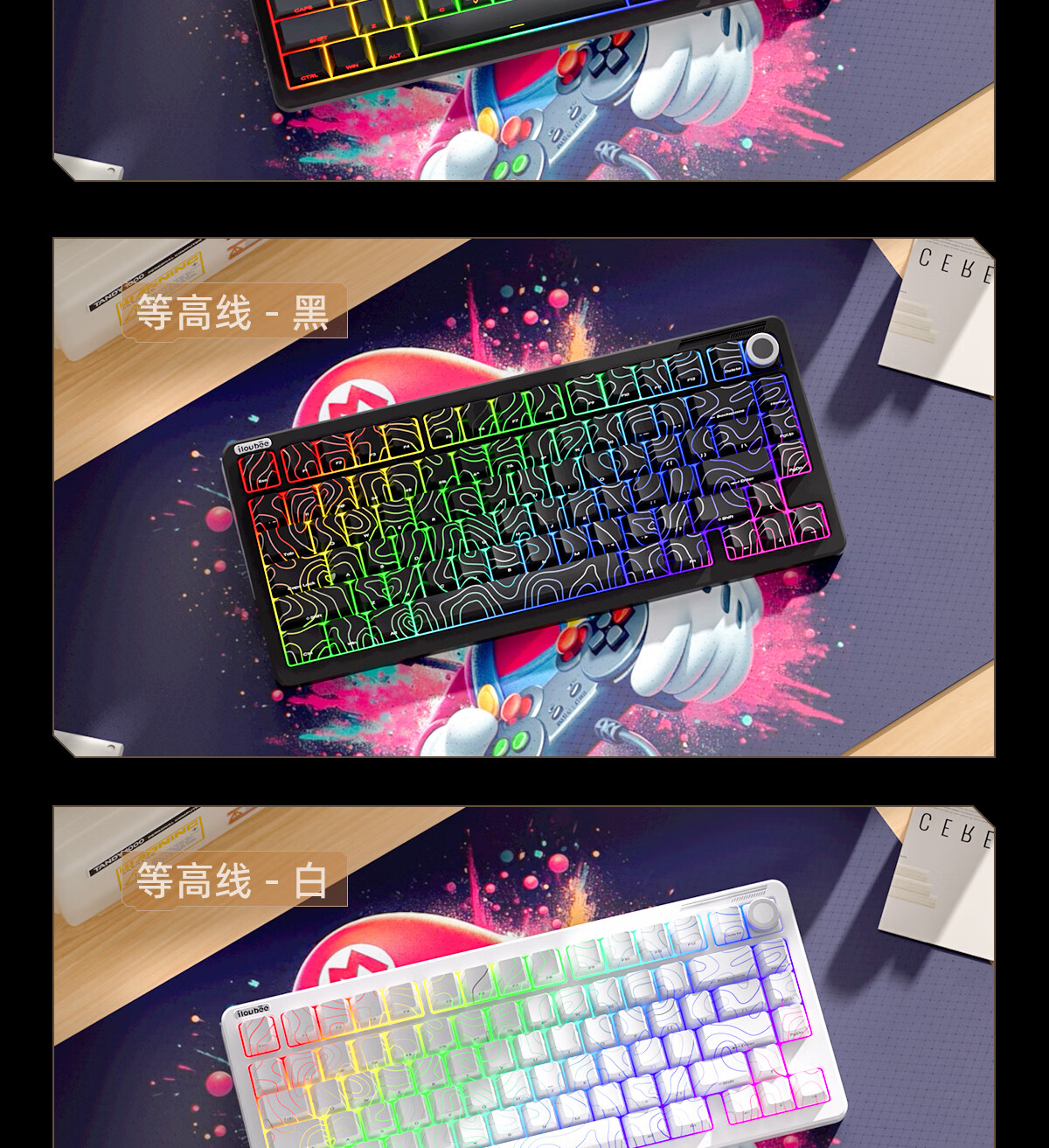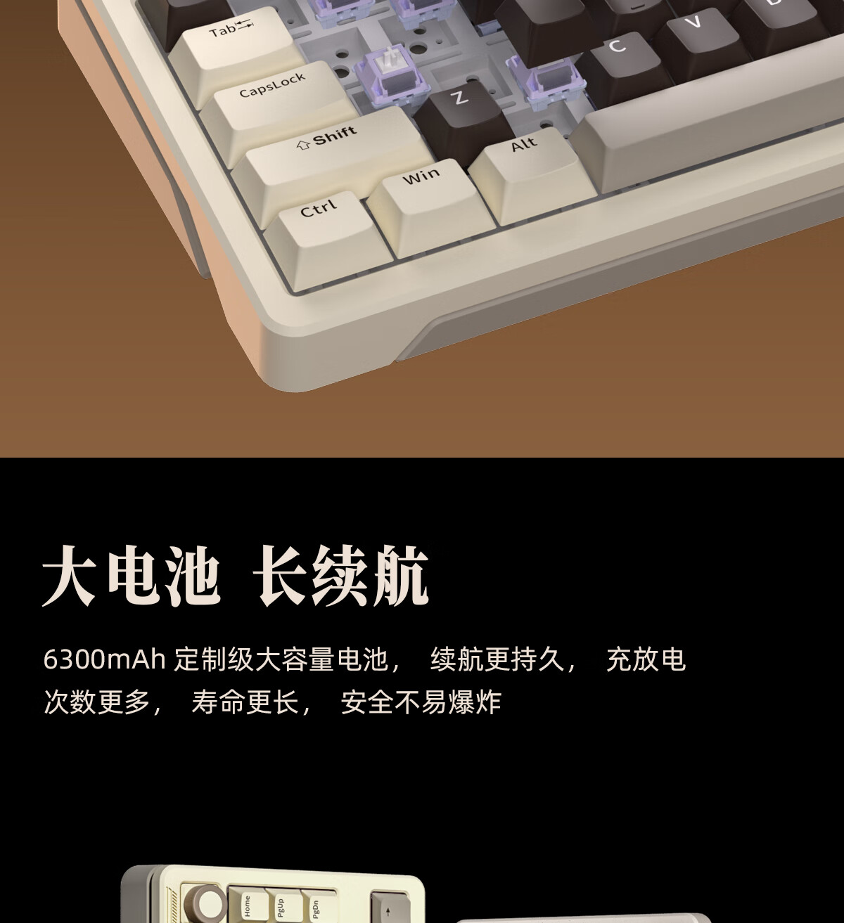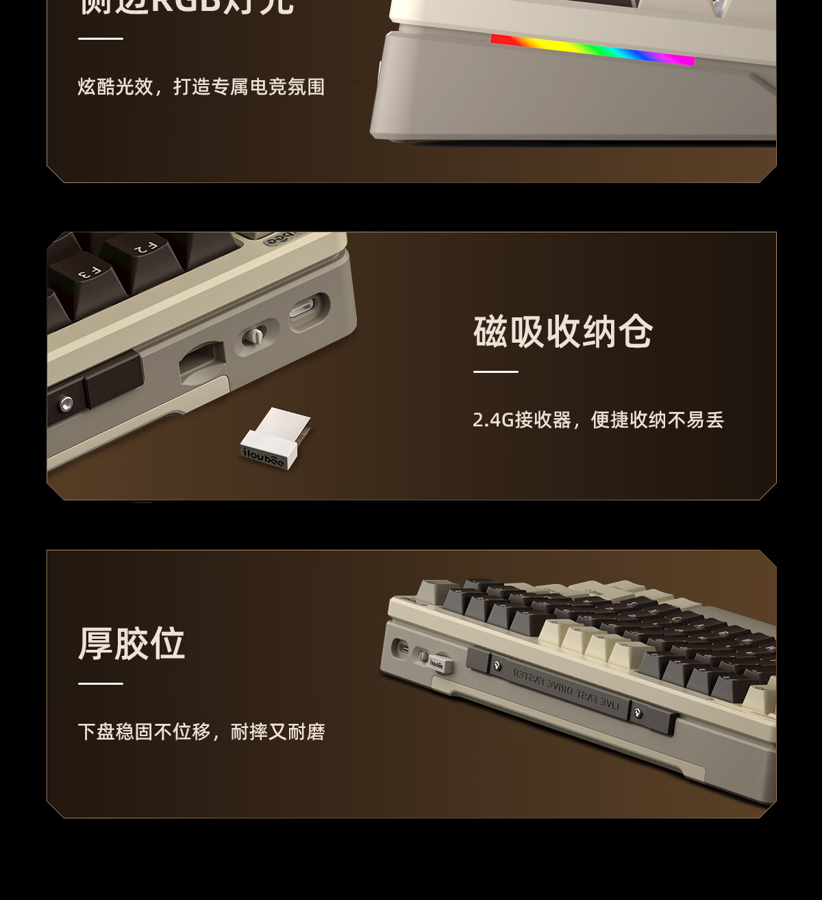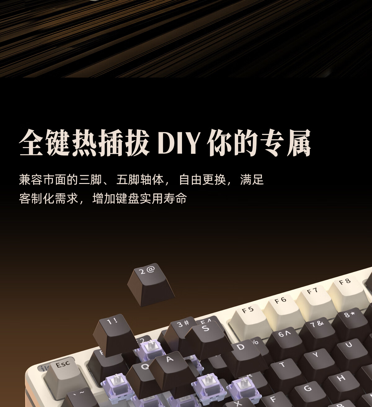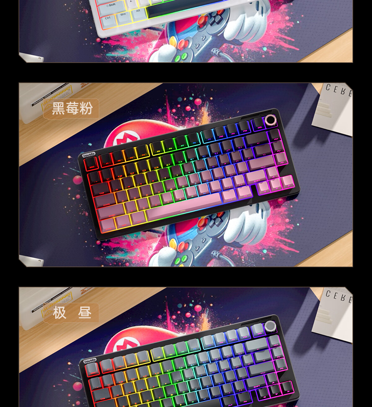 ILOVBEE B75机械游戏键盘麻将音金属旋钮低延迟无线蓝牙有线三模电竞客制化男81键RGB热插拔gasket 蜂焰-剑兰轴
