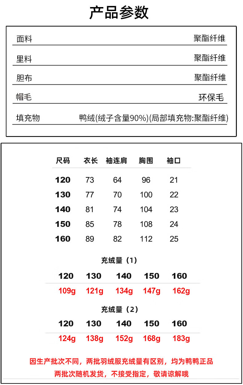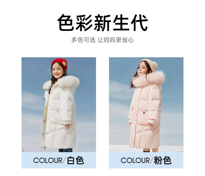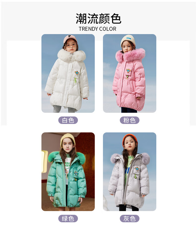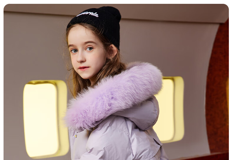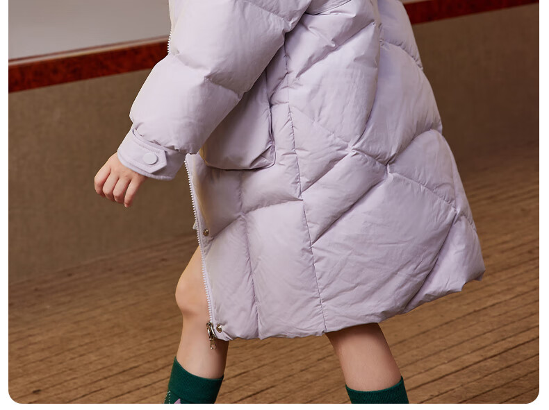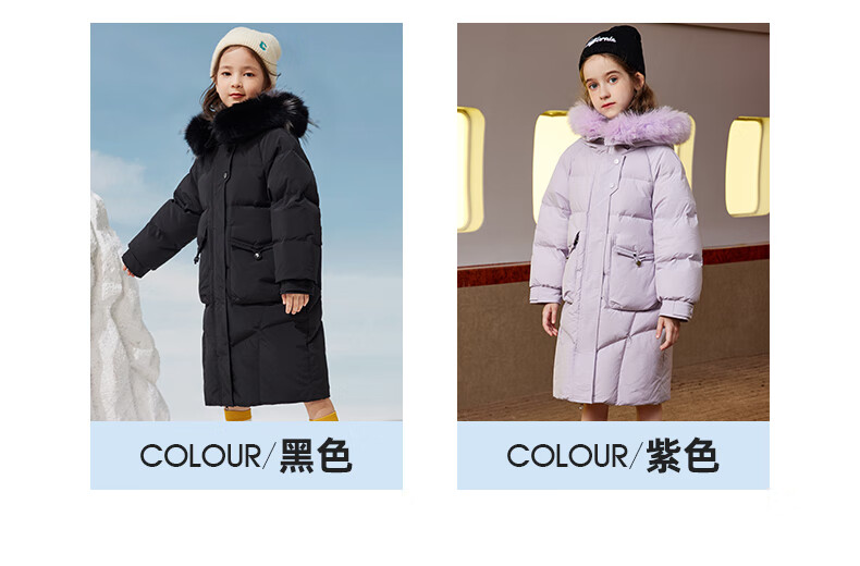 鸭鸭儿童羽绒服洋气中长款大毛领中大童加厚极寒童装冬季外套WJ 紫色 120