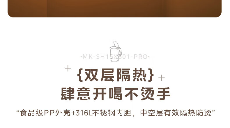 美的(Midea)电热水壶烧水壶自动断电保温一体 316L不锈钢 1.5升恒温壶保温养生自动断电15X301-PRO