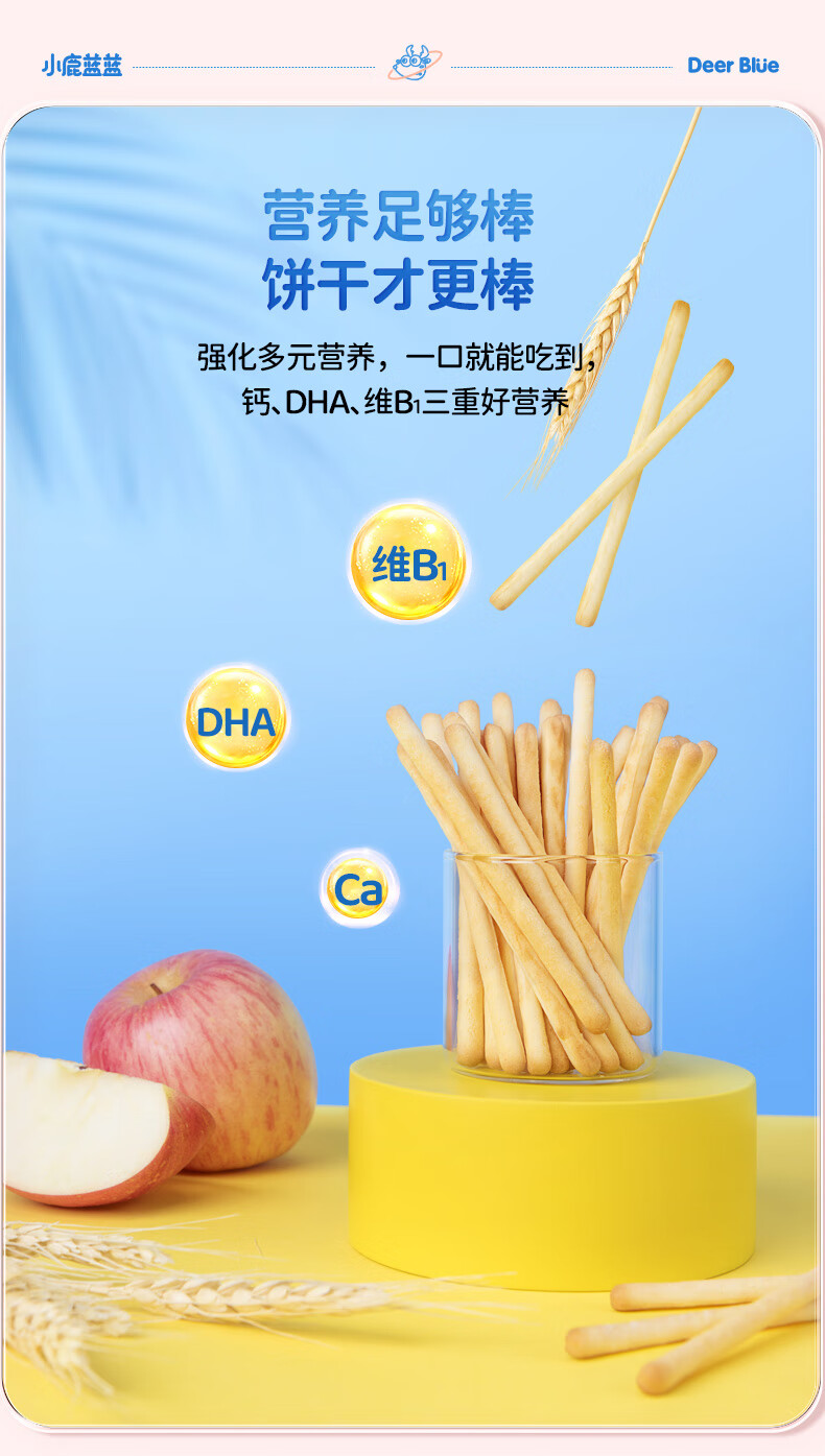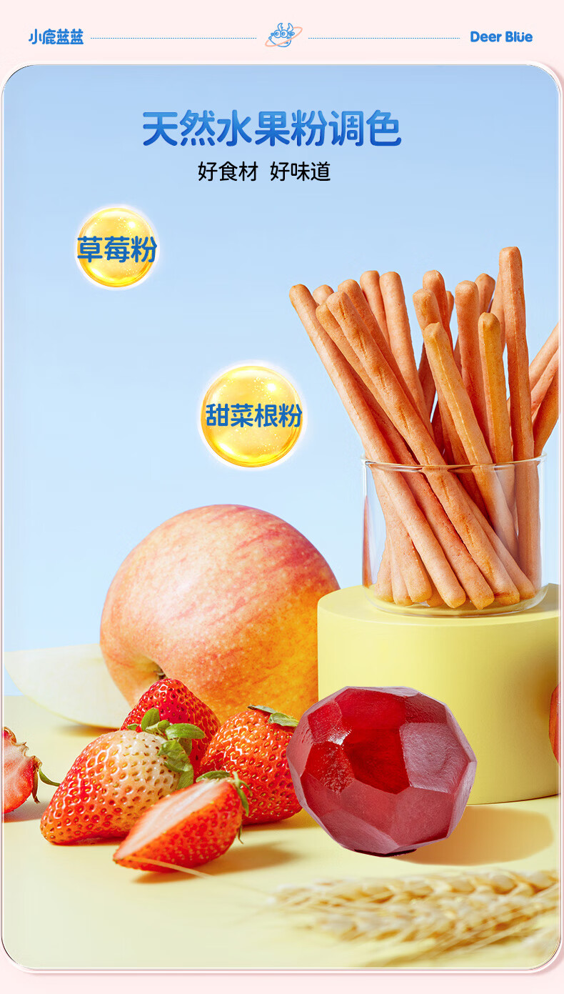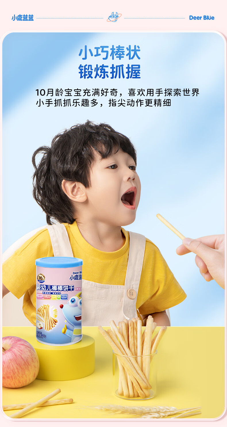 小鹿蓝蓝婴幼儿棒棒饼干炭烧棒磨牙棒手指饼干一岁宝宝零食婴标无添加盐 草莓苹果味1罐