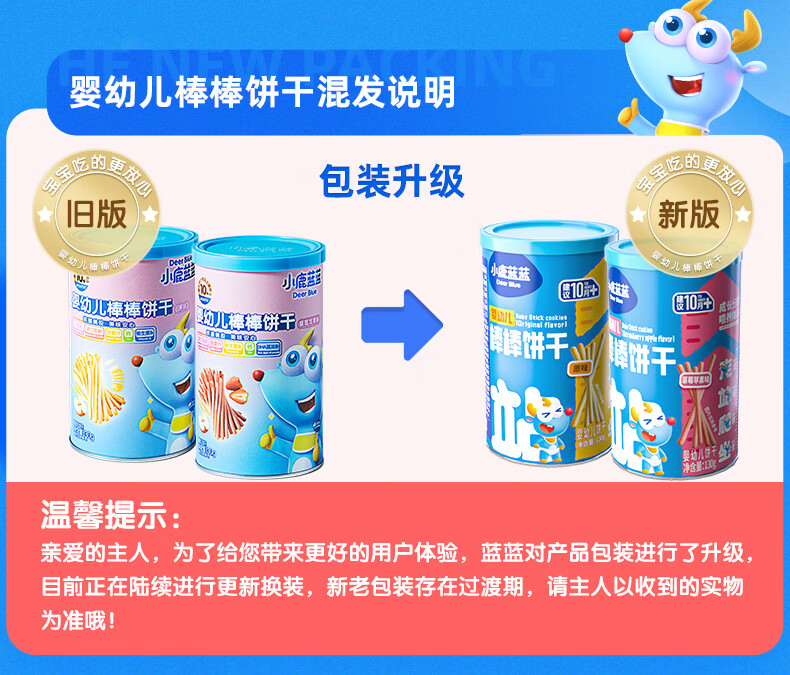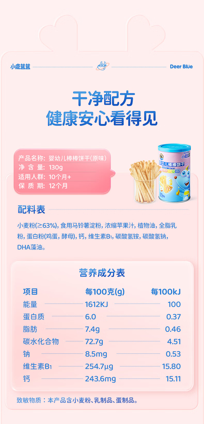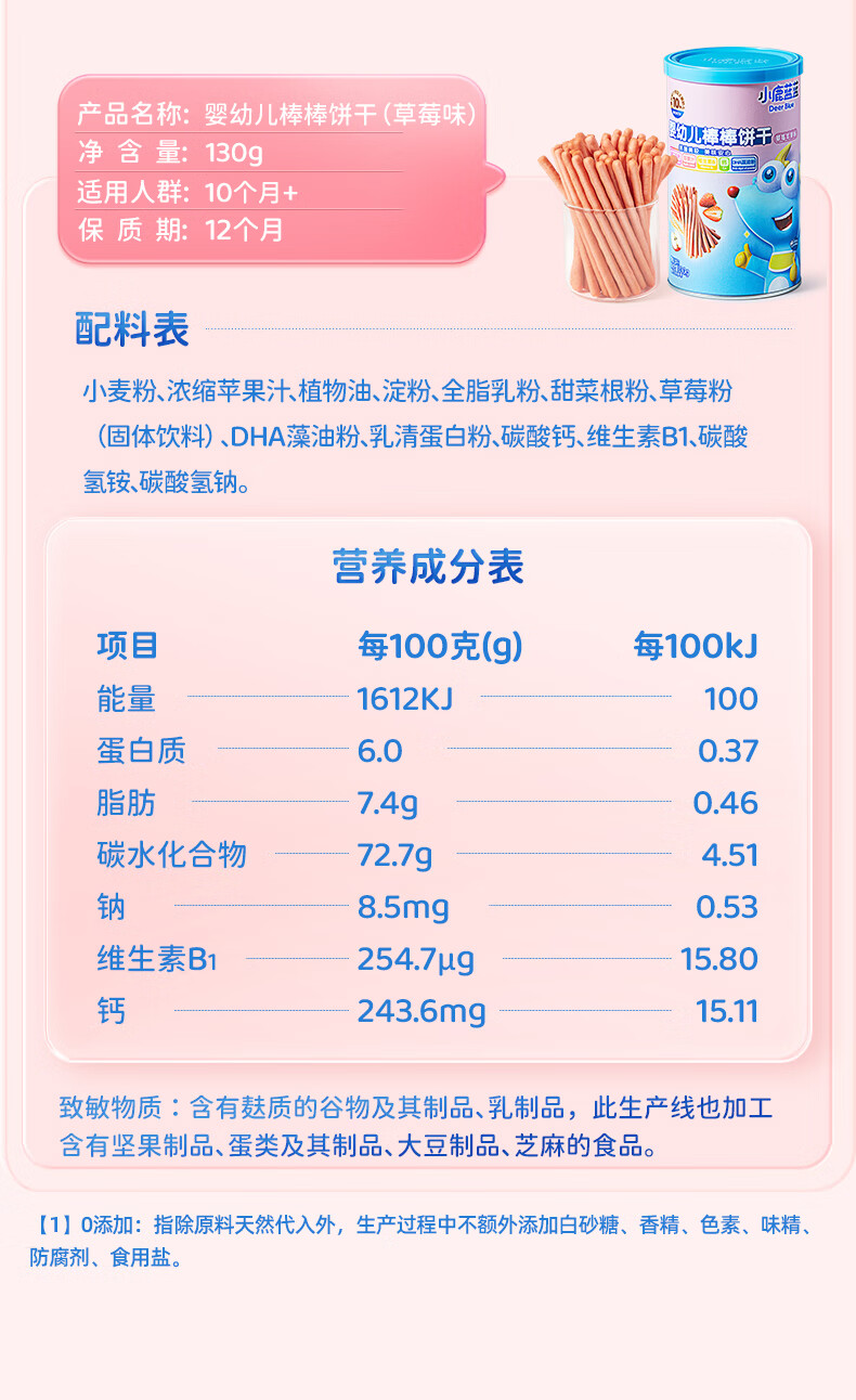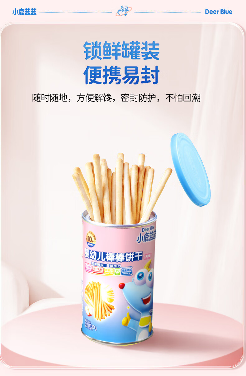 小鹿蓝蓝婴幼儿棒棒饼干炭烧棒磨牙棒手指饼干一岁宝宝零食婴标无添加盐 草莓苹果味1罐