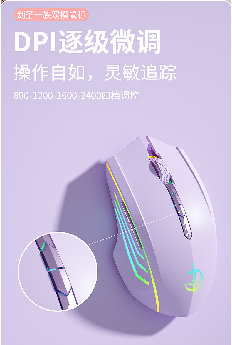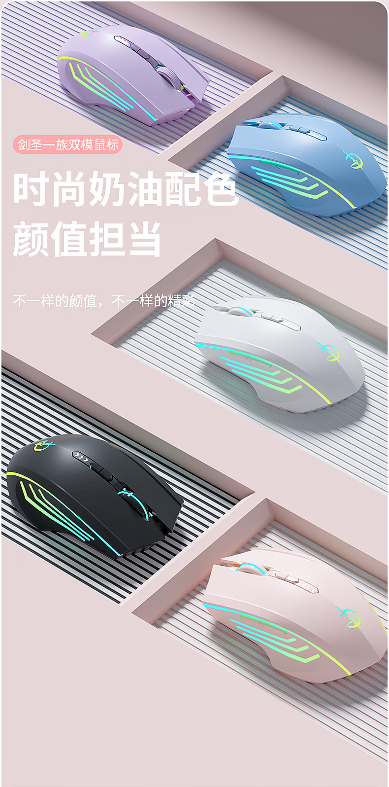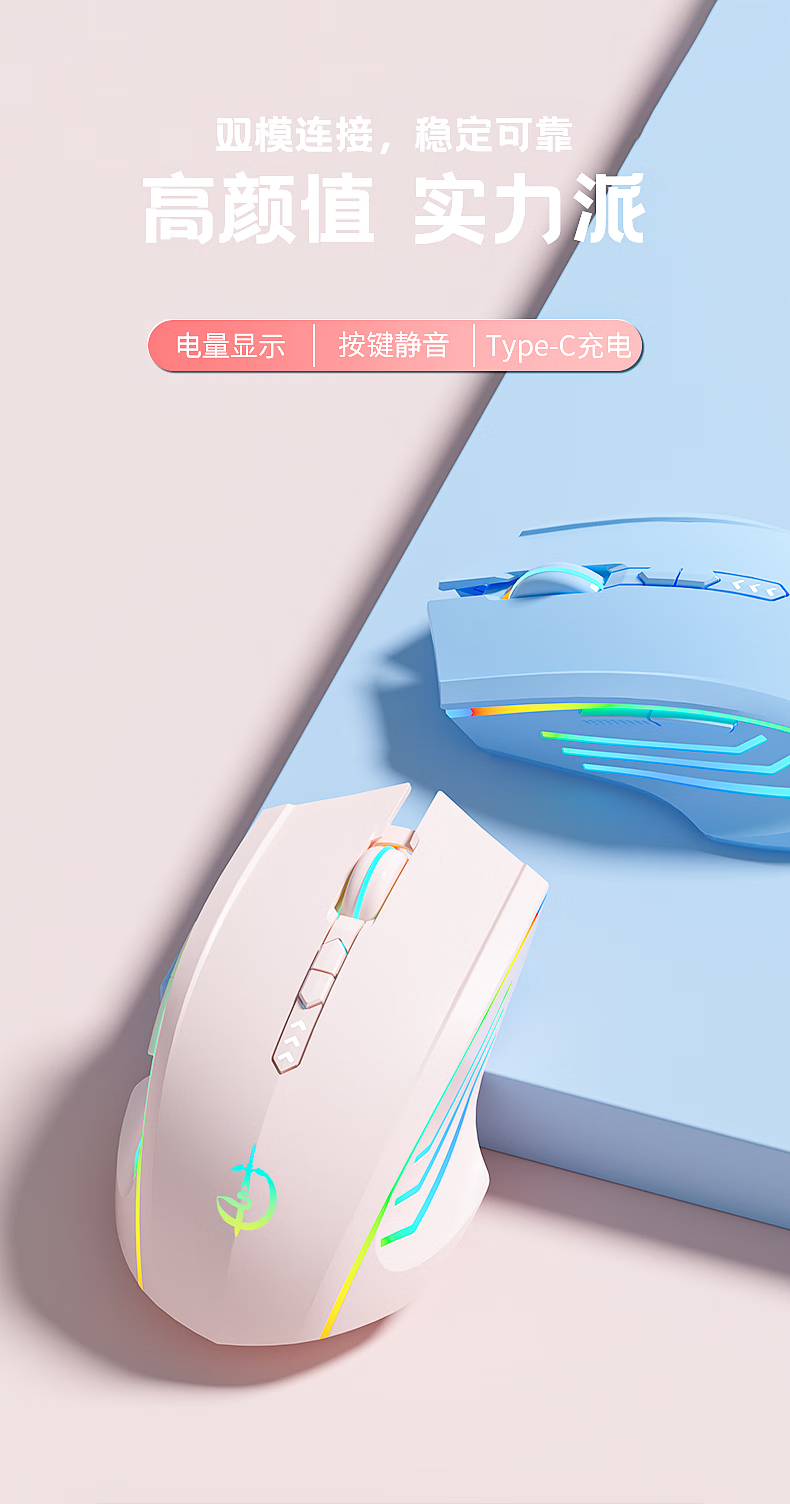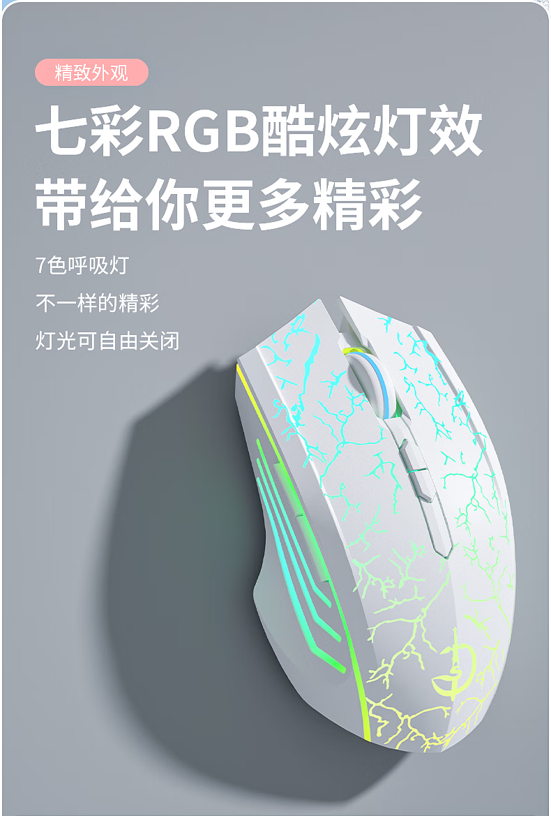 GIYEO无线鼠标 游戏鼠标有声 静音鼠标 蓝牙鼠标 电竞外设 办公鼠标 RGB灯效宏编程 笔记本电脑台式通用 裂纹白【无电显】 【2.4G无线单模】RGB灯+2400DPI+静音