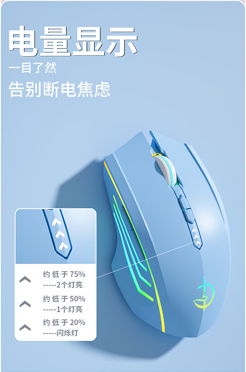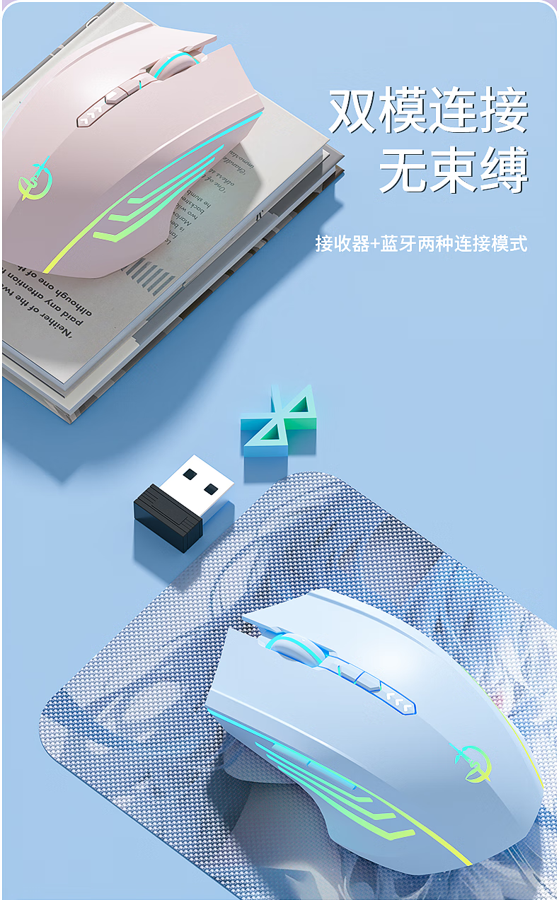 IMICE7键免双击2.4G静音可充电炫彩呼吸灯无线游戏鼠标 GW-X7双模静音发光版(1个)