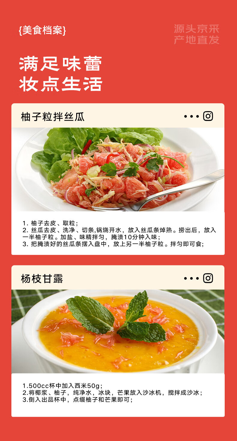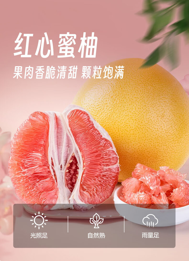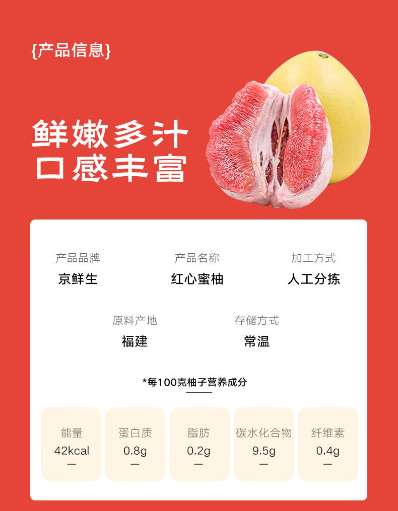 京鲜生 福建琯溪红心蜜柚2粒 净重4-4.5斤 水果礼盒 源头直发包邮