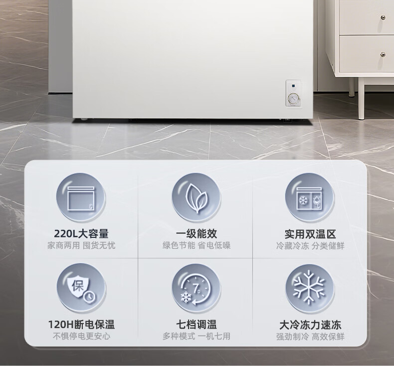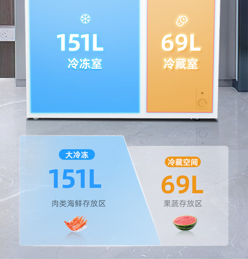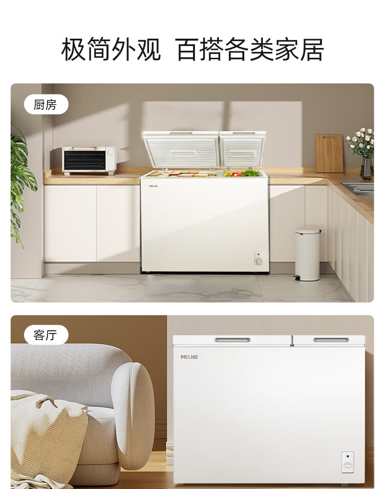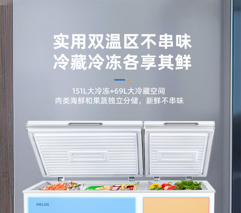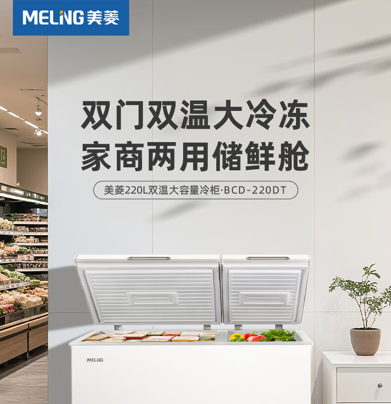 美菱(MeiLing)卧式冰柜220升低霜家用商用双箱双温冷柜一级能效节能省电低噪母婴母乳冷藏冷冻大容量补贴电冰柜 BCD-220DT 220L