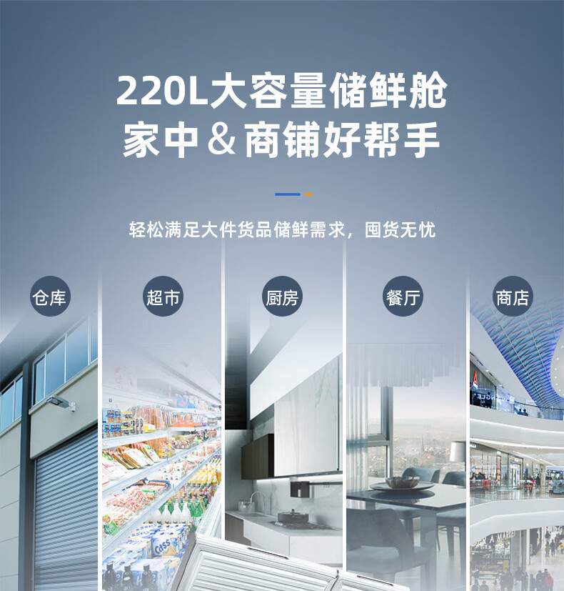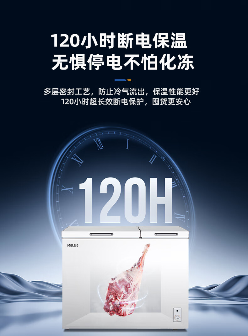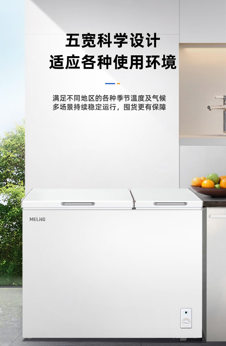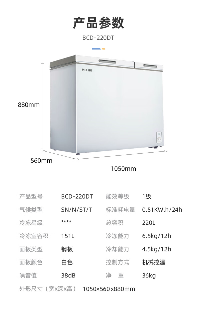 美菱(MeiLing)卧式冰柜220升低霜家用商用双箱双温冷柜一级能效节能省电低噪母婴母乳冷藏冷冻大容量补贴电冰柜 BCD-220DT 220L