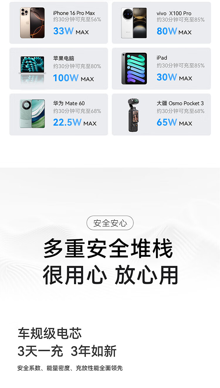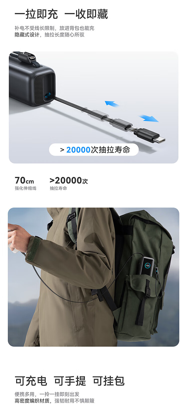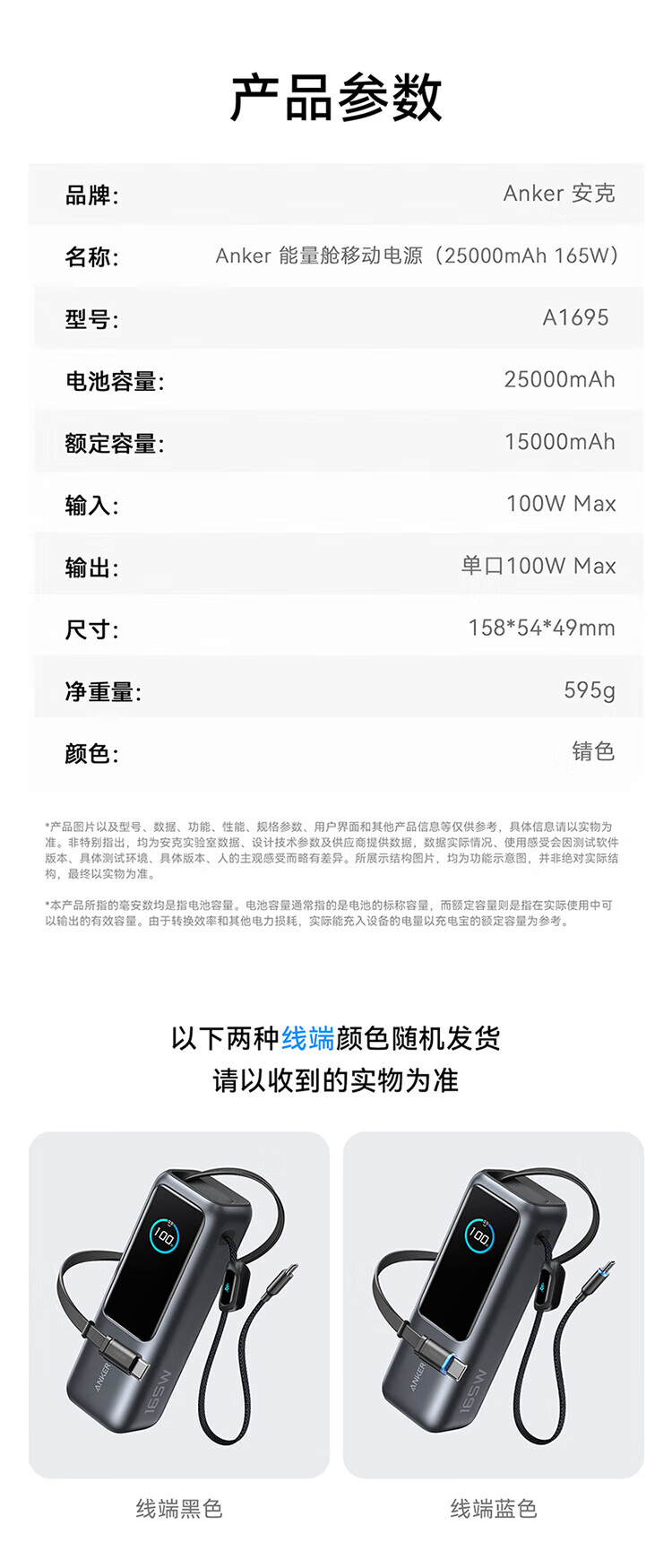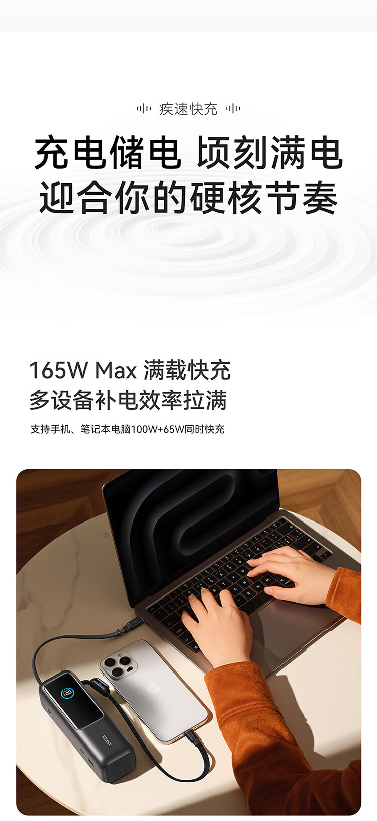 ANKER安克能量舱【新3C认证可上飞机】移动电源25000毫安自带双线伸缩线100W大功率快充 【充电宝锖色】25000mAh|自带双线|智能屏显