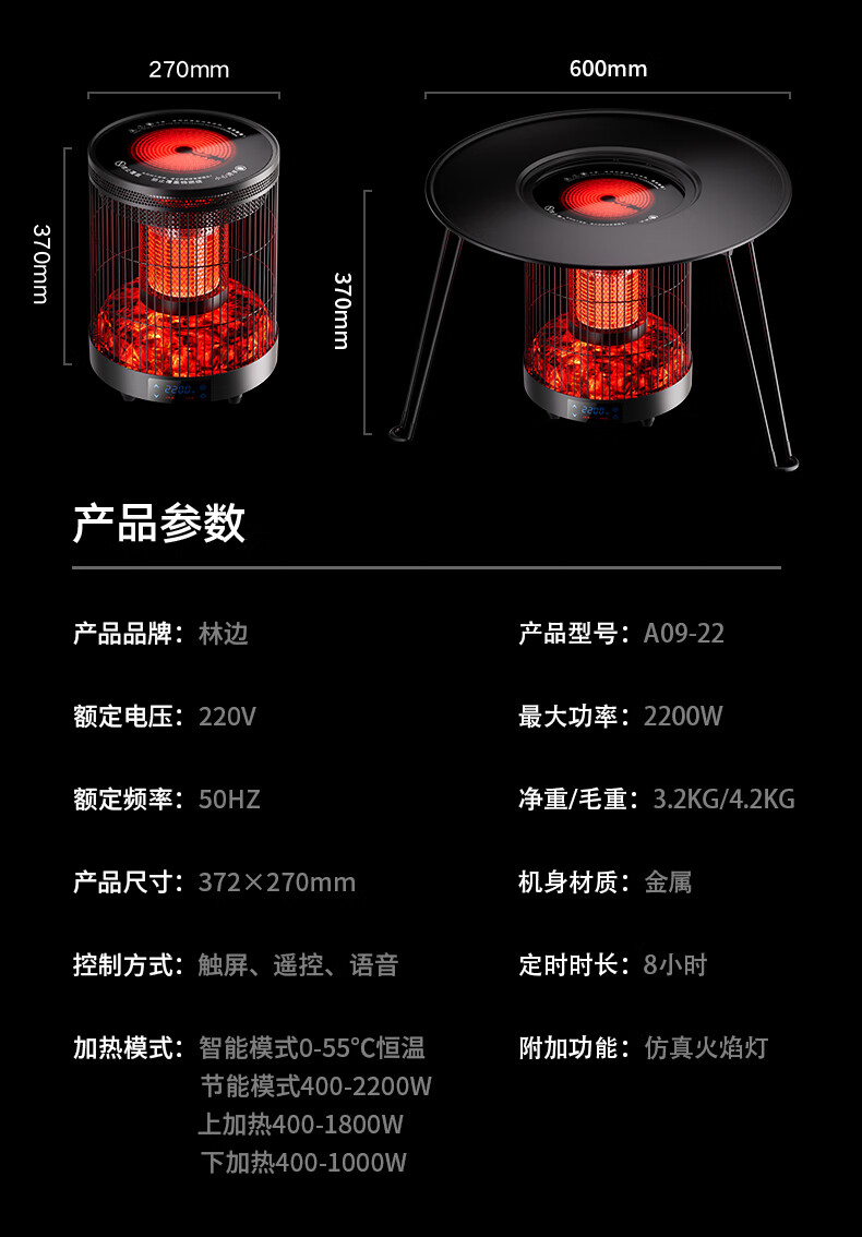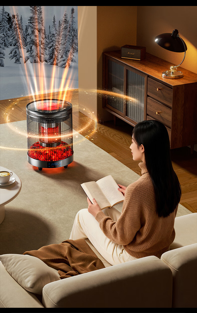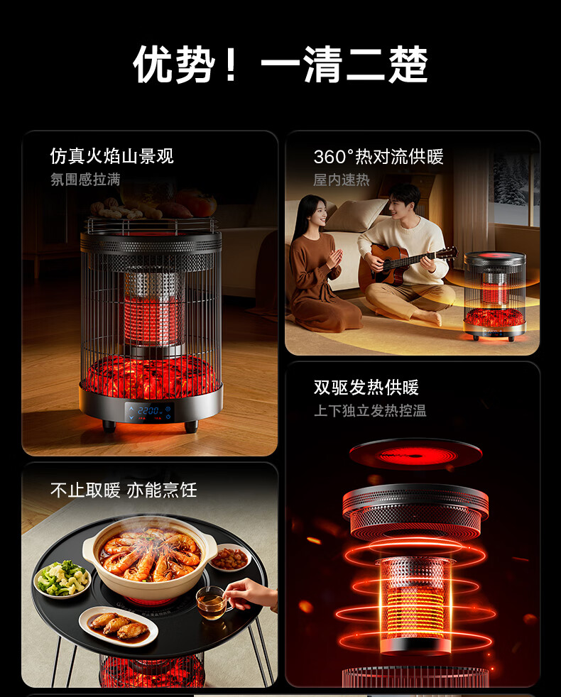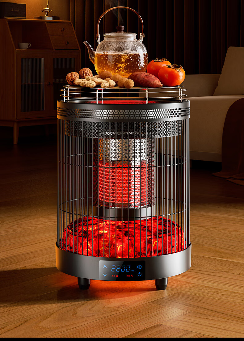 林边多功能取暖器家用围炉煮茶电暖器客厅智能恒温电暖炉上下发热取暖炉烤火炉子 云纱灰-3D假火取暖器【围炉煮茶/上下发热】