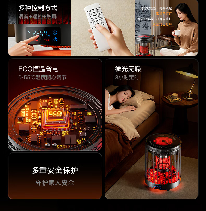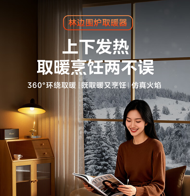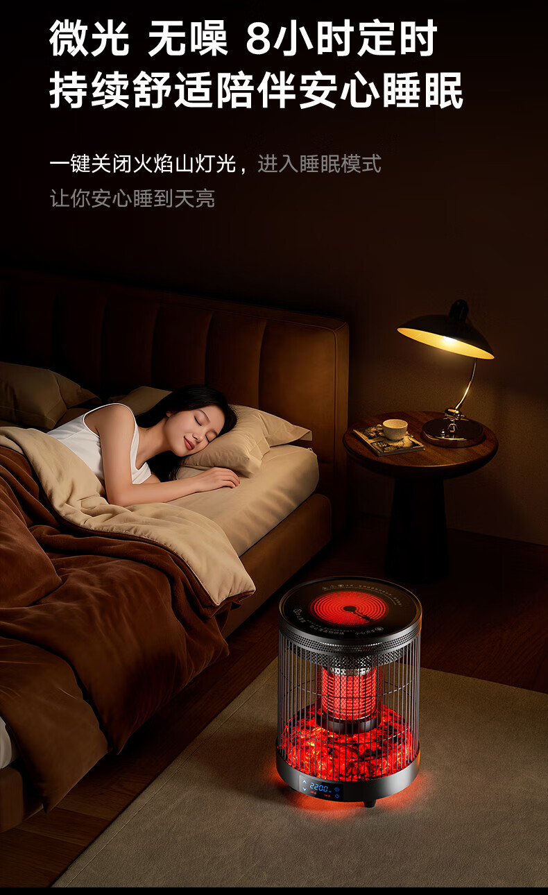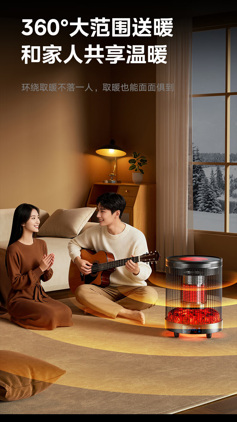 林边多功能取暖器家用围炉煮茶电暖器客厅智能恒温电暖炉上下发热取暖炉烤火炉子 云纱灰-3D假火取暖器【围炉煮茶/上下发热】