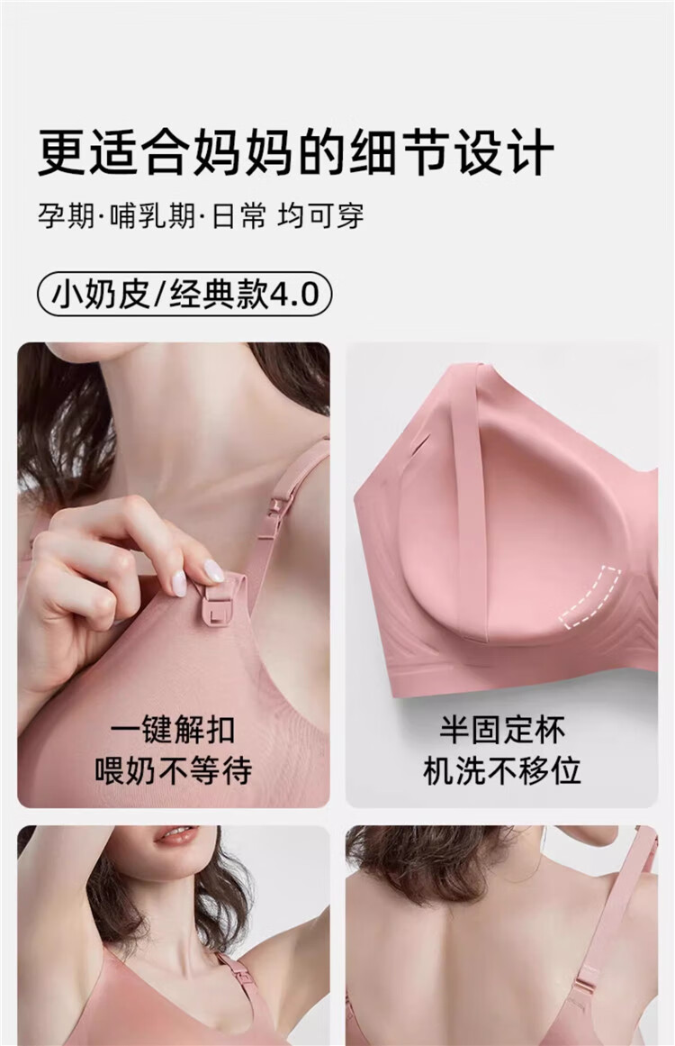 嫚熙(EMXEE)哺乳文胸春秋孕妇内衣喂奶前开扣聚拢有型怀孕期胸罩开扣聚拢有型 兰烟花【小奶皮款 柔软舒适】 L