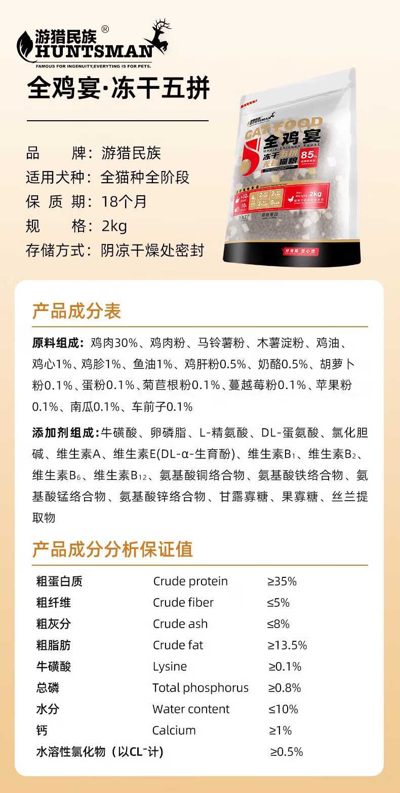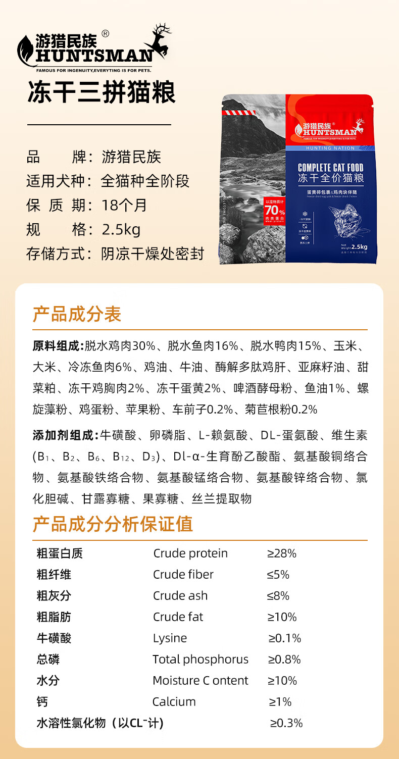 游猎民族猫粮全价营养配方布偶幼猫猫粮蓝猫成猫英短美短流浪猫深海鱼猫粮 冻干粮5斤