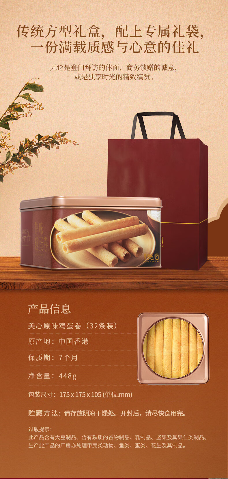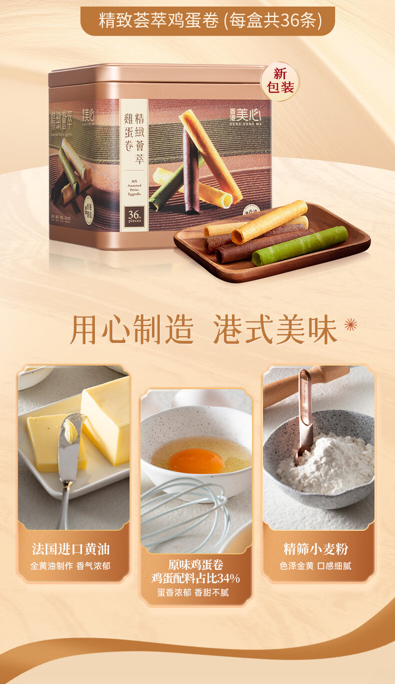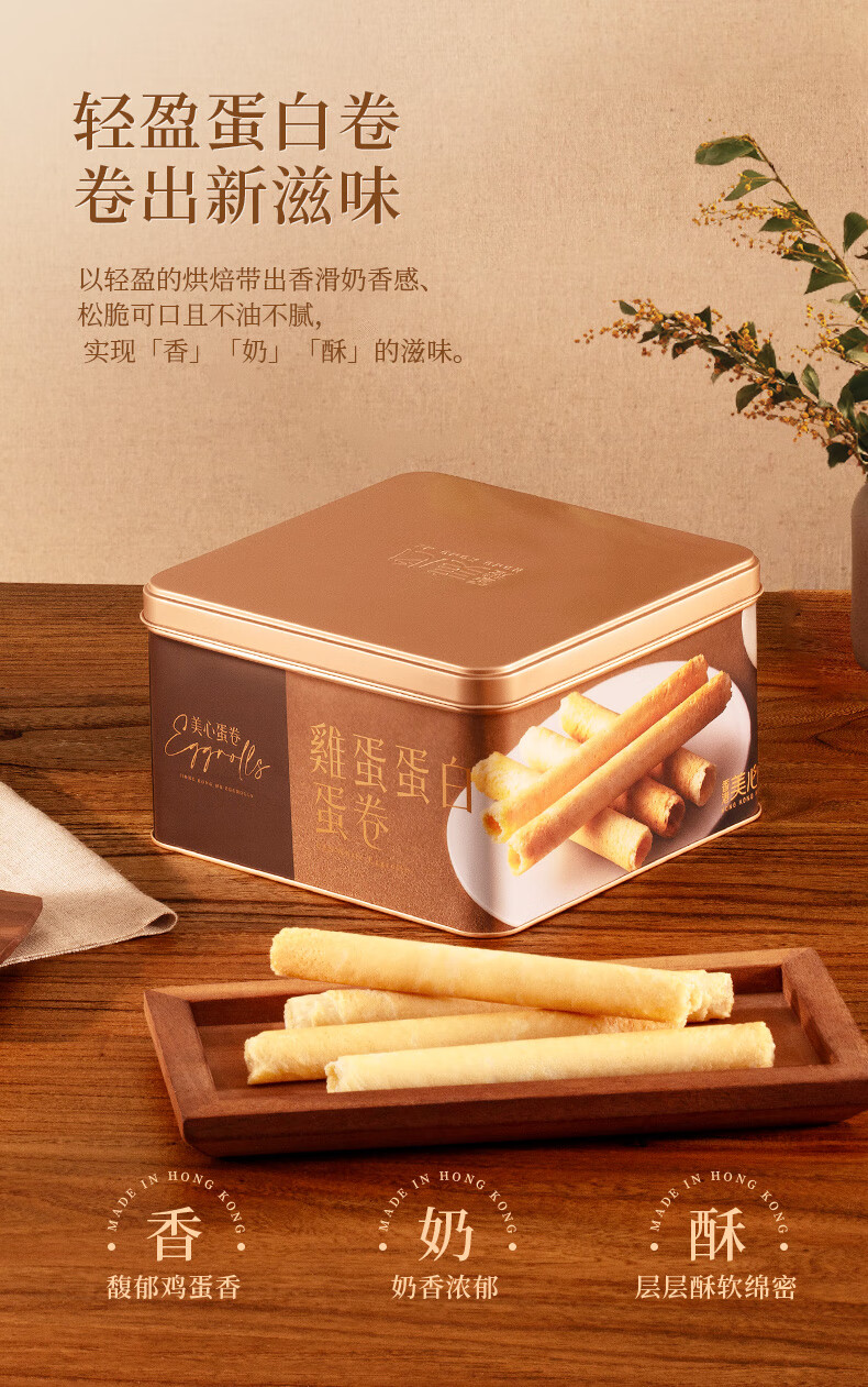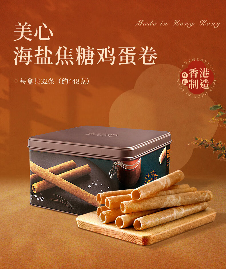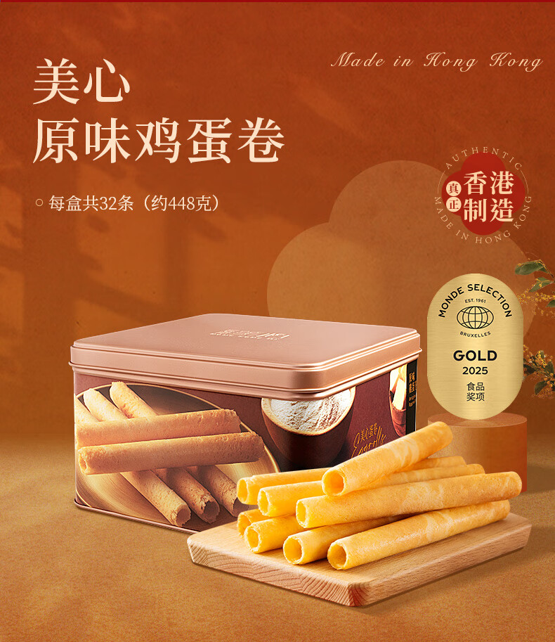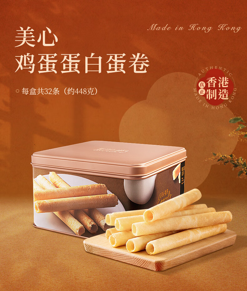 美心鸡蛋卷王礼盒香港特产零食黄油蛋卷饼干办公室休闲解馋零团购送礼 【经典口味】原味鸡蛋卷448g