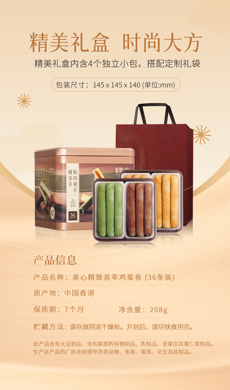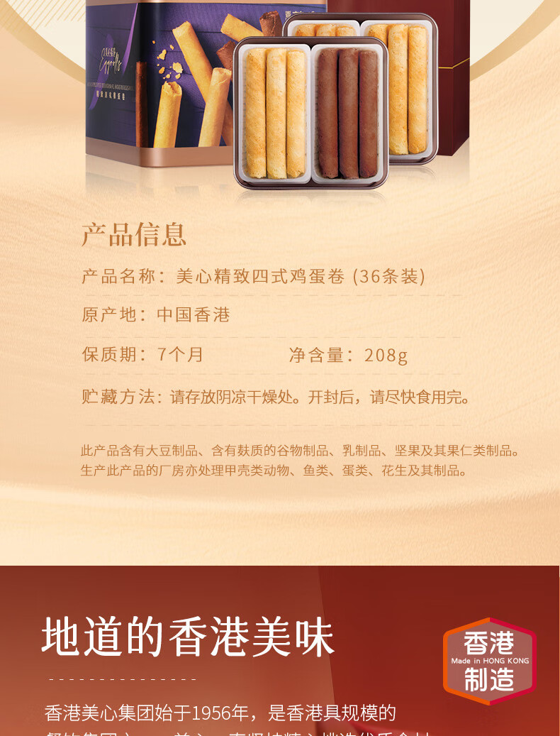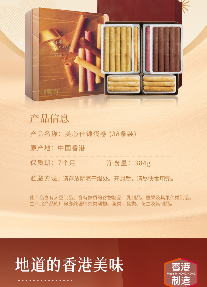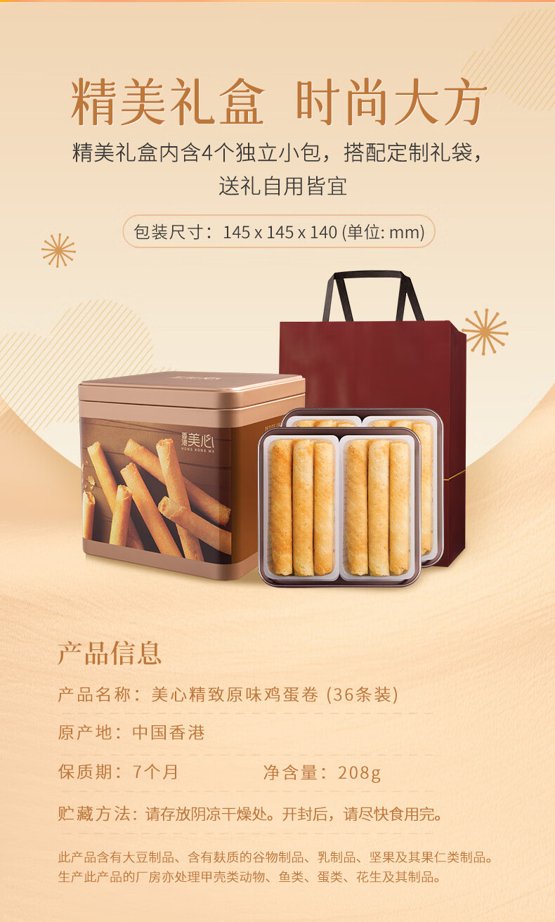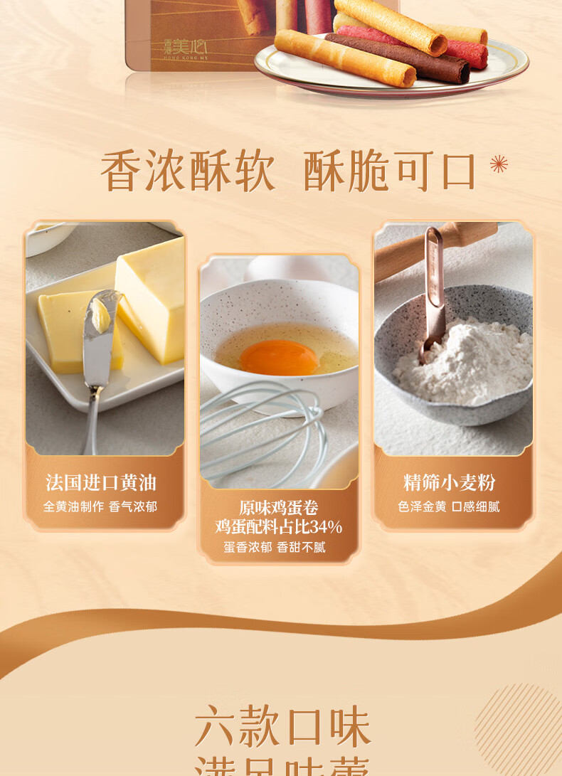 美心鸡蛋卷王礼盒香港特产零食黄油蛋卷饼干办公室休闲解馋零团购送礼 【经典口味】原味鸡蛋卷448g