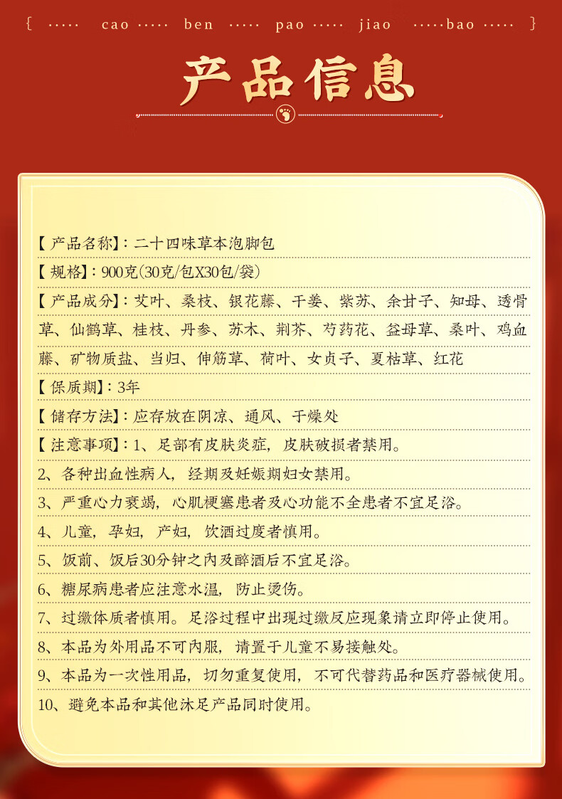 少艾堂足浴包泡脚粉包草本足浴红花泡脚包足浴包足浴粉瑶浴脚气泡脚粉 足浴包30袋*-3包