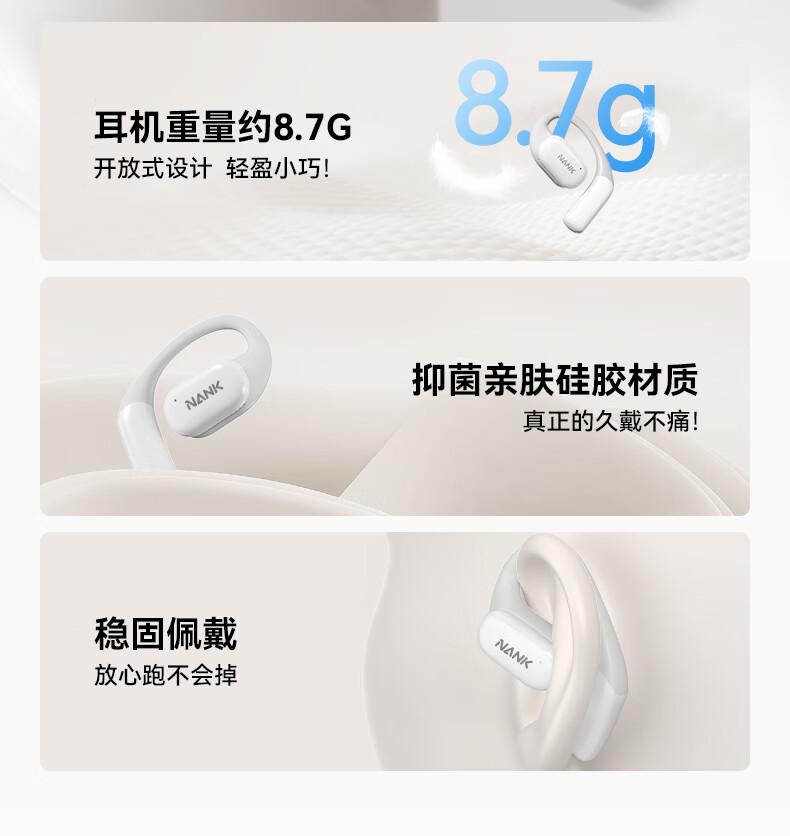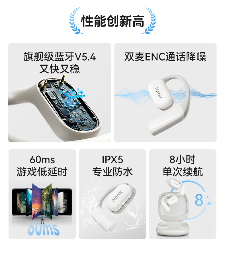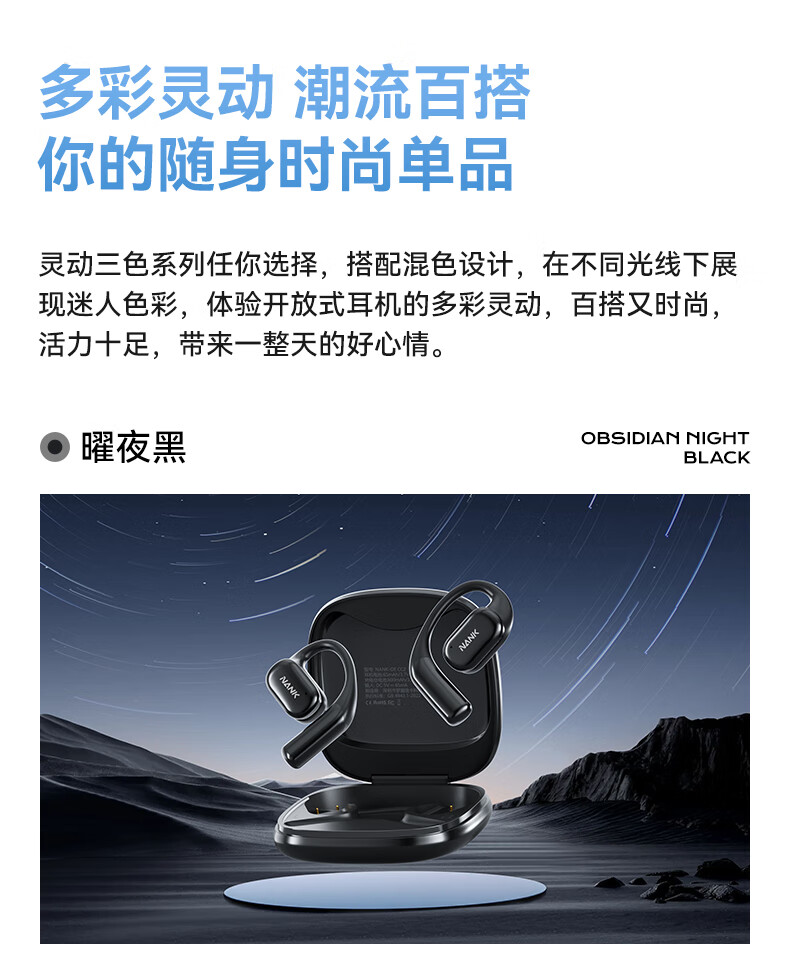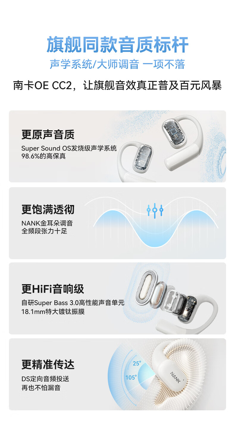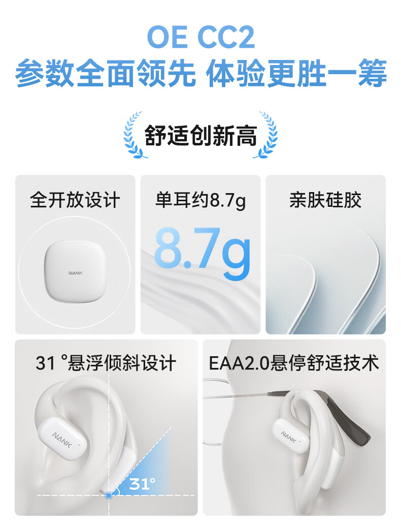 南卡(NANK)OE CC2 开放式挂耳蓝牙耳机不入耳气传导无线跑步运动骑行超长续航防水防汗通话降噪 【全新升级2代】穹顶蓝|全景音