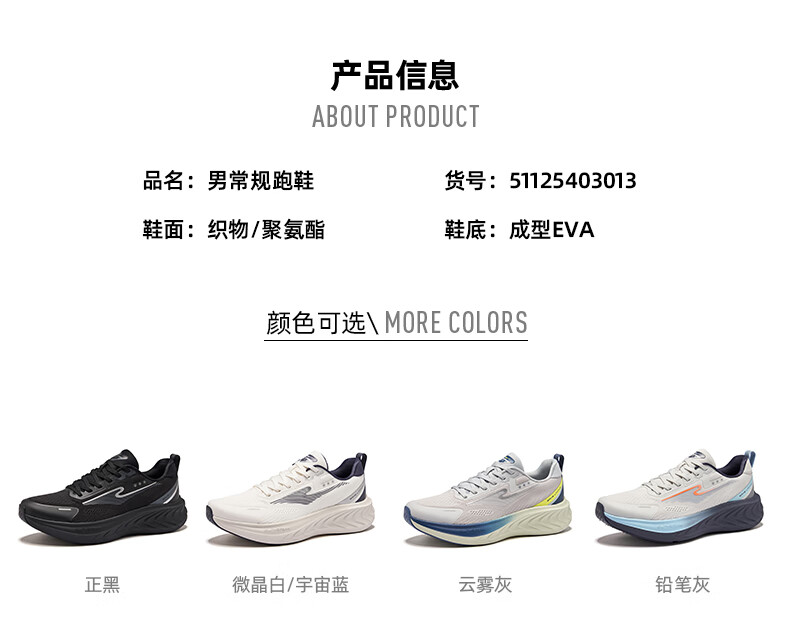 鸿星尔克运动鞋秋冬新款跑鞋男鞋软弹减震揽云防滑耐磨跑步鞋 51125403013