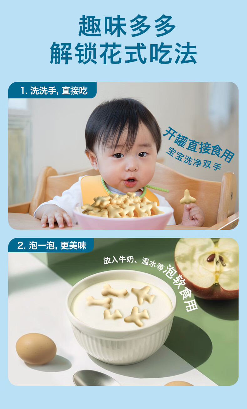 禾泱泱宝宝零食组合 造型饼干小馒头棒饼 儿童零食磨 牙 方便携带 2阶婴标高钙牛乳饼干飞机造型90g