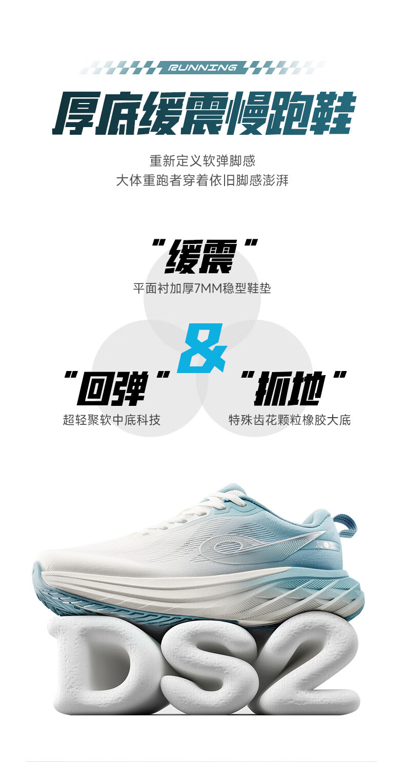 乔丹DS2冬季密网防风舒适回弹减震厚底防滑耐磨跑步鞋青少年运动鞋男 淡灰/雾蓝色 44.5