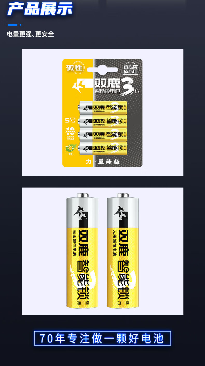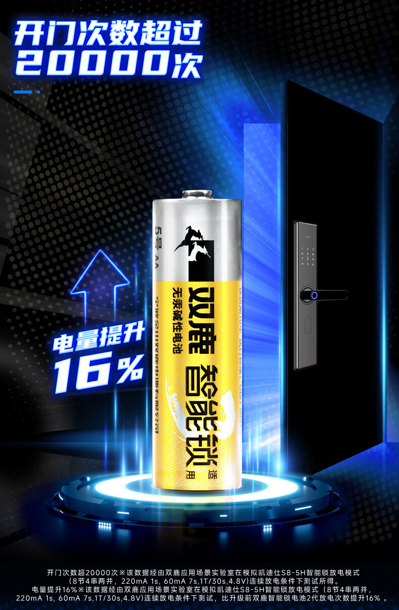 双鹿智能锁电池4粒卡装 碱性5号适用指纹锁/电子门锁小米TCL德施曼PHILIPS鹿客VOC凯迪仕LR6/AA
