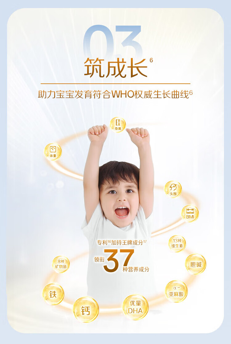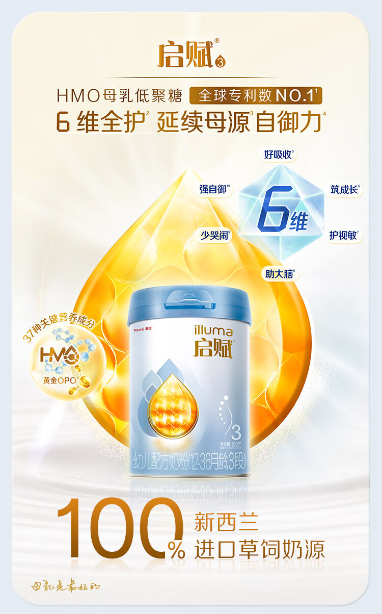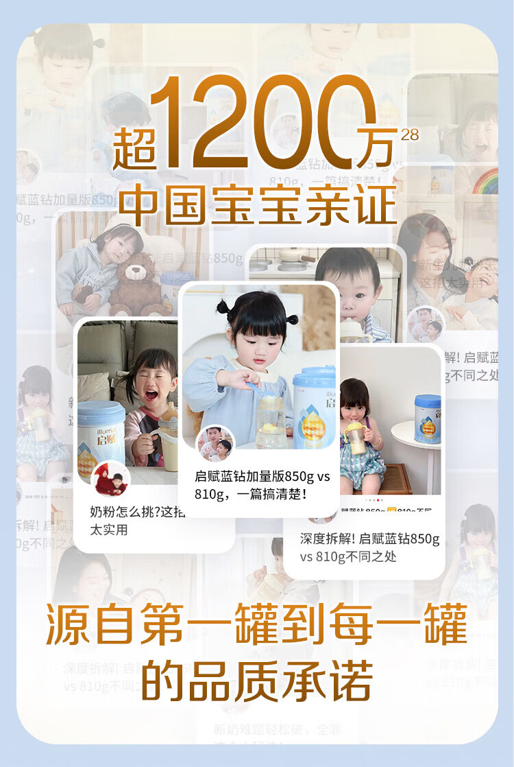 惠氏(Wyeth)启赋【授权】HMO亲和人体婴幼儿配方奶粉(12-36月适用)蓝钻3段 850g* 6罐 (国产增量装)