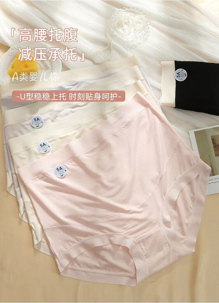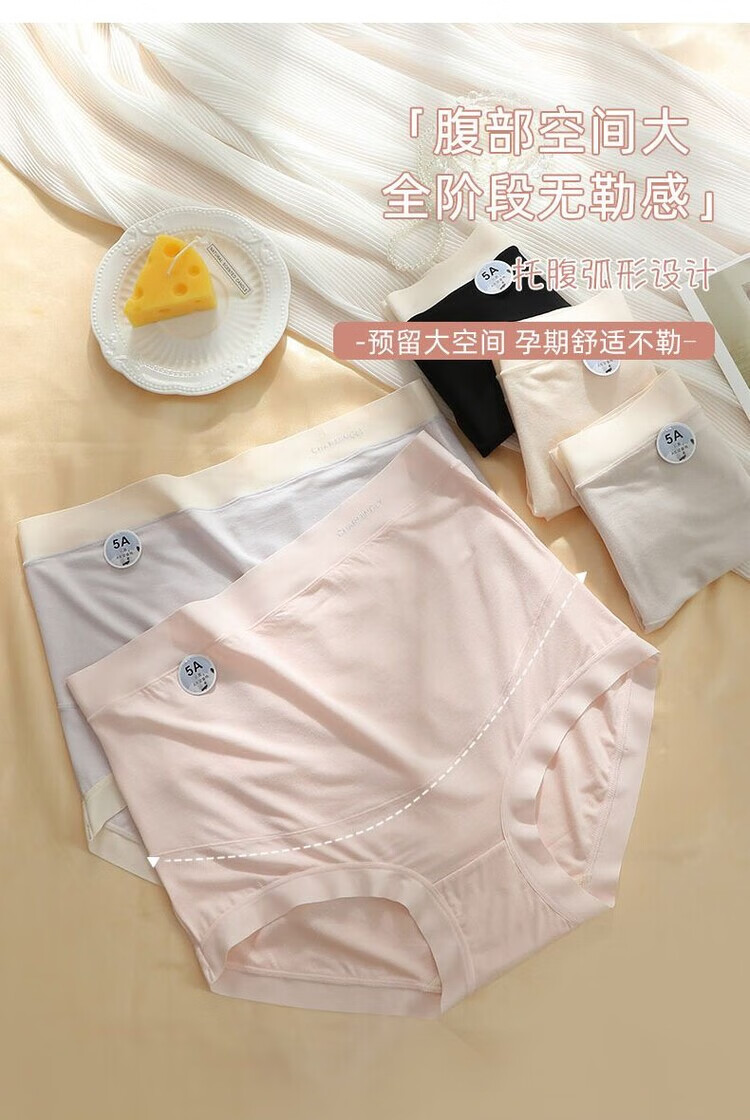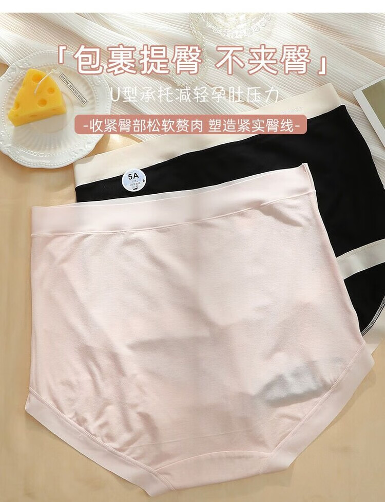 AILUKI莫代尔60支大码孕妇内裤高腰托腹孕期孕中期孕妇无痕内裤孕晚期裤 樱粉+淡紫+黑色 XL 建议-85-125斤