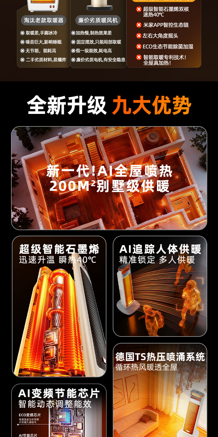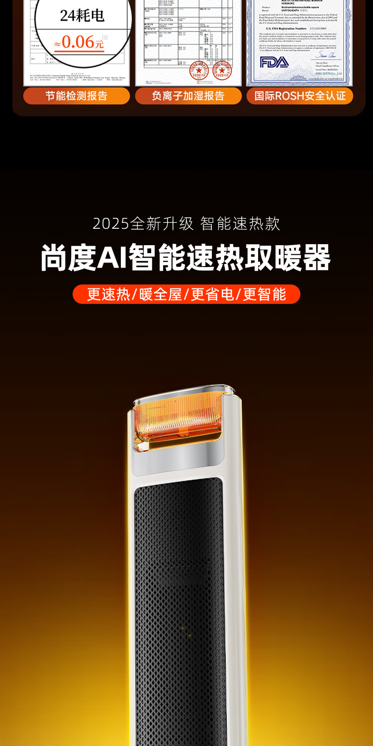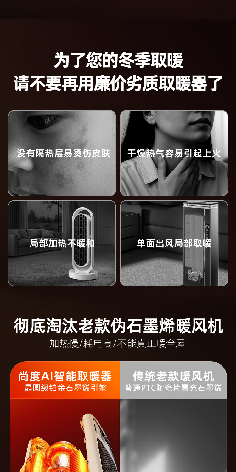 尚度【节能省电王·大面积全屋速热】电热取暖器暖风机石墨烯家用暖气浴室30平方小太阳2025新款静音 【AI语音】ECO节能丨超智能温控丨100平方速热