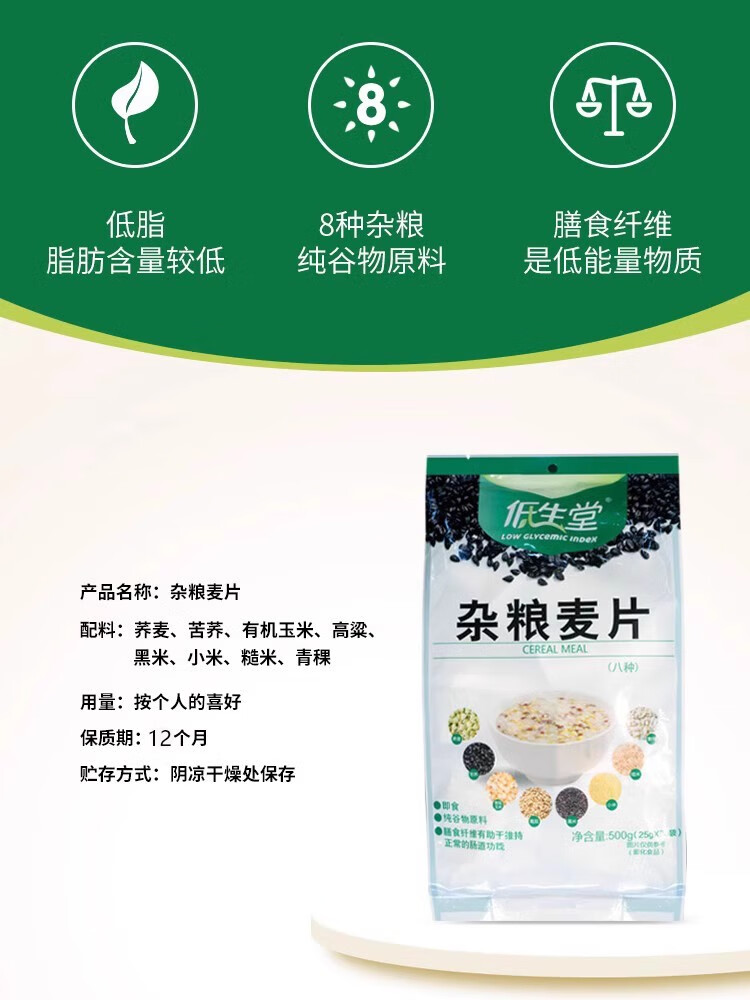 低生堂杂粮麦片500g*1袋 五谷杂粮 全谷物即食冲泡独立包装饱腹早餐代 杂粮3袋(再给1袋)=实发4袋四斤