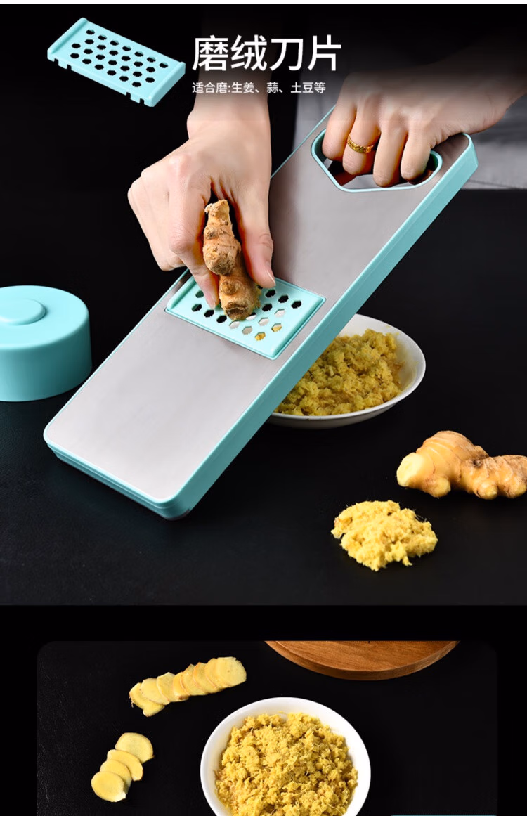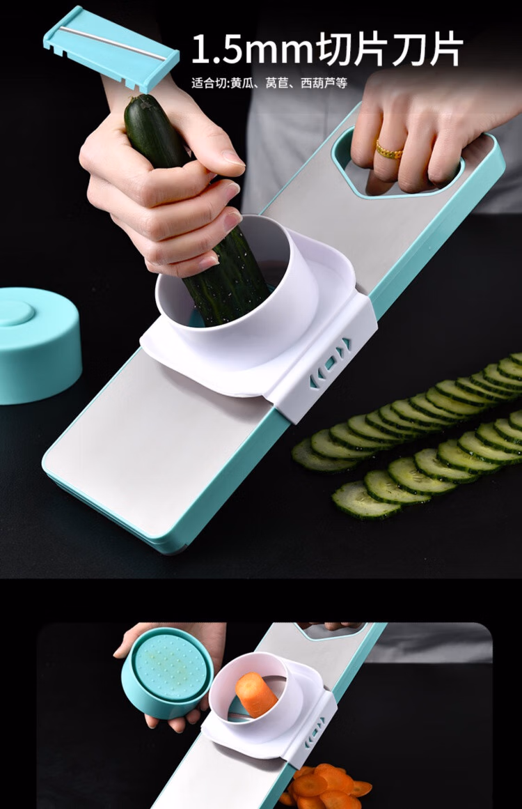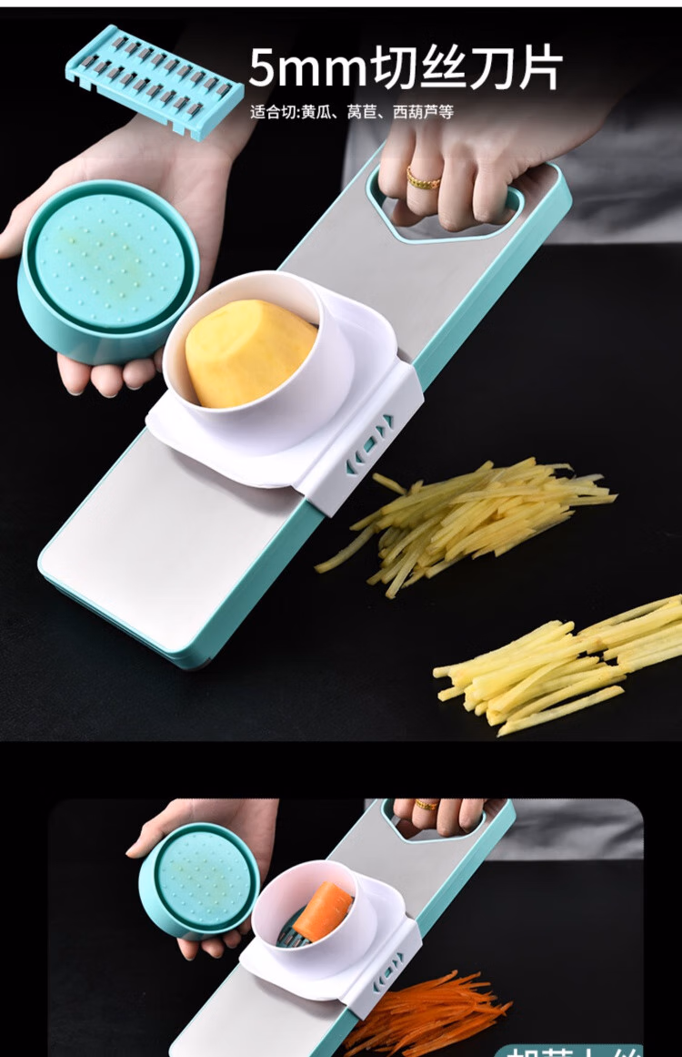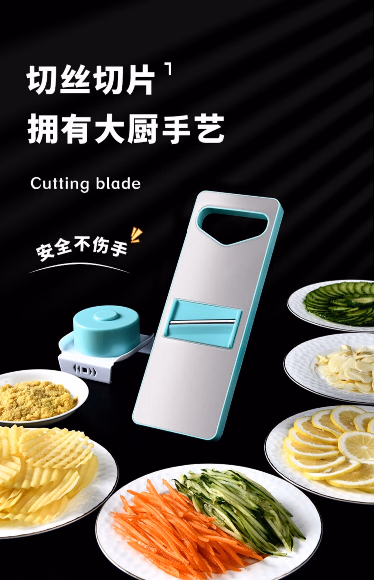 TYZAYR日本多功能切丝神器304不锈钢家用厨房切菜擦丝器不伤手胡萝卜刨 牛油果绿磁吸款-三刀(送护手器)