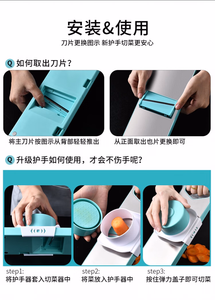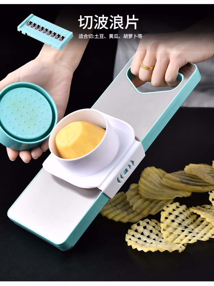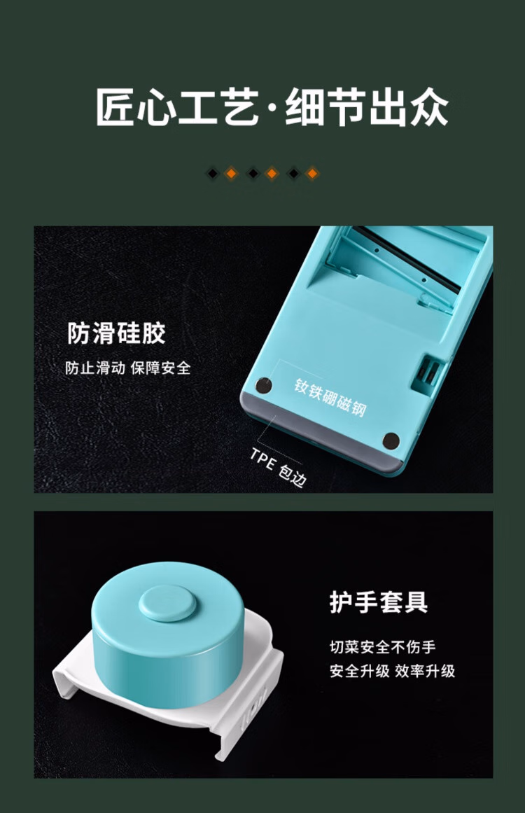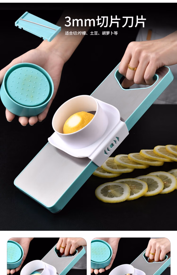 TYZAYR日本多功能切丝神器304不锈钢家用厨房切菜擦丝器不伤手胡萝卜刨 牛油果绿磁吸款-三刀(送护手器)