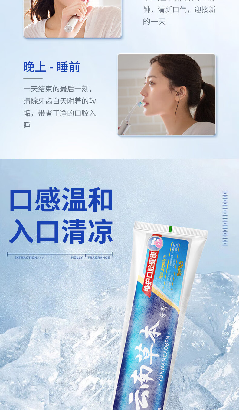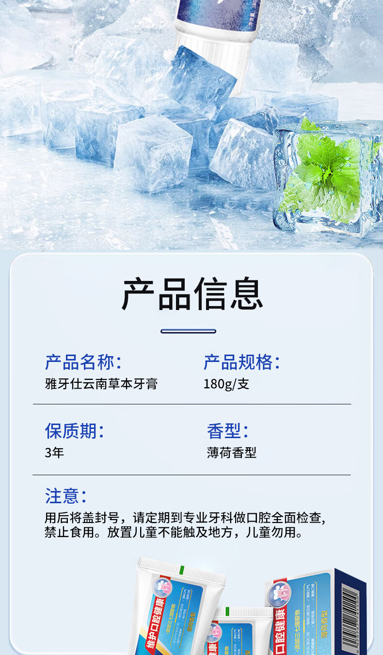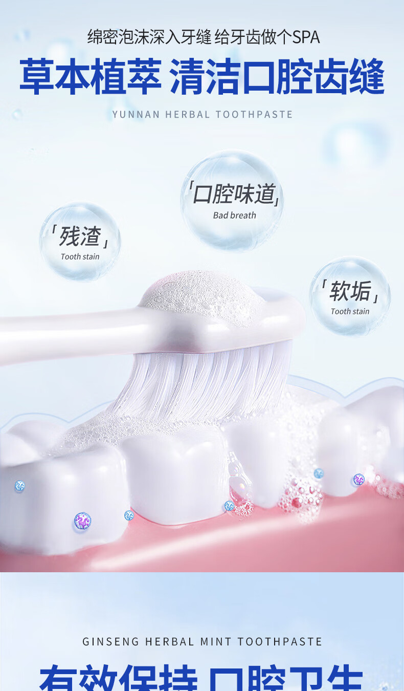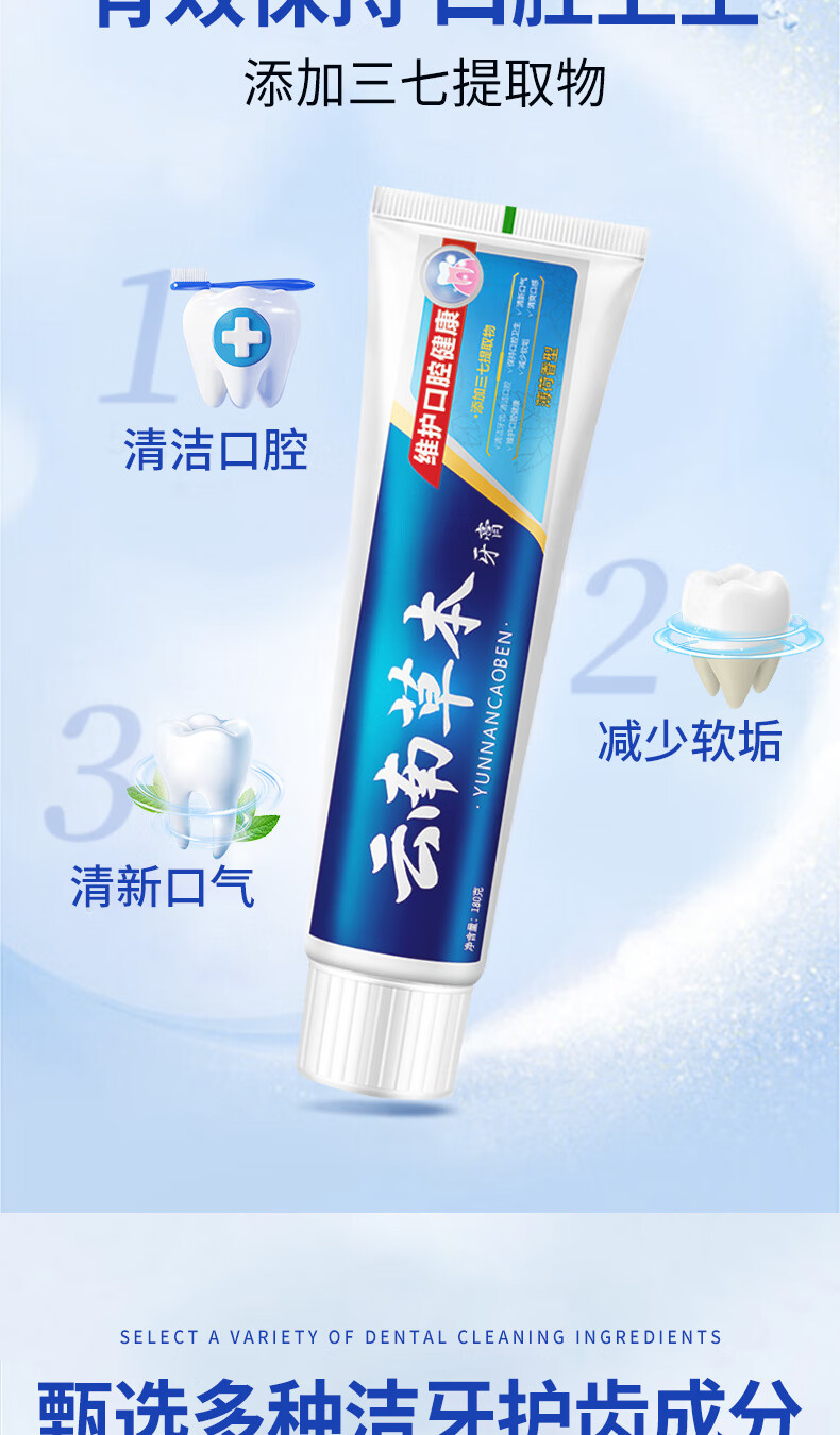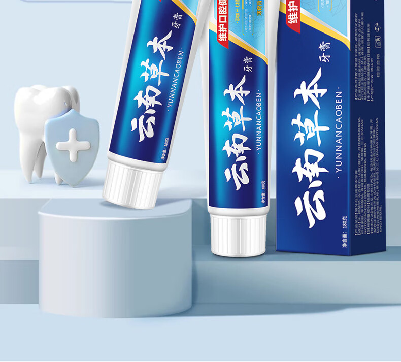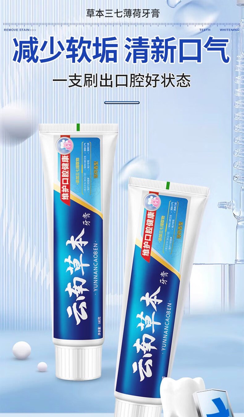 雅牙仕云南草本三七薄荷牙膏洁白牙齿清新口气减少软垢家庭装 云南草本三七牙膏 180g*2支