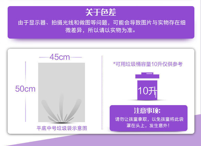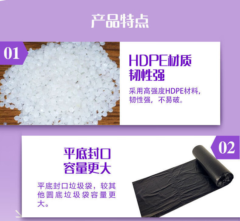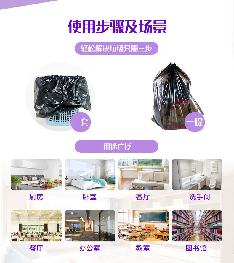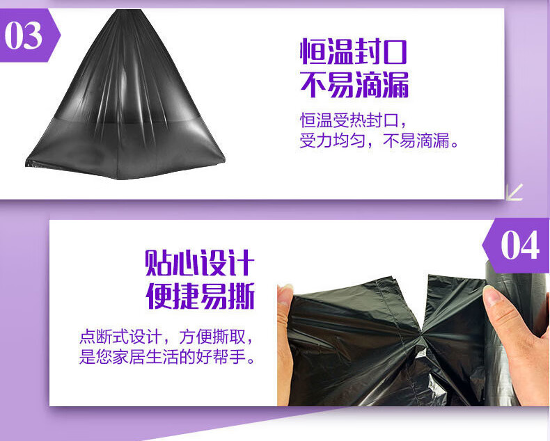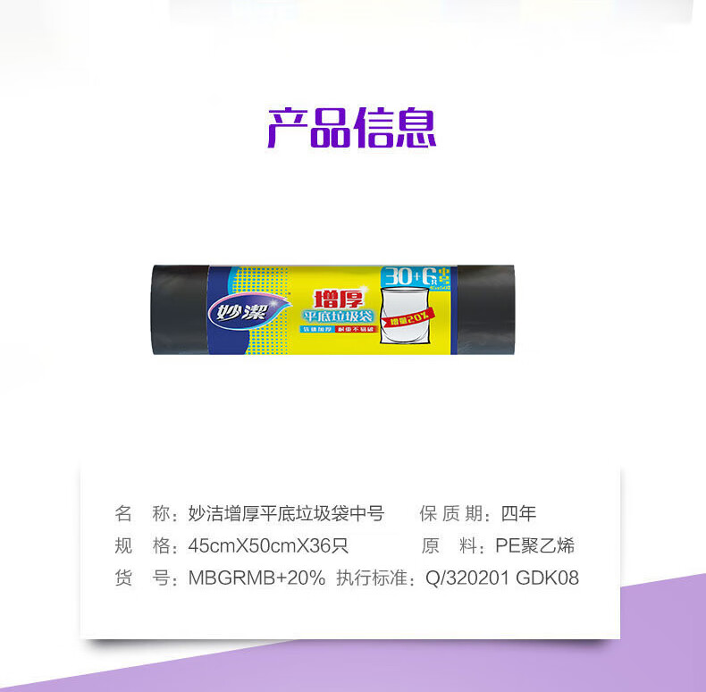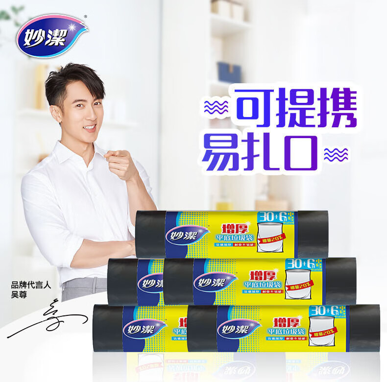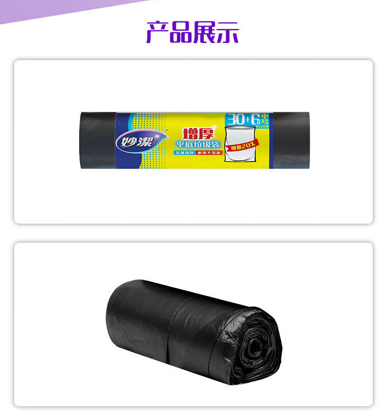 妙洁平口垃圾袋黑色45*50cm36只单面0.9丝点断式中号厨房用
