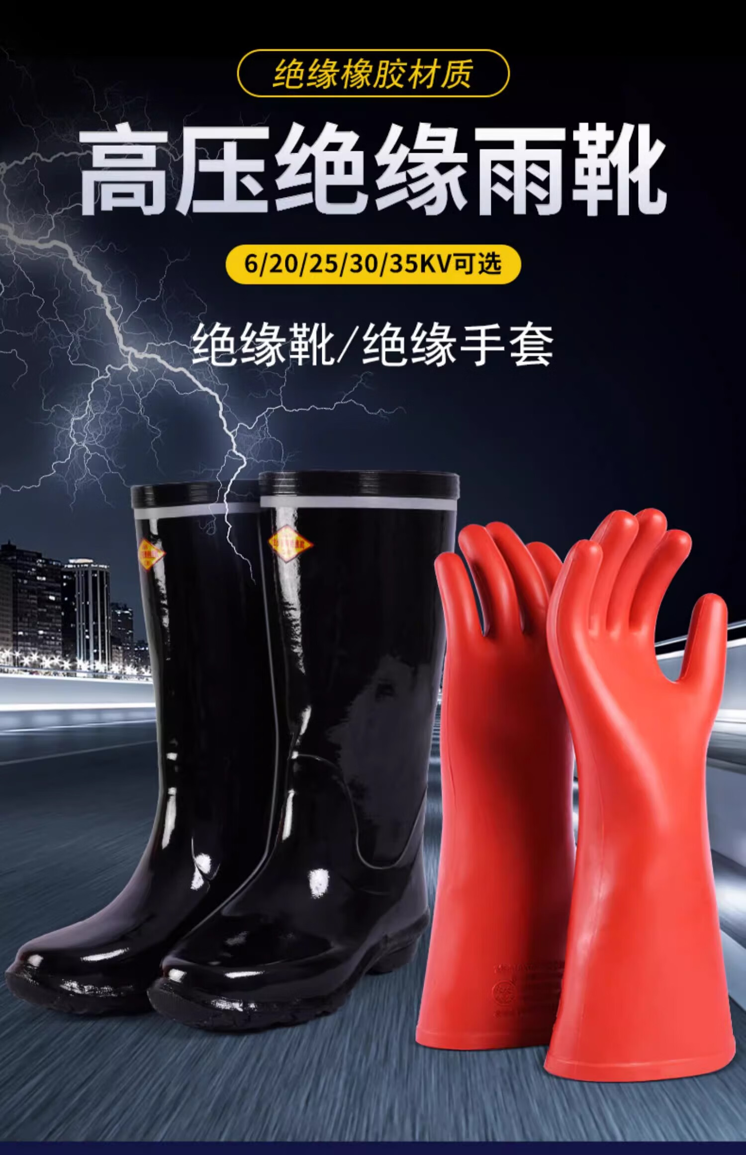 绝缘靴10KV20KV25KV30KV35KV国家电网供电局专用电工高压绝缘雨鞋 35kv绝缘靴+35kv绝缘手套【新日期,放心购】 43