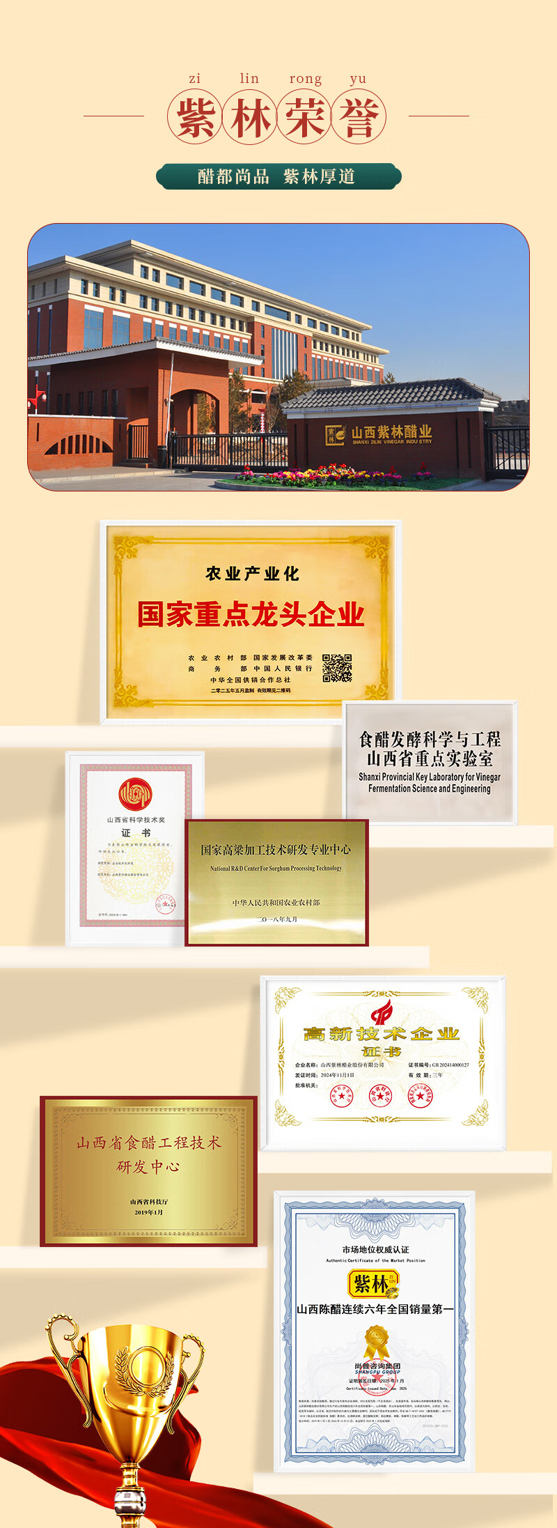 紫林 醋 9度 米醋 500ml 0添加防腐剂 纯粮酿造食醋 山西特产