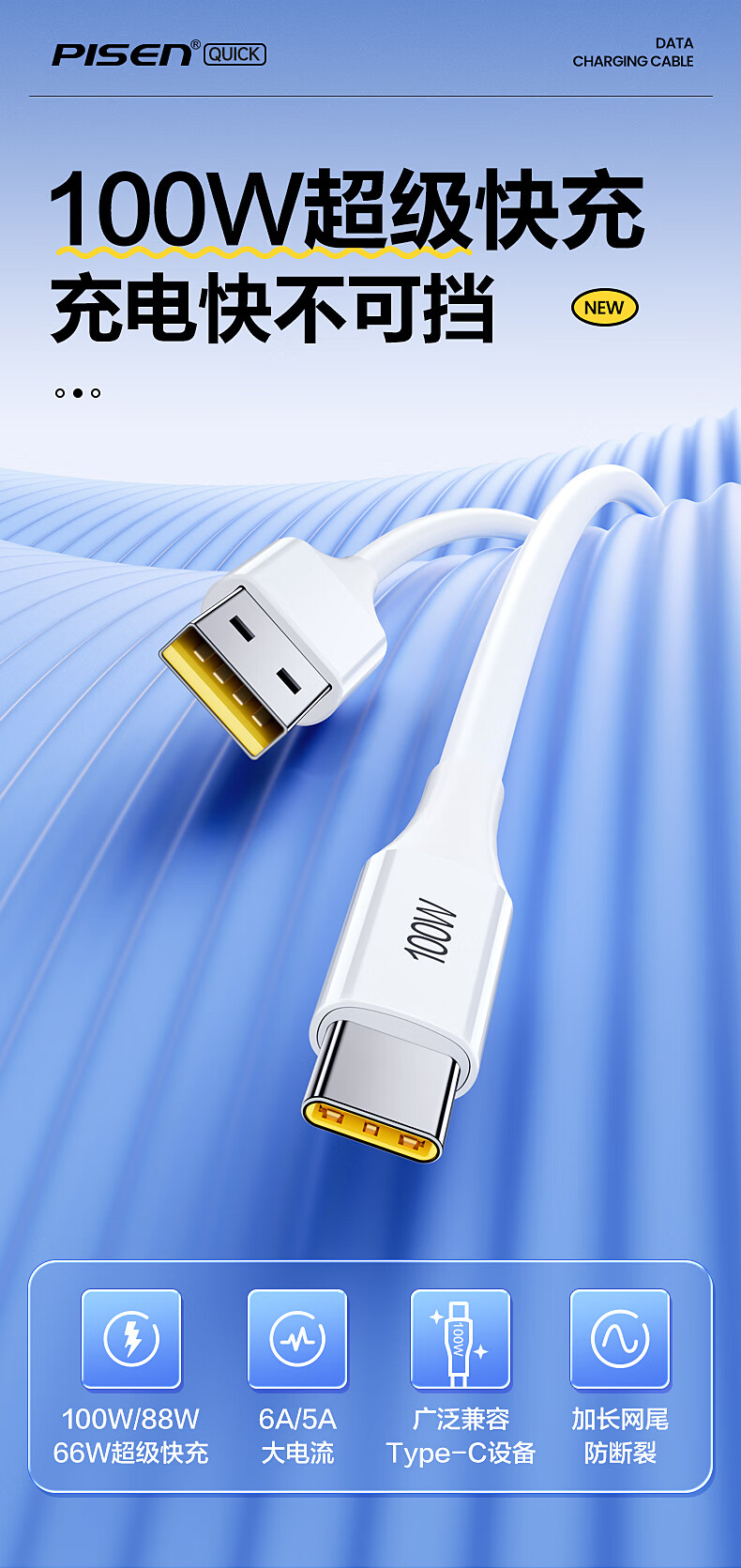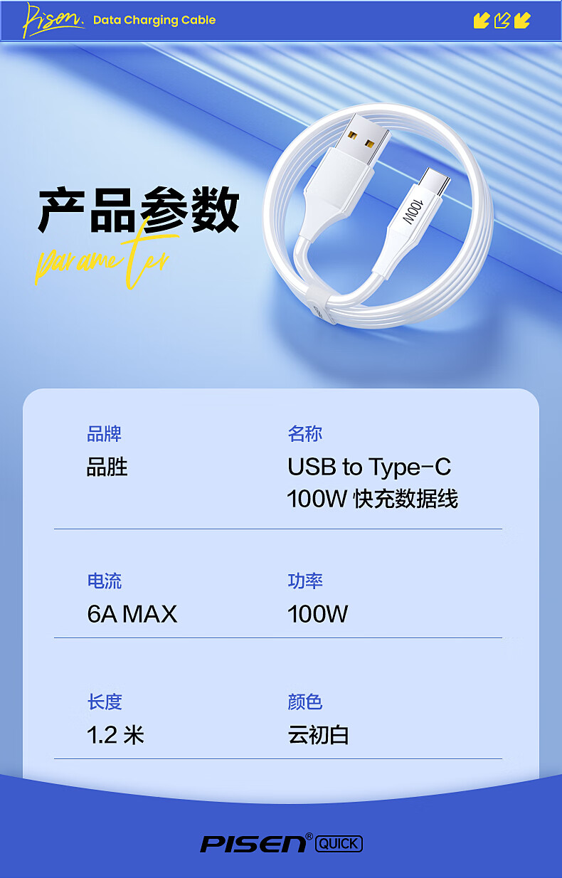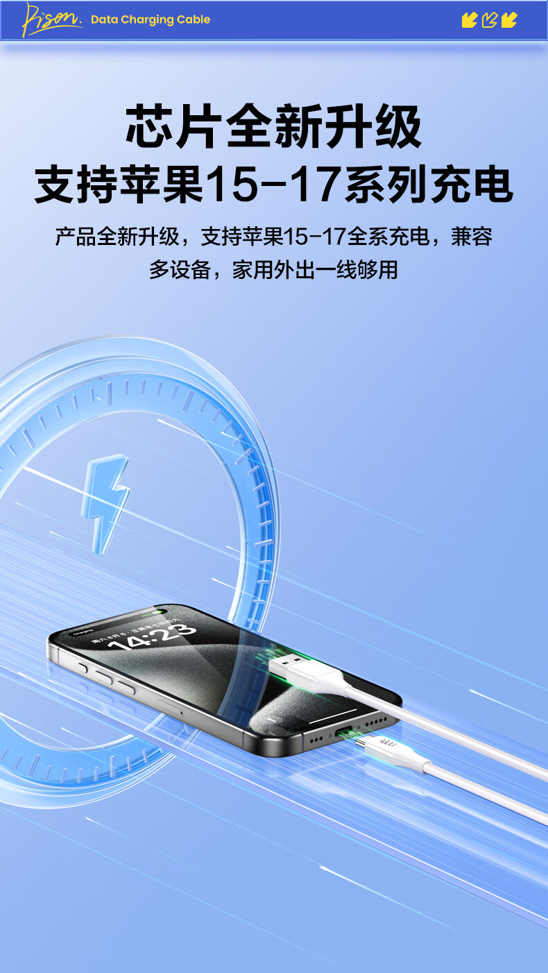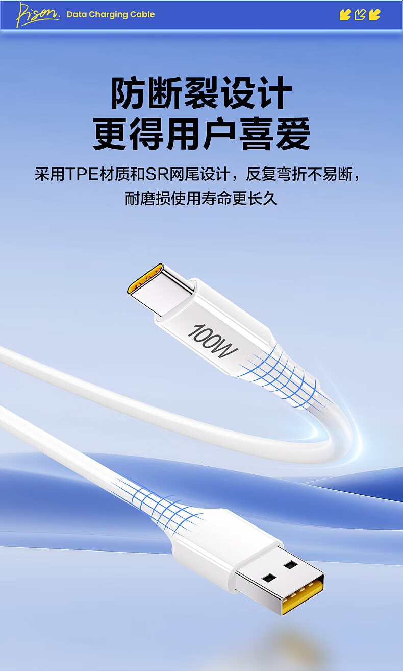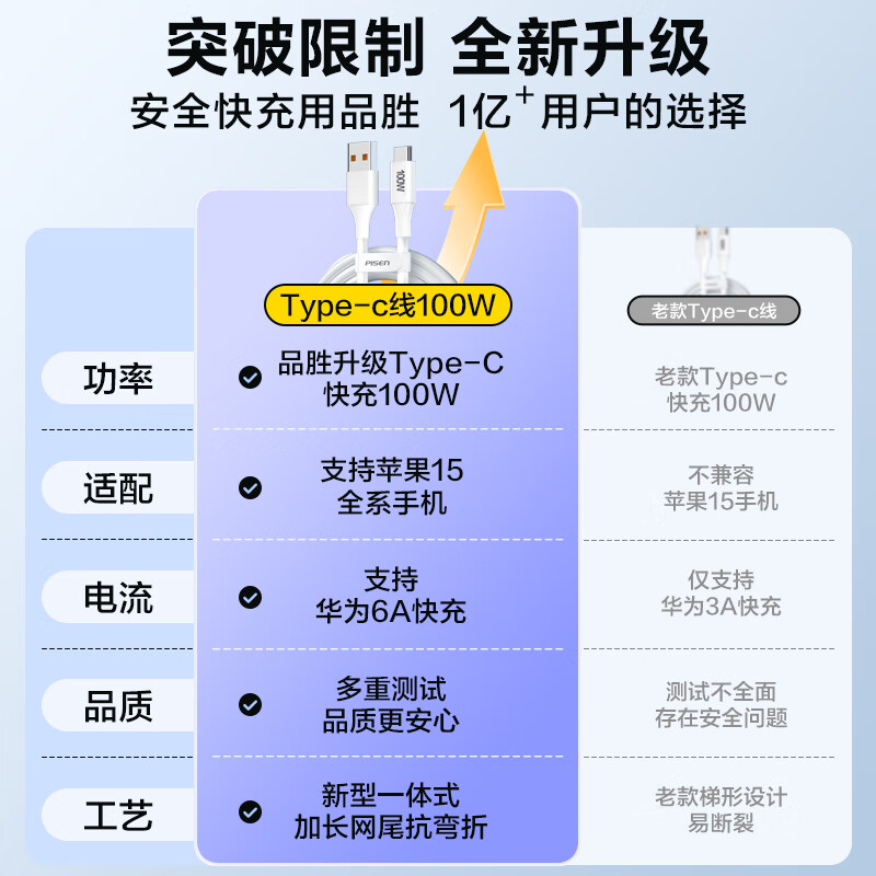 品胜苹果17/16充电线type-c数据线6a快充100W/66W车载5a适用华为Mate80/P70小米15手机平板AirPodsPro3