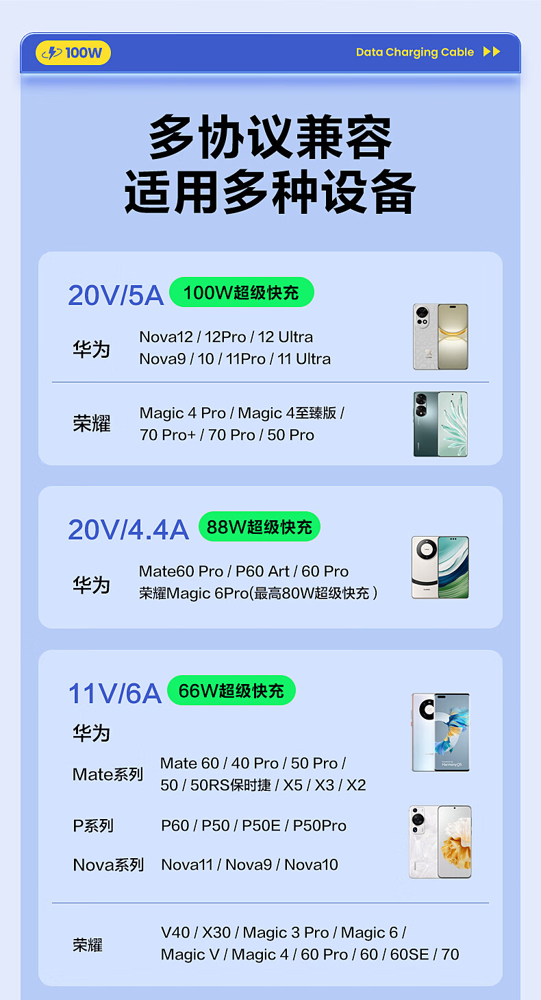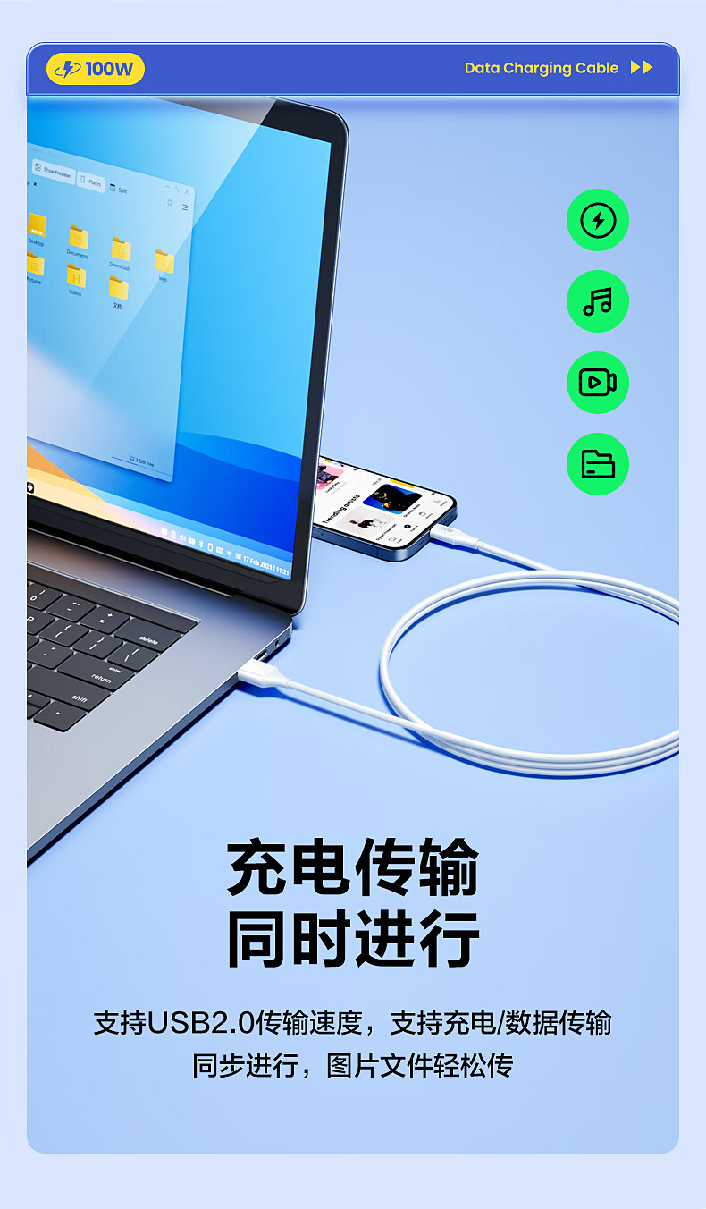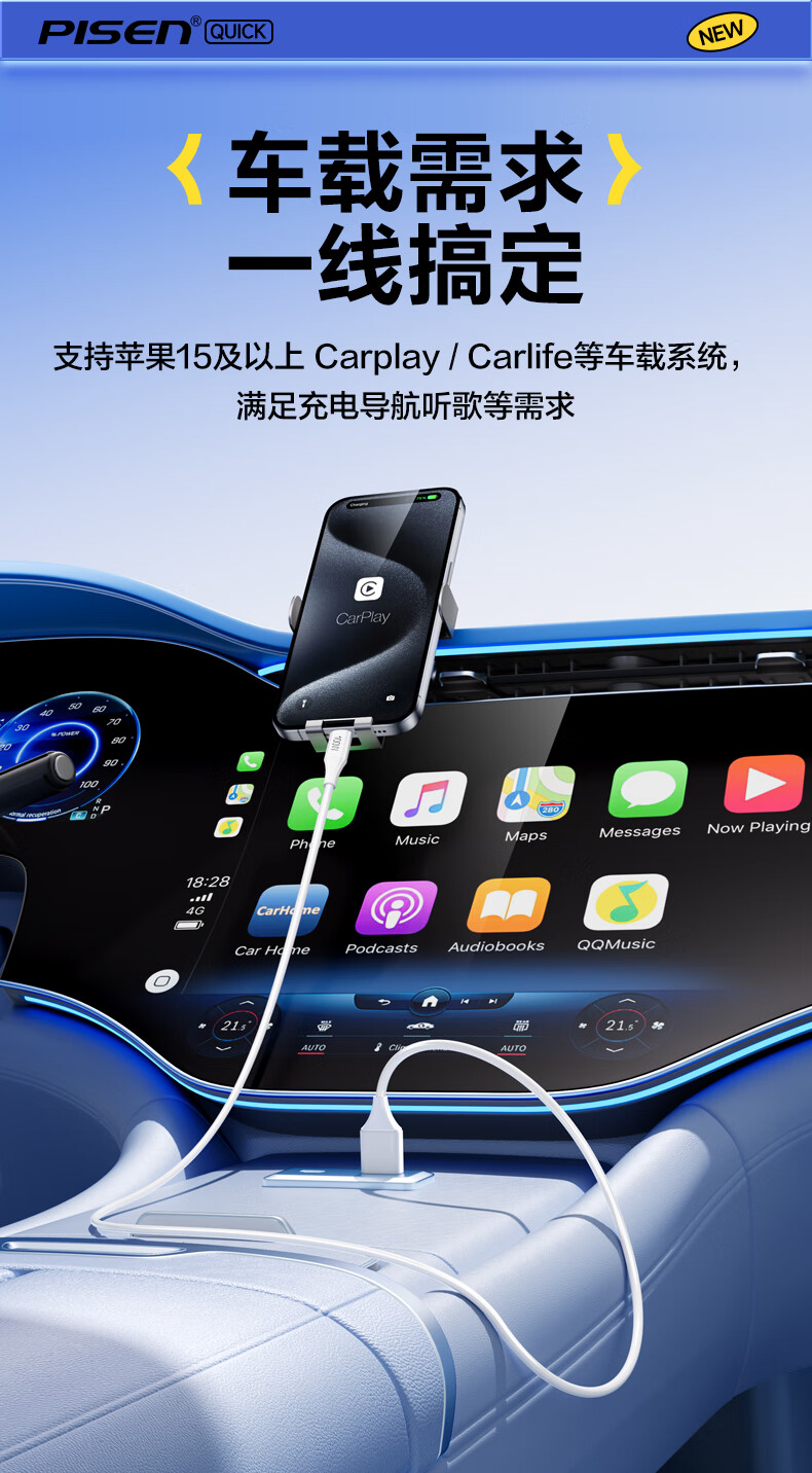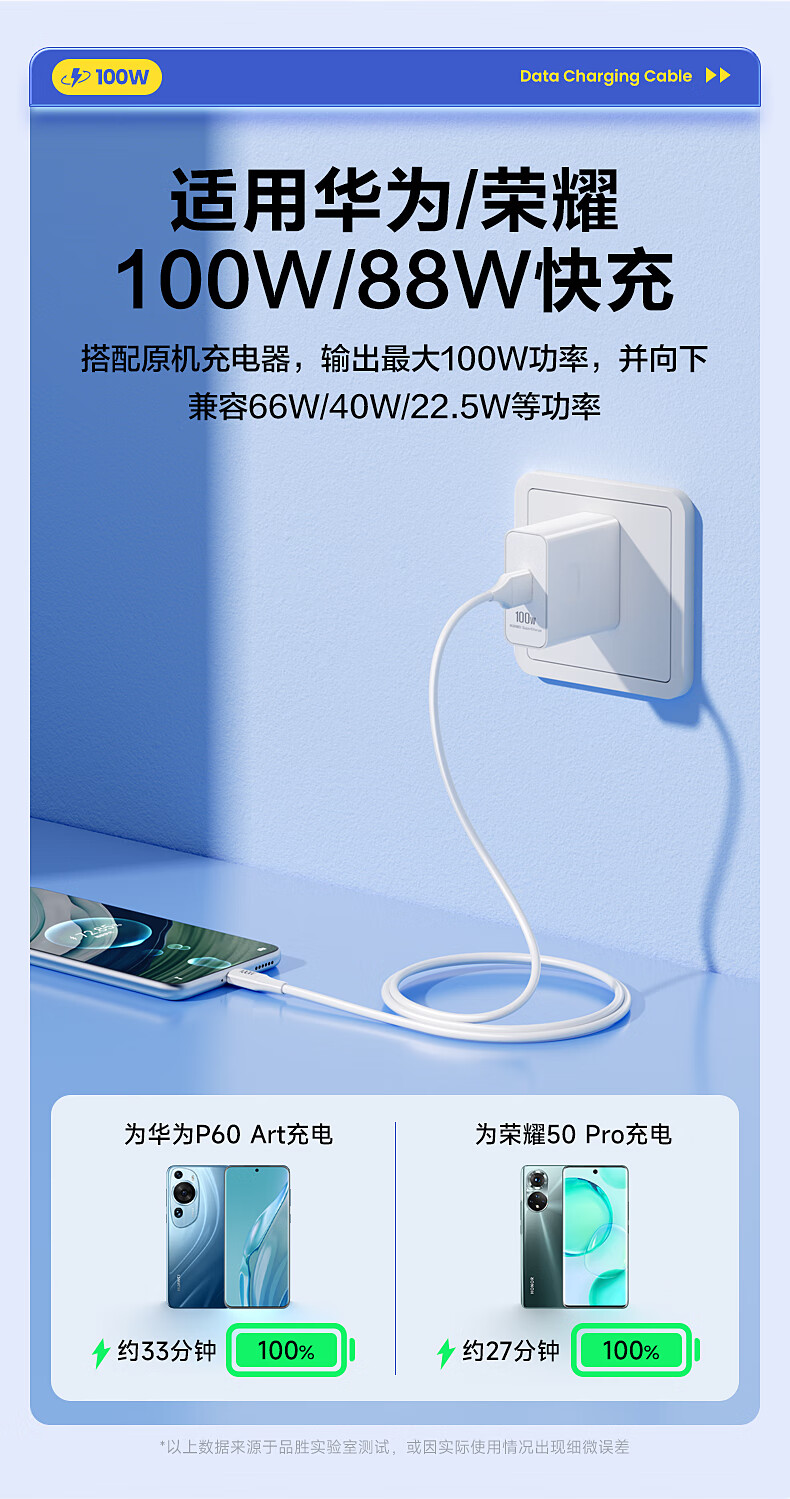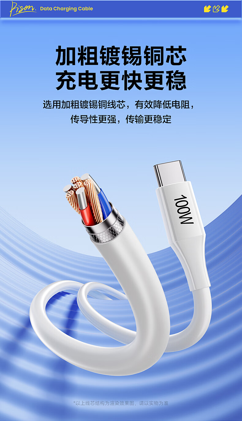 品胜苹果17/16充电线type-c数据线6a快充100W/66W车载5a适用华为Mate80/P70小米15手机平板AirPodsPro3