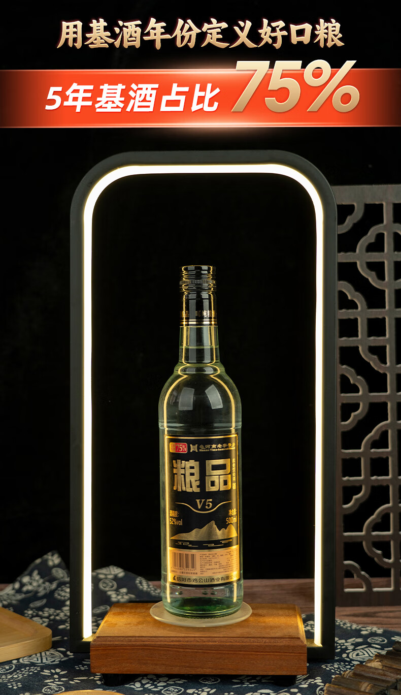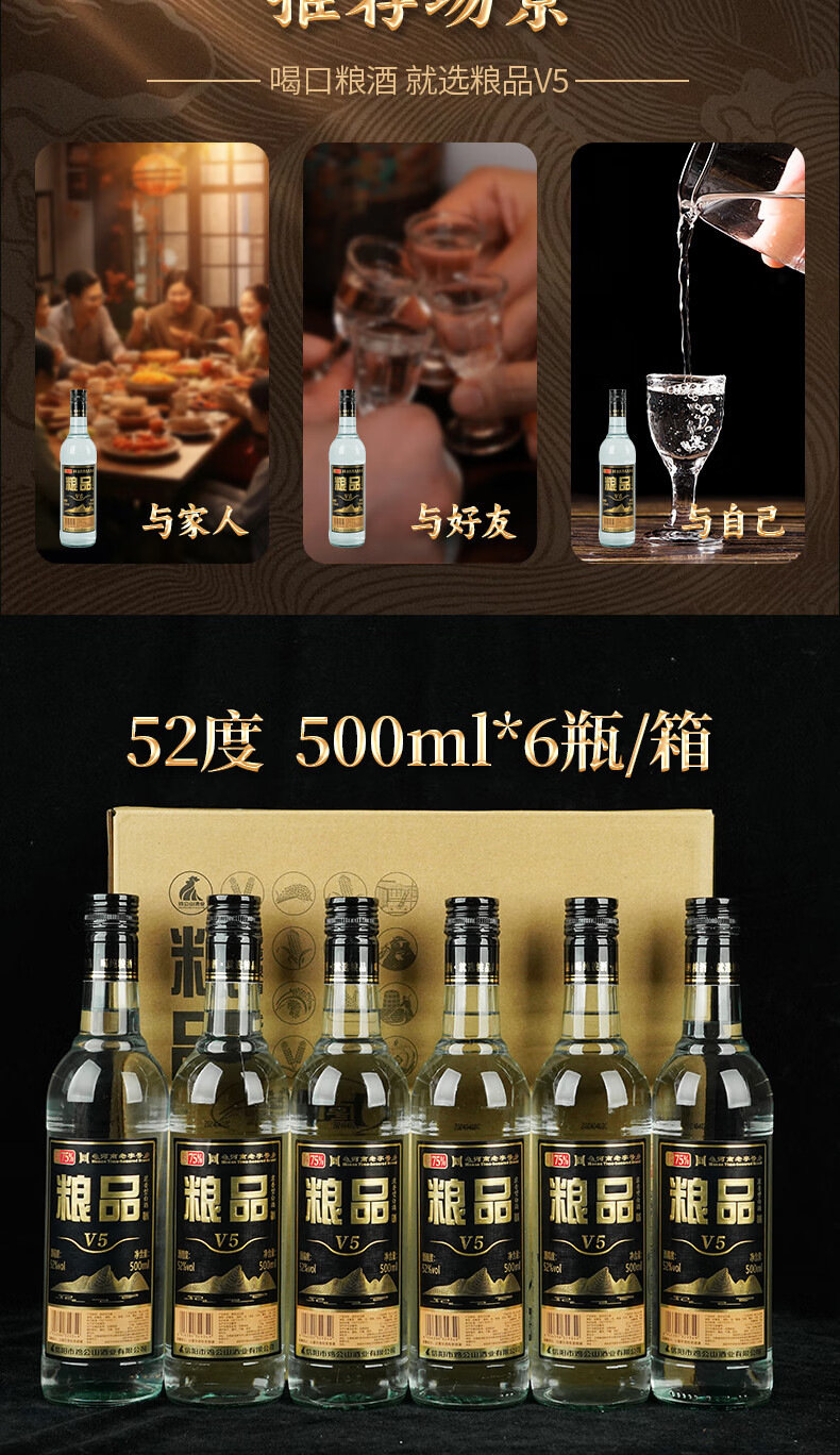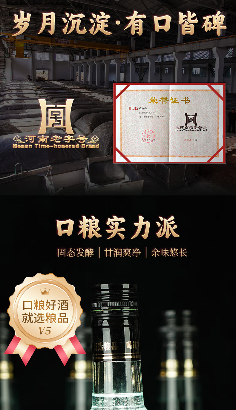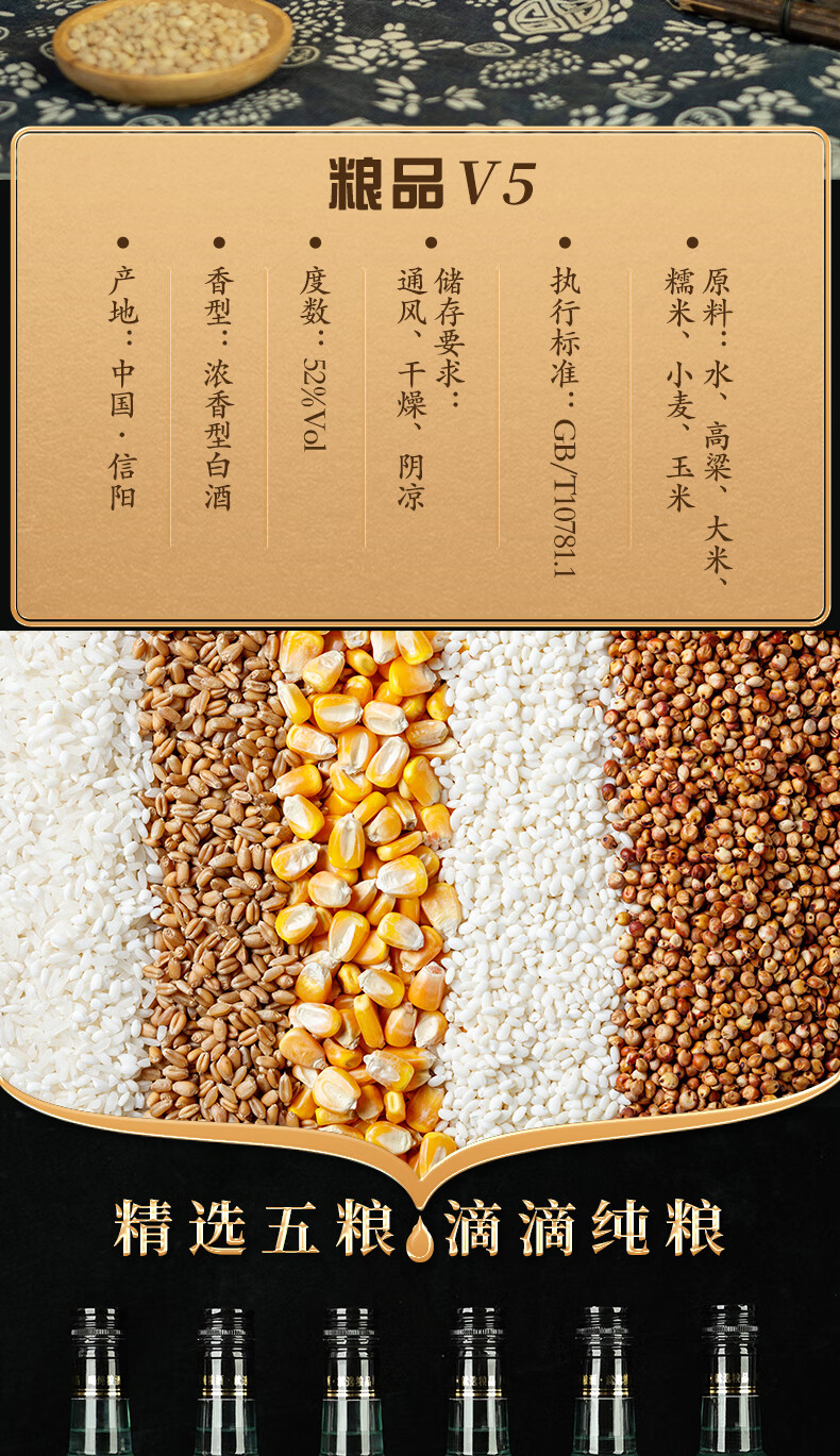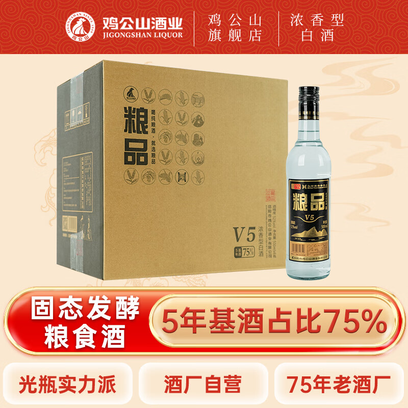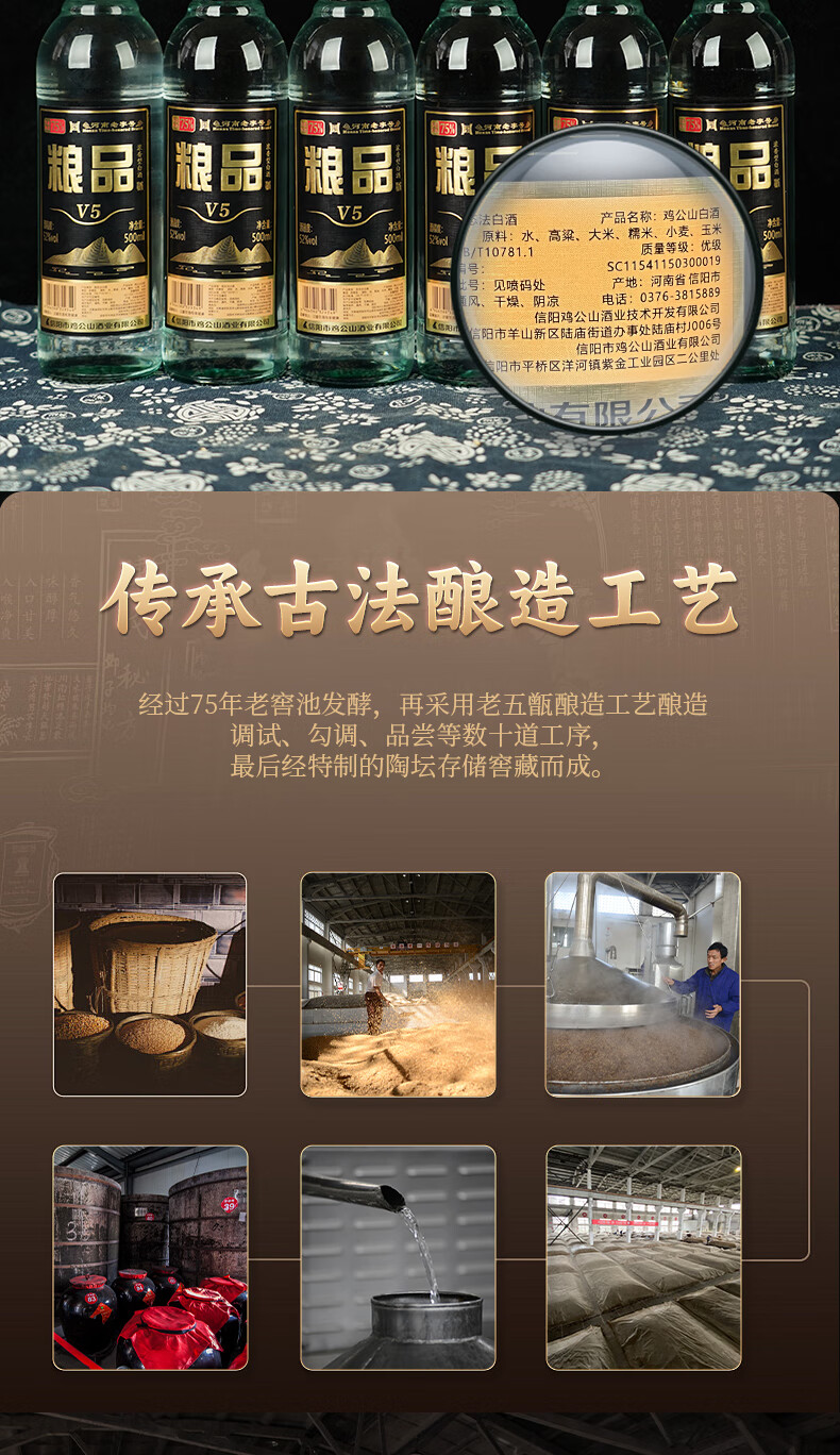 鸡公山浓香型白酒粮品V5粮食酒52度固态发酵法国标优级口粮酒整箱6瓶装 52度 500mL 6瓶 1箱