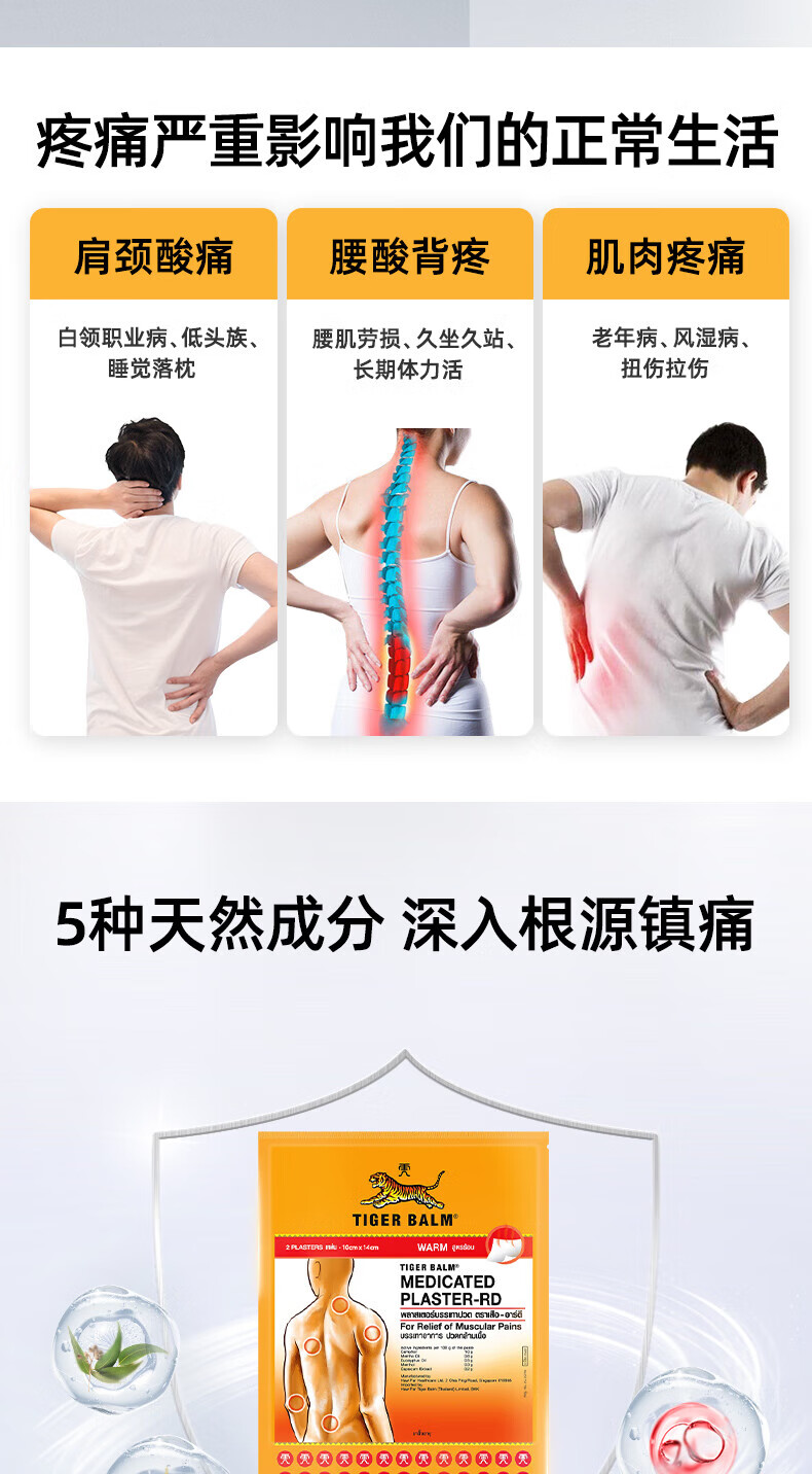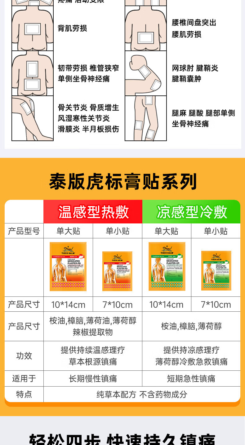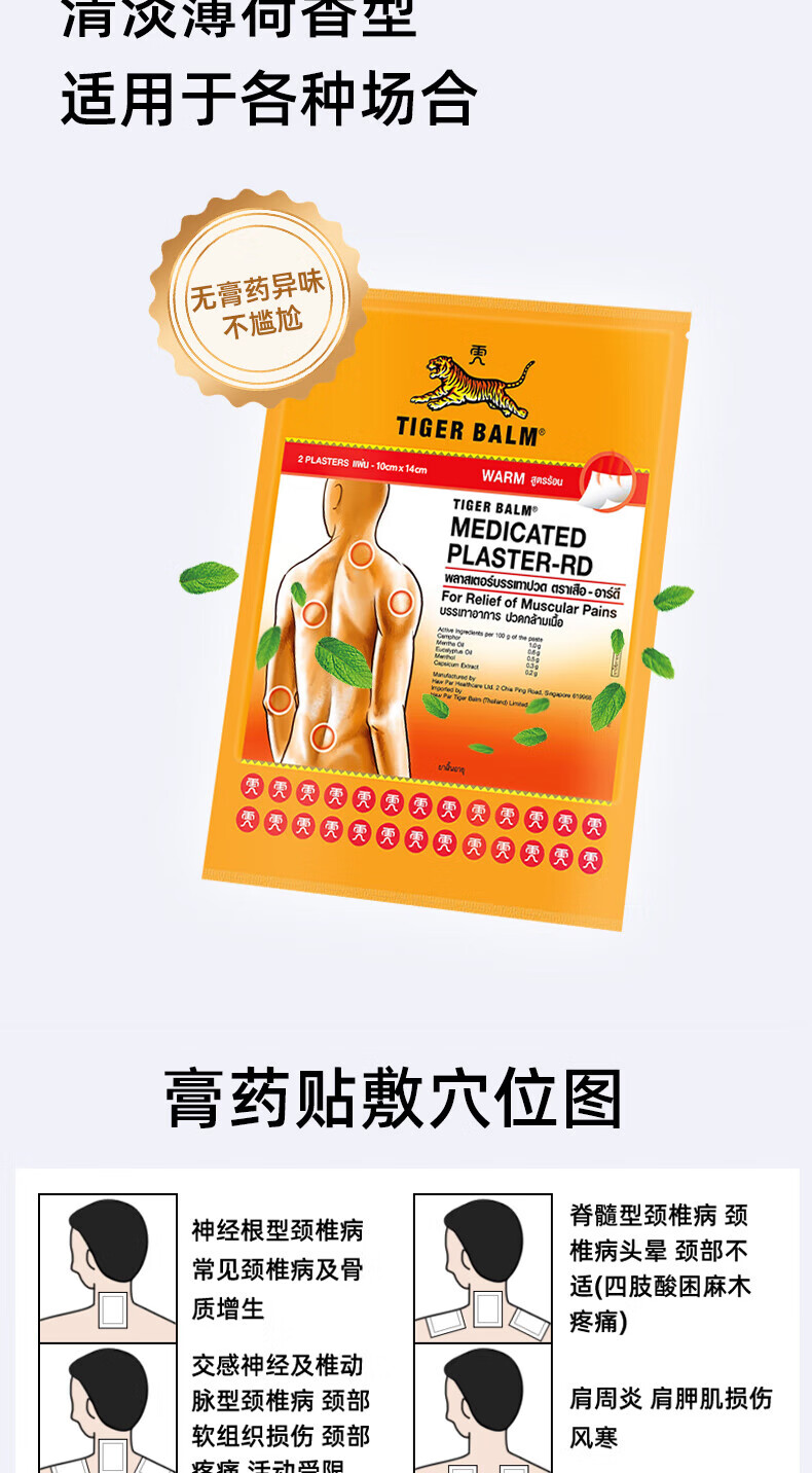泰国王权免税TIGER BALM 泰国虎标药膏贴凉性10片大贴腰酸背痛 舒缓酸痛膏药肌肉疼痛跌打损伤贴膏 热性小贴10贴