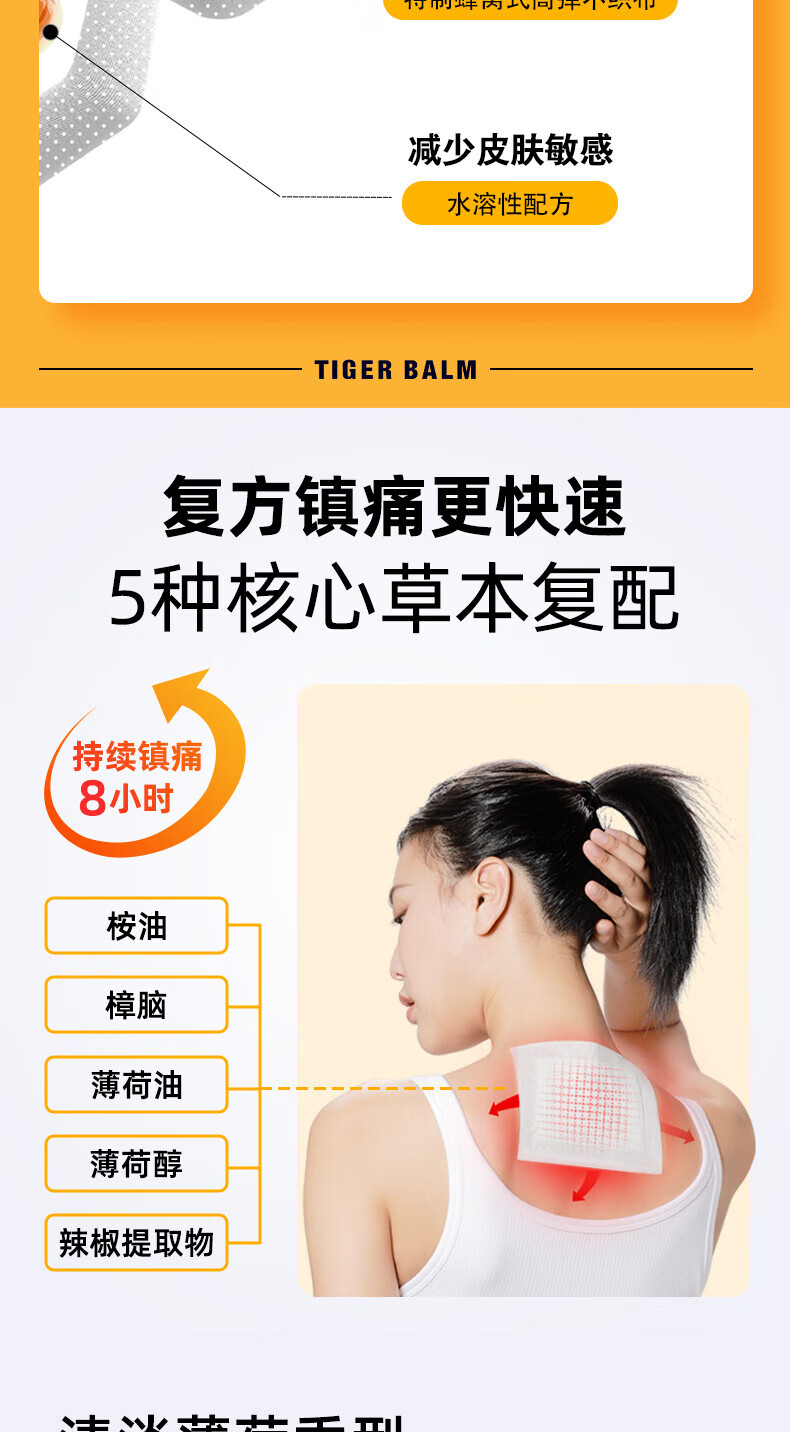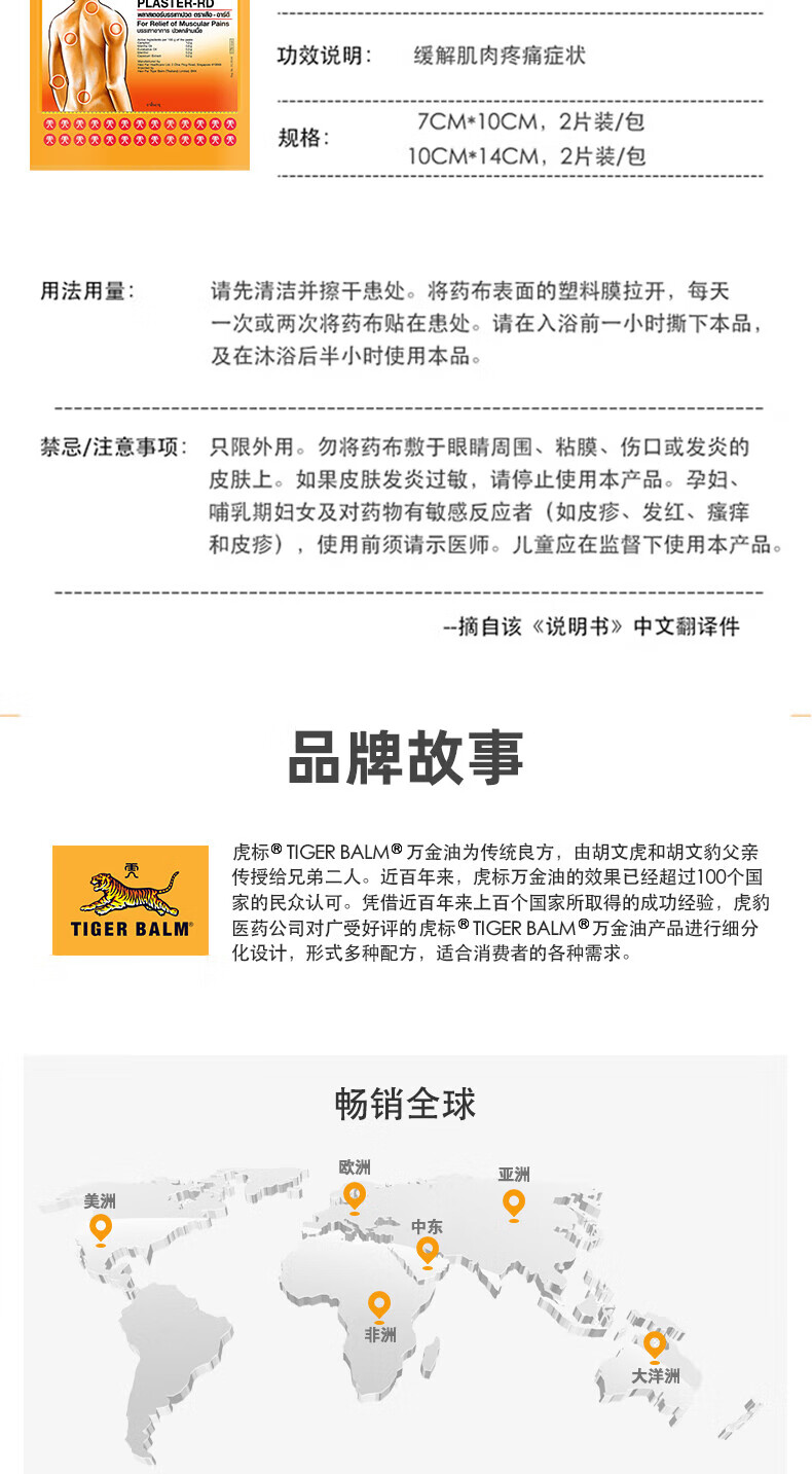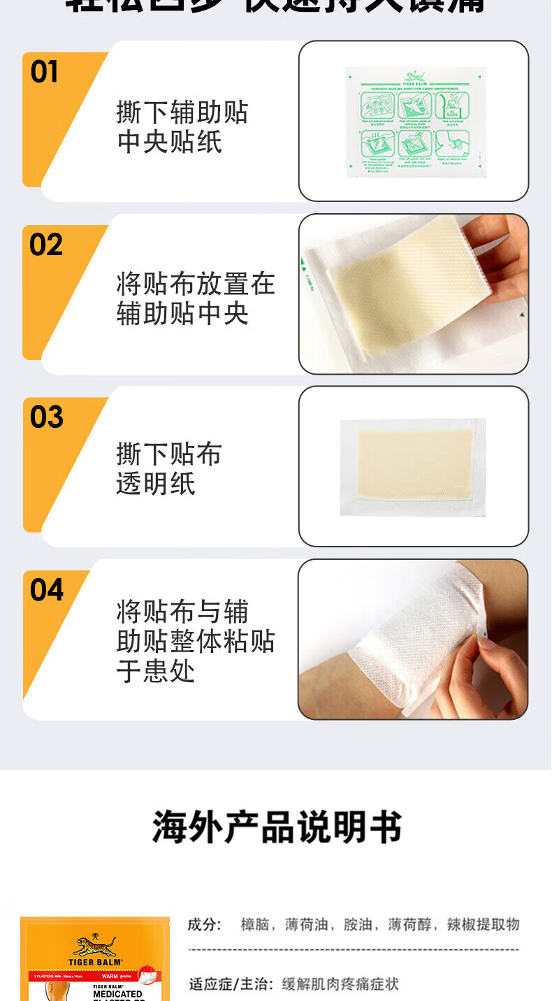 泰国王权免税TIGER BALM 泰国虎标药膏贴凉性10片大贴腰酸背痛 舒缓酸痛膏药肌肉疼痛跌打损伤贴膏 热性小贴10贴