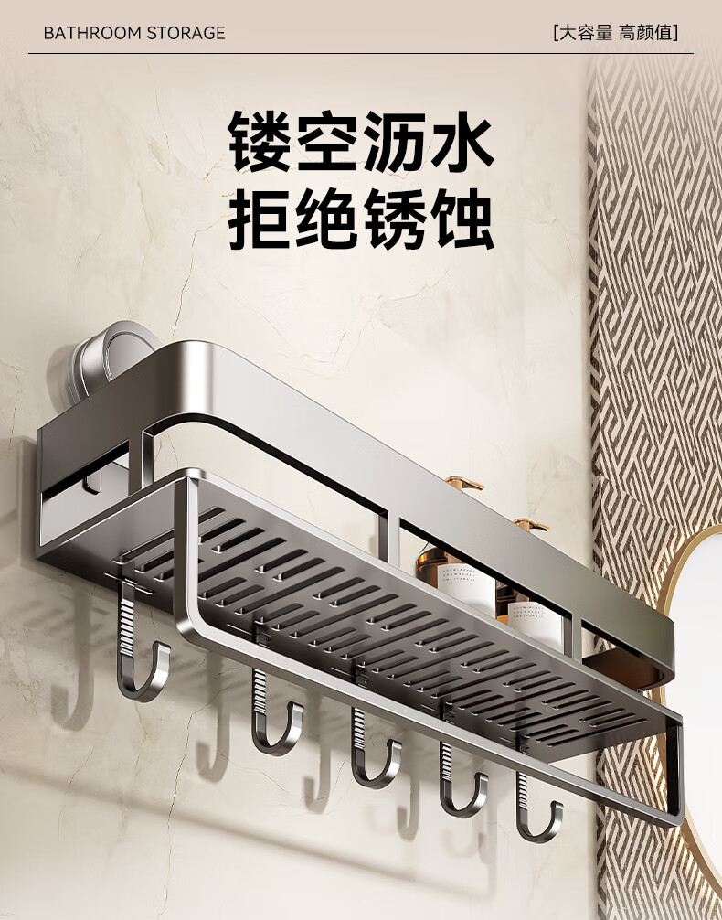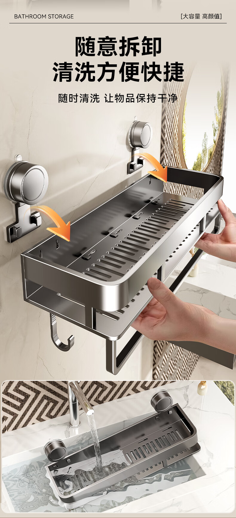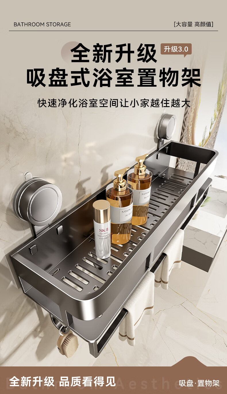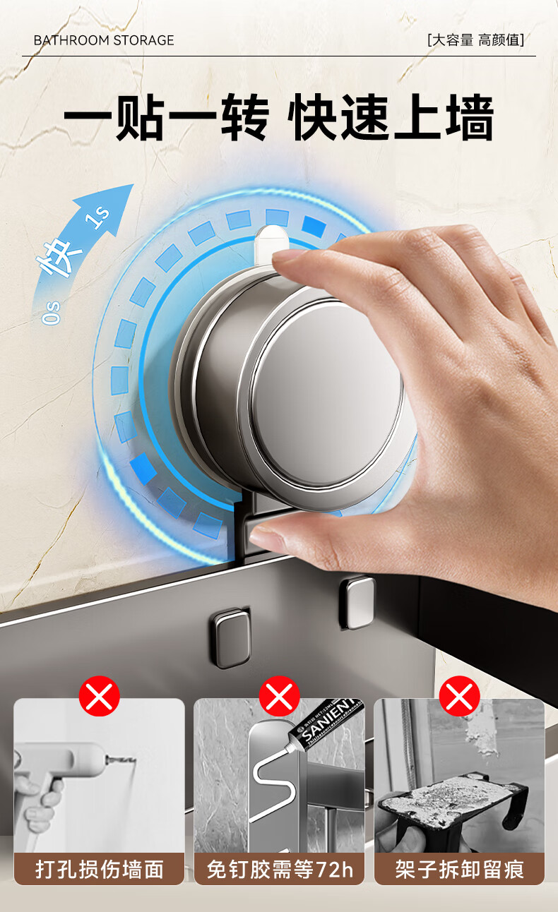 百悍吸盘置物架卫生间浴室洗漱台厕所免打孔壁挂角落墙上收纳神器