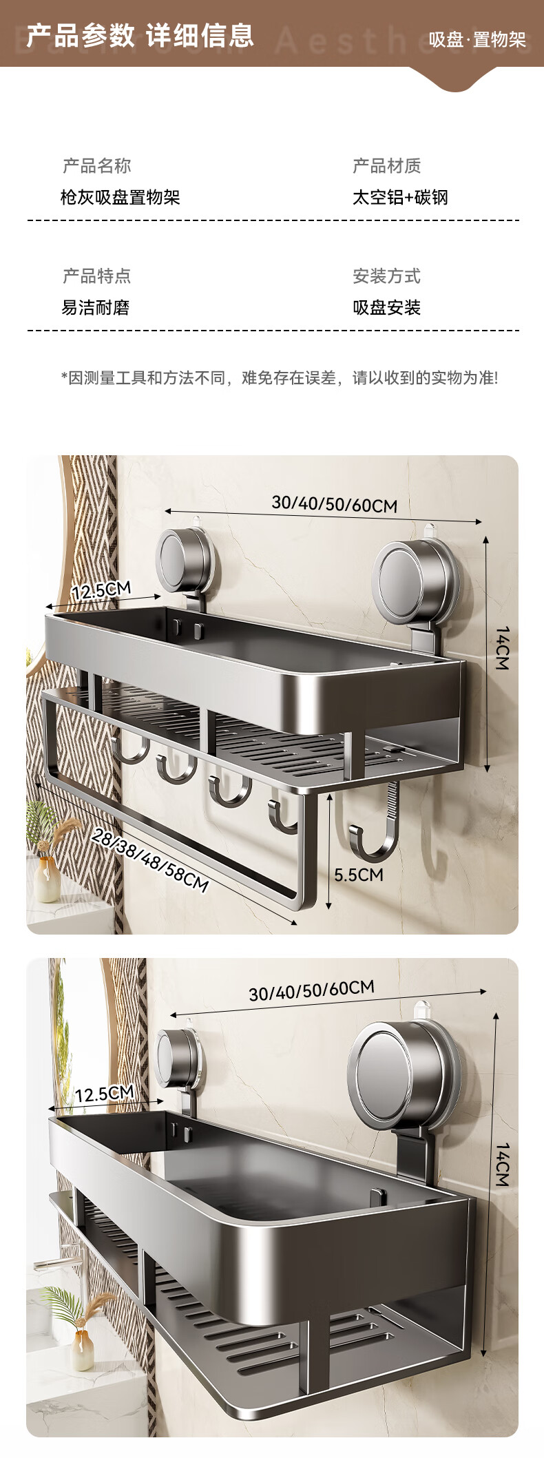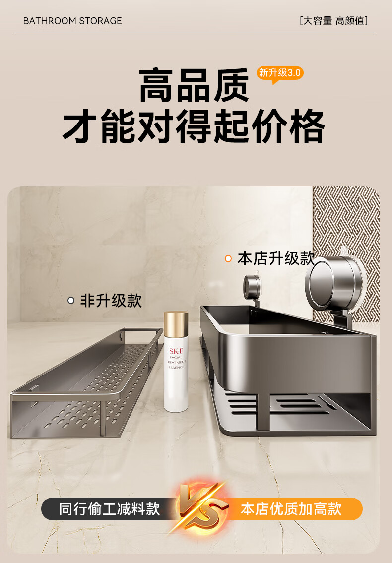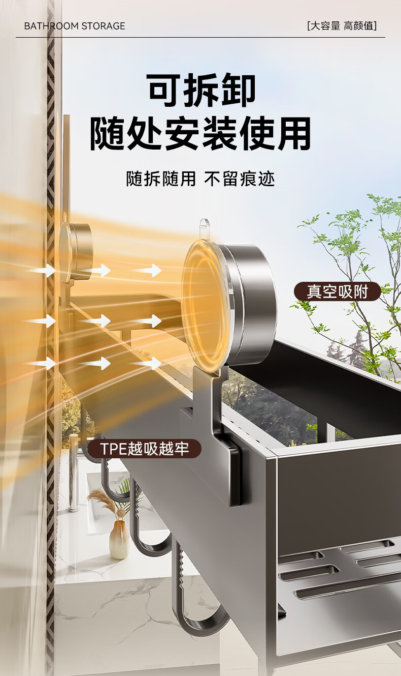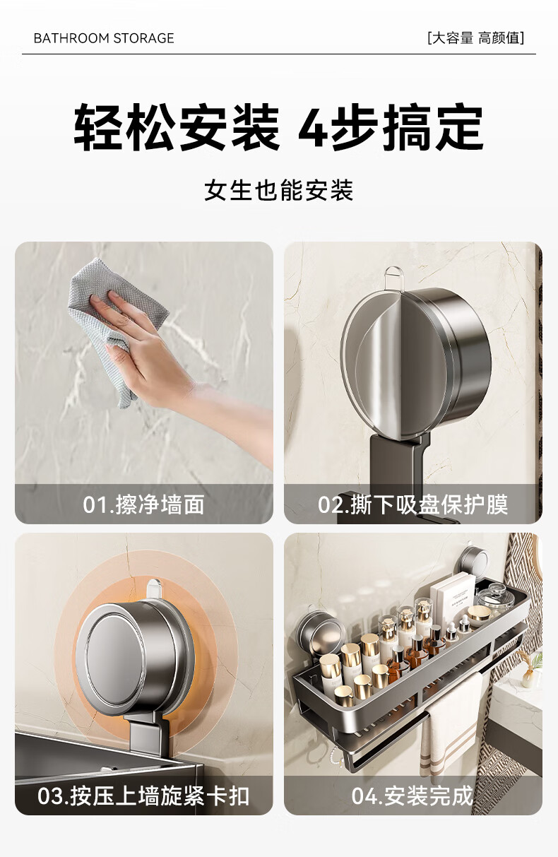 百悍吸盘置物架卫生间浴室洗漱台厕所免打孔壁挂角落墙上收纳神器