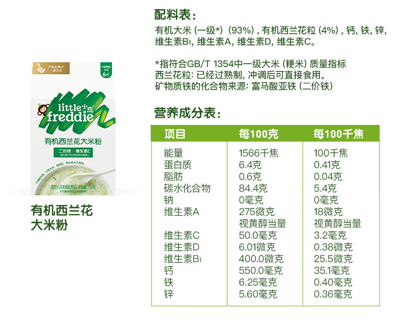 little freddie米粉高铁双有机 婴儿宝宝辅食新鲜原装进口低敏米糊6到12个月以上 【7月+】有机蓝莓香蕉七种谷物*