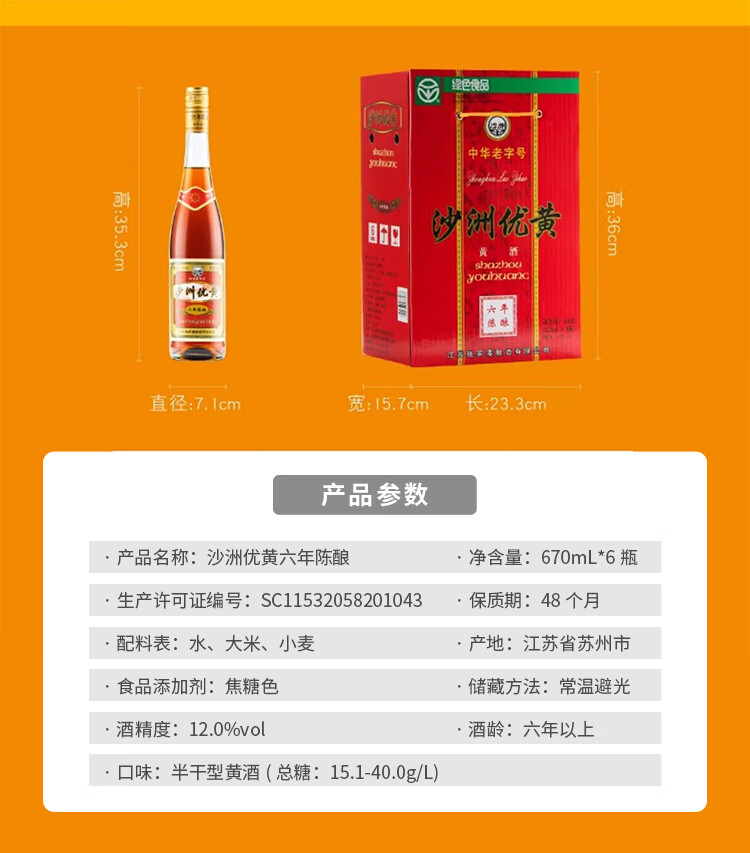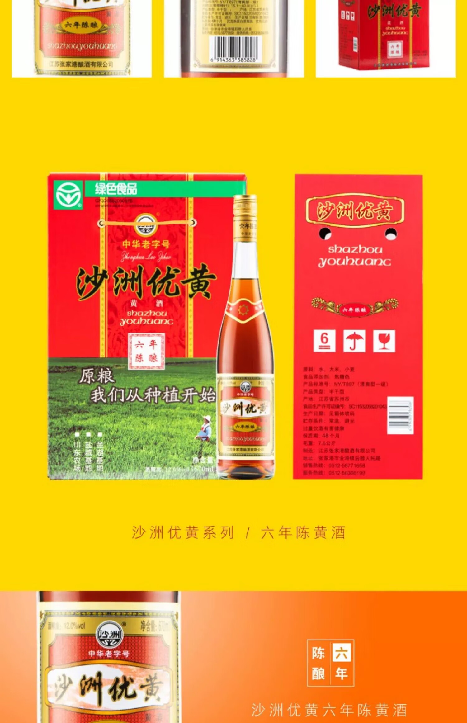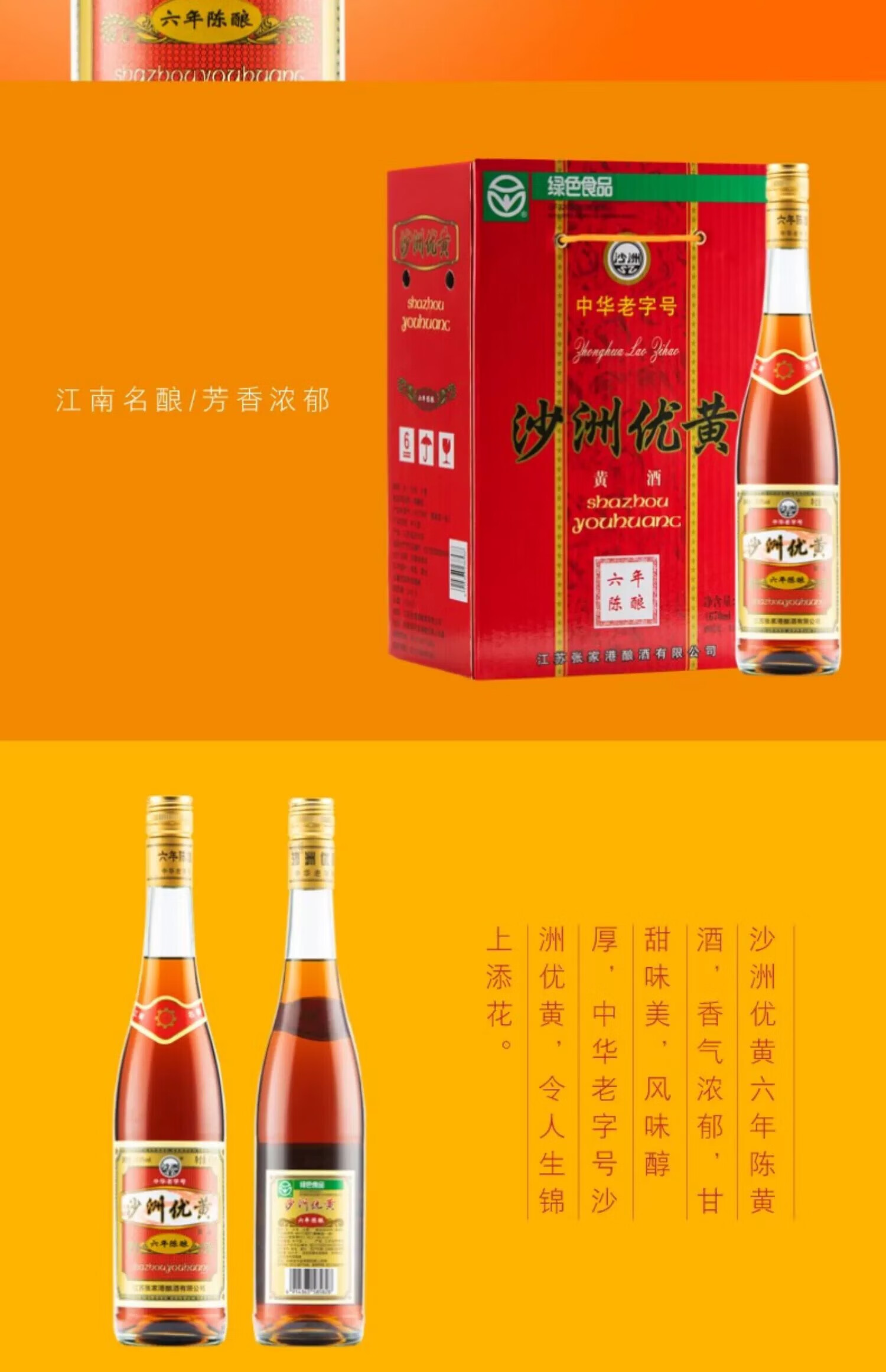 沙洲优黄 陈酿六年 半干型 苏派黄酒 670ml*6瓶 整箱装